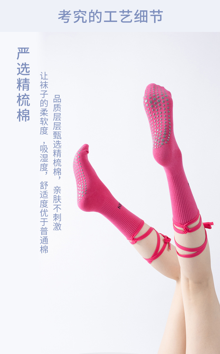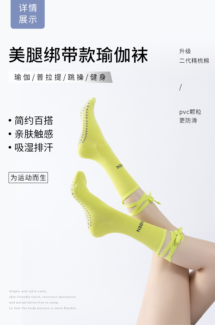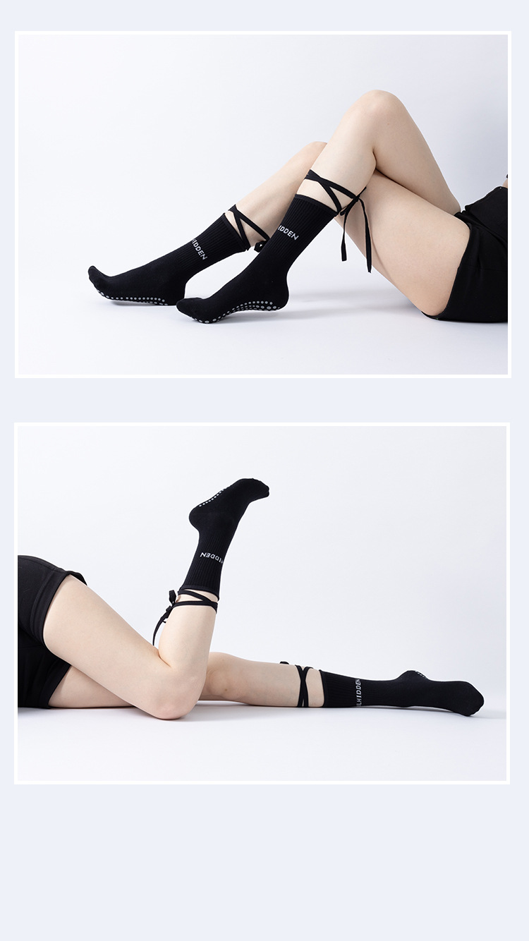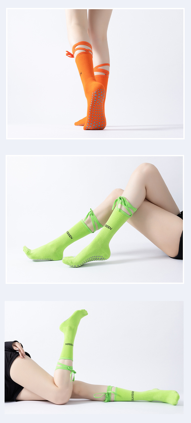 新款瑜珈襪子長筒綁帶運動襪高筒防滑專業地板襪普拉提舞蹈襪女秋