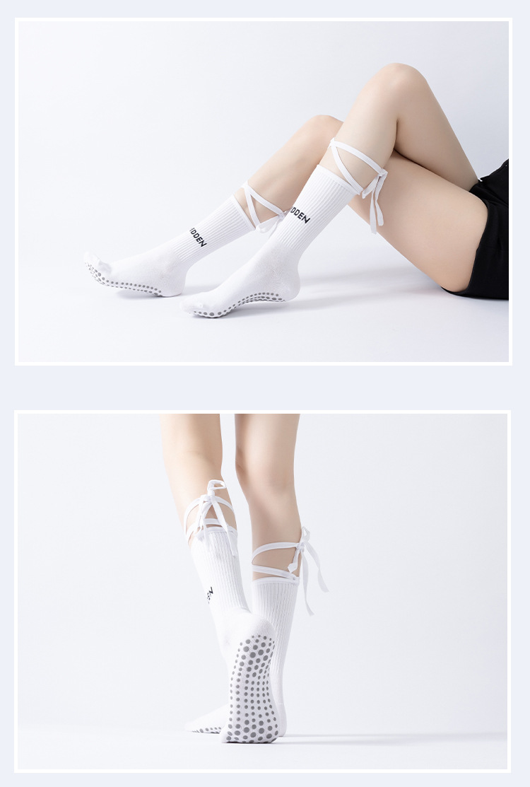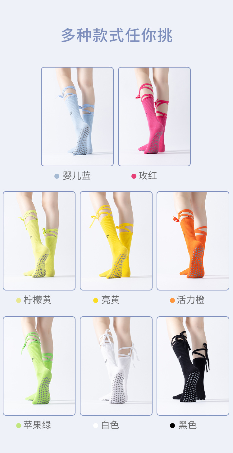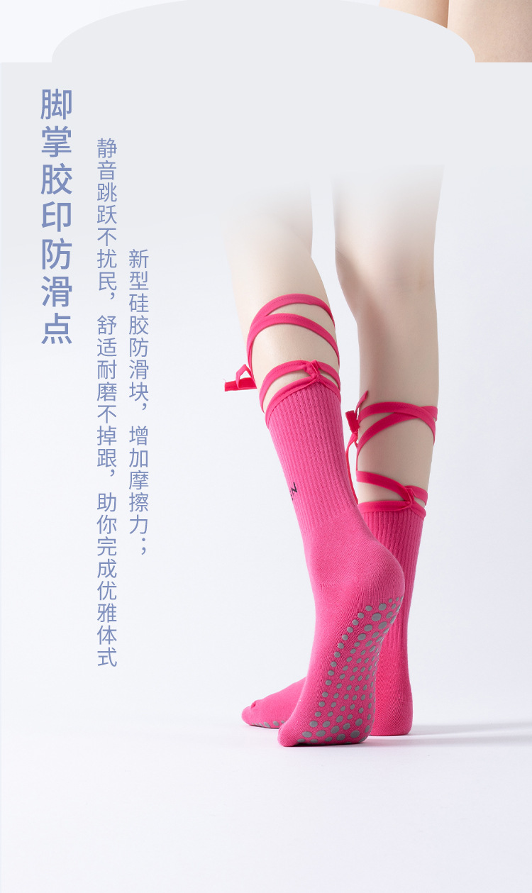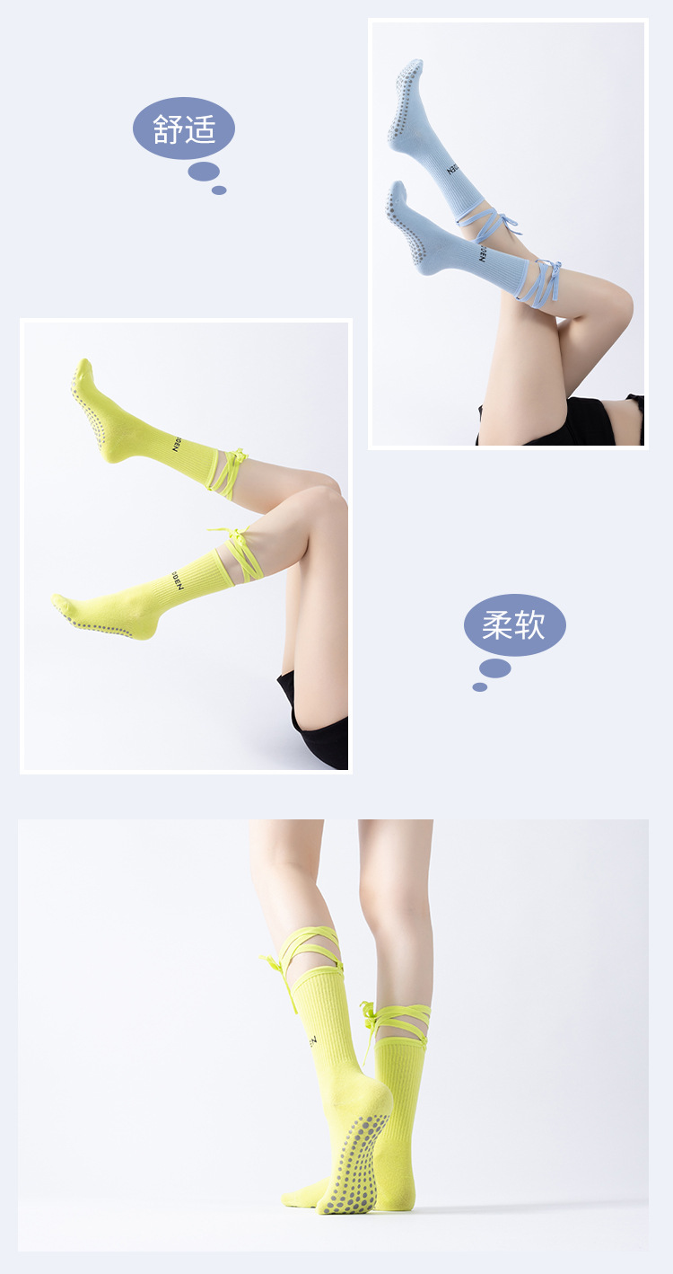 新款瑜珈襪子長筒綁帶運動襪高筒防滑專業地板襪普拉提舞蹈襪女秋