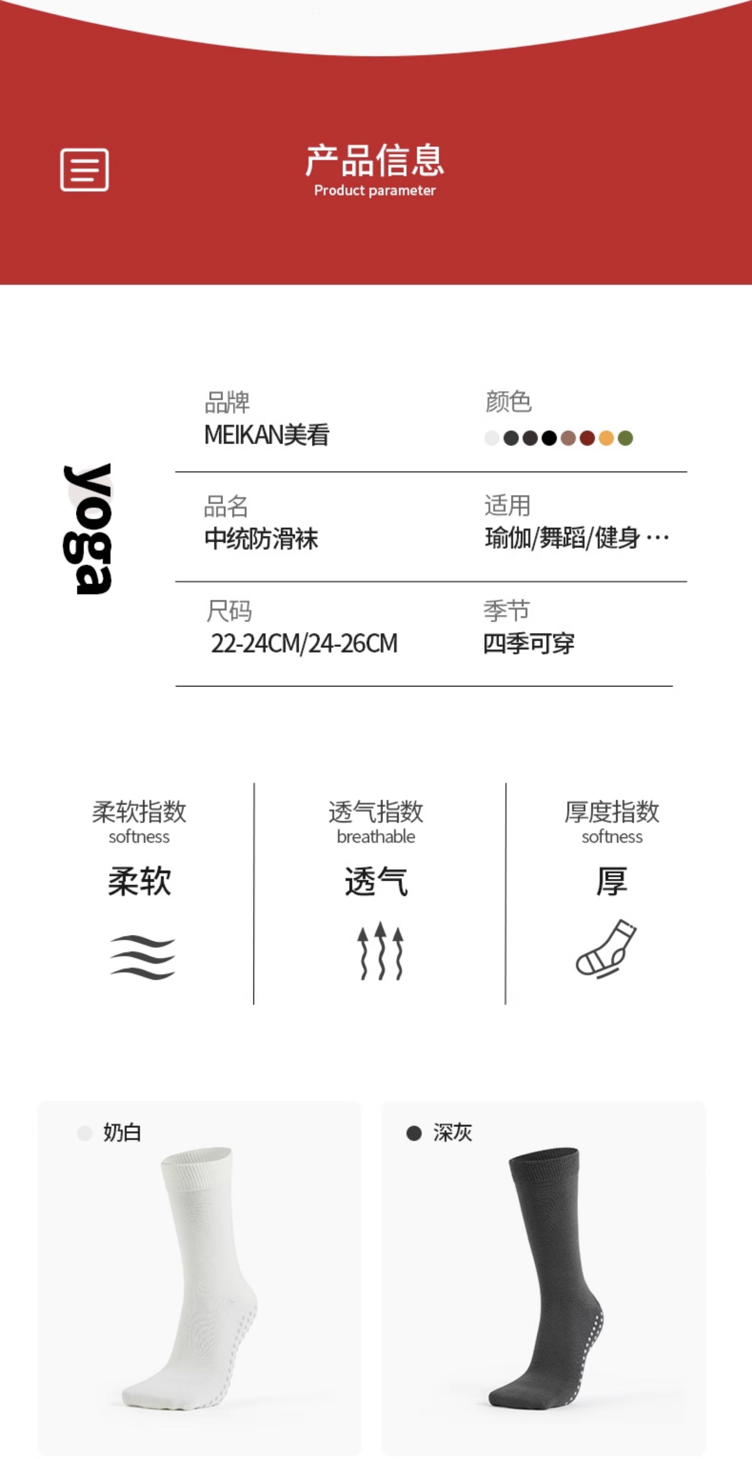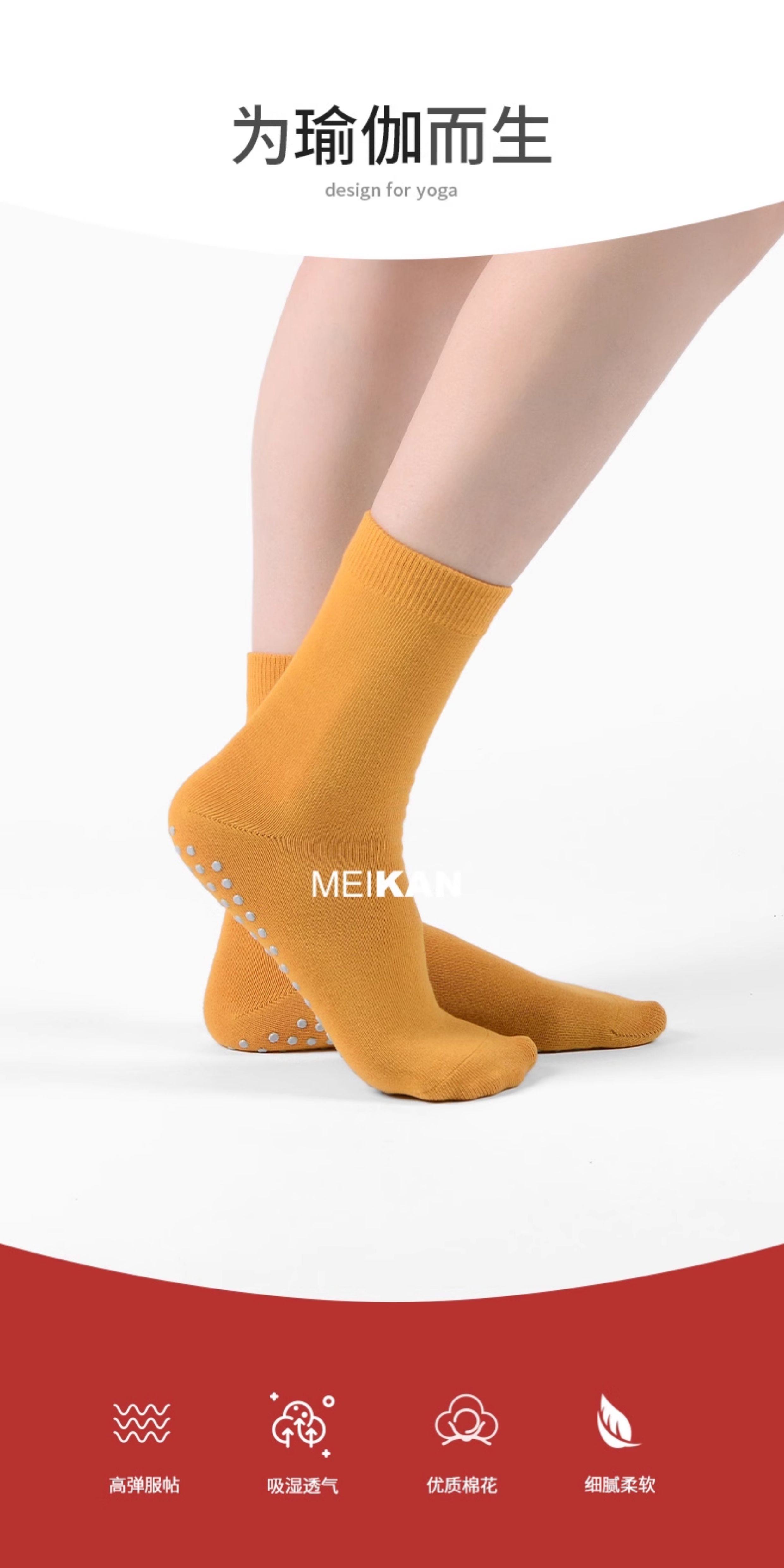 MEIKAN美看瑜珈襪子地板襪專業防滑襪運動風中筒襪運動普拉提襪子
