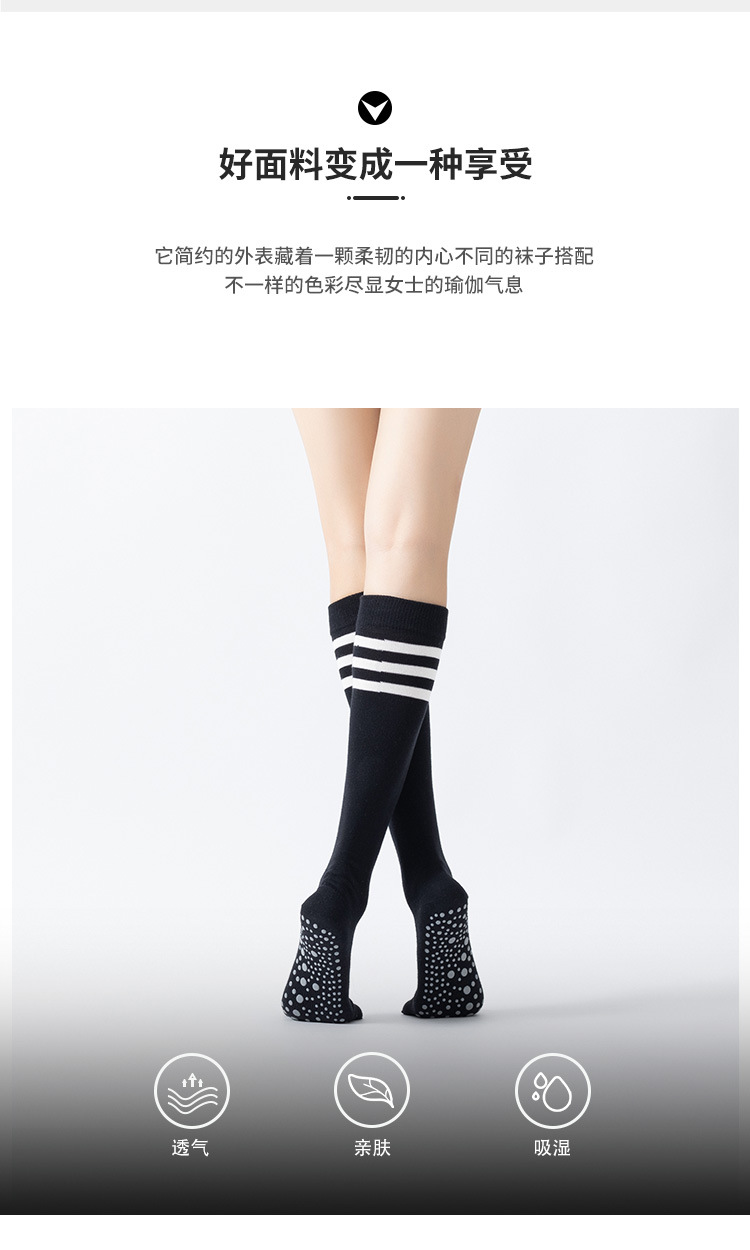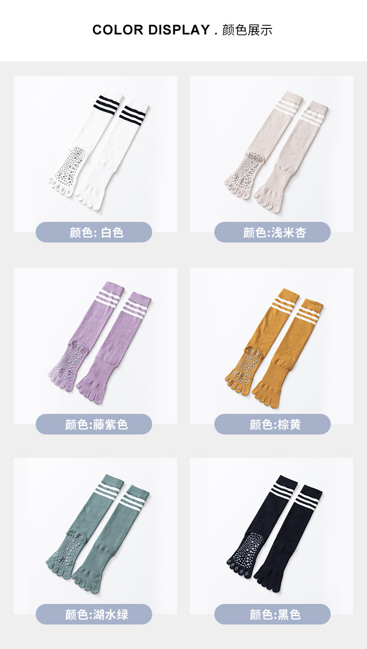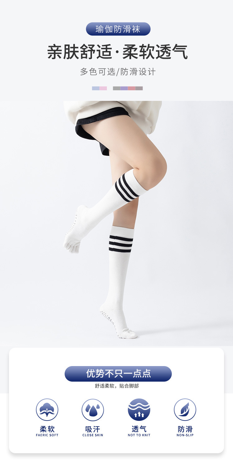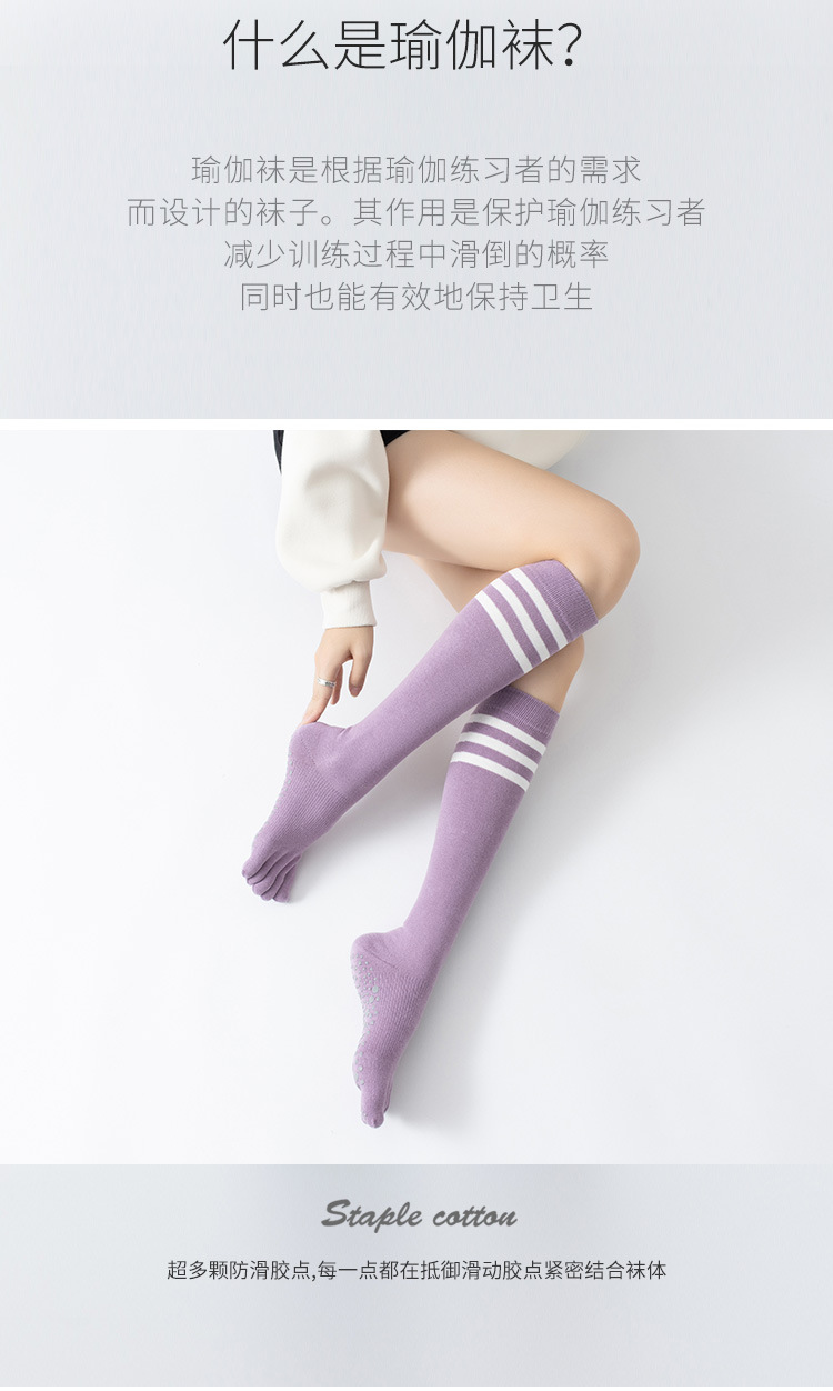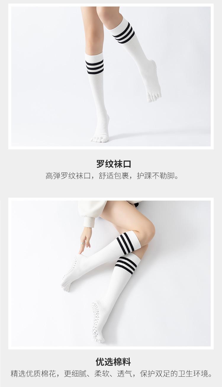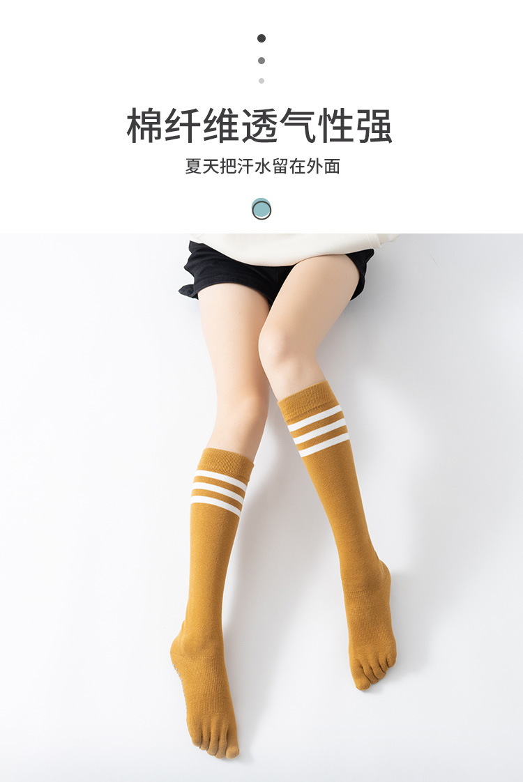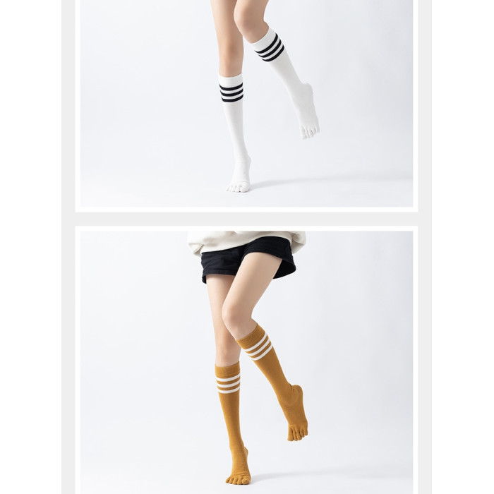 春秋新品五指長筒瑜珈襪女五趾條紋款高品質防滑保暖美腿襪三杠款