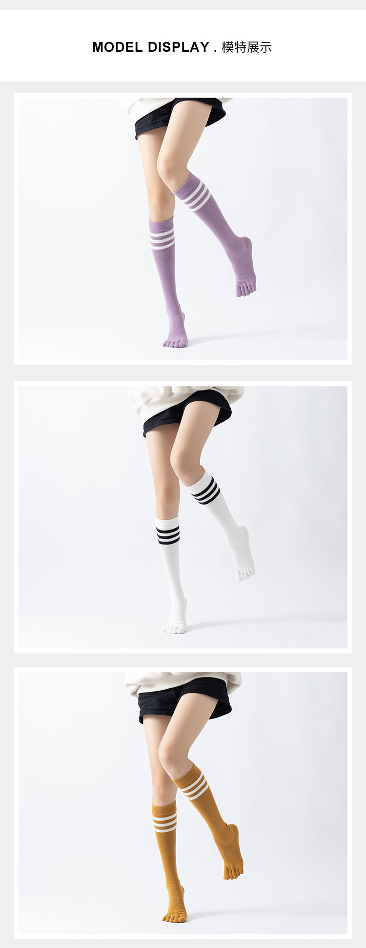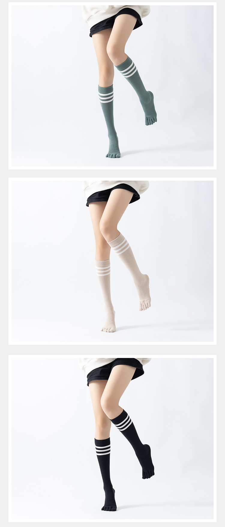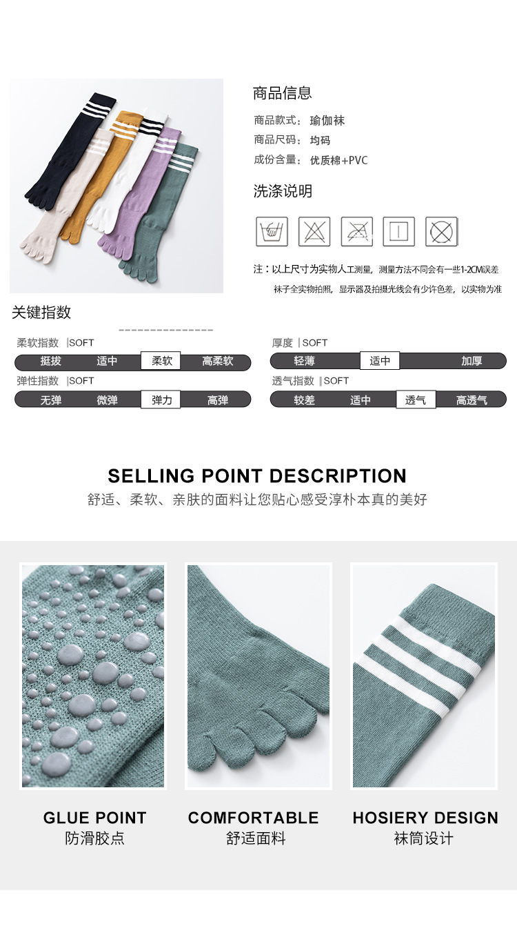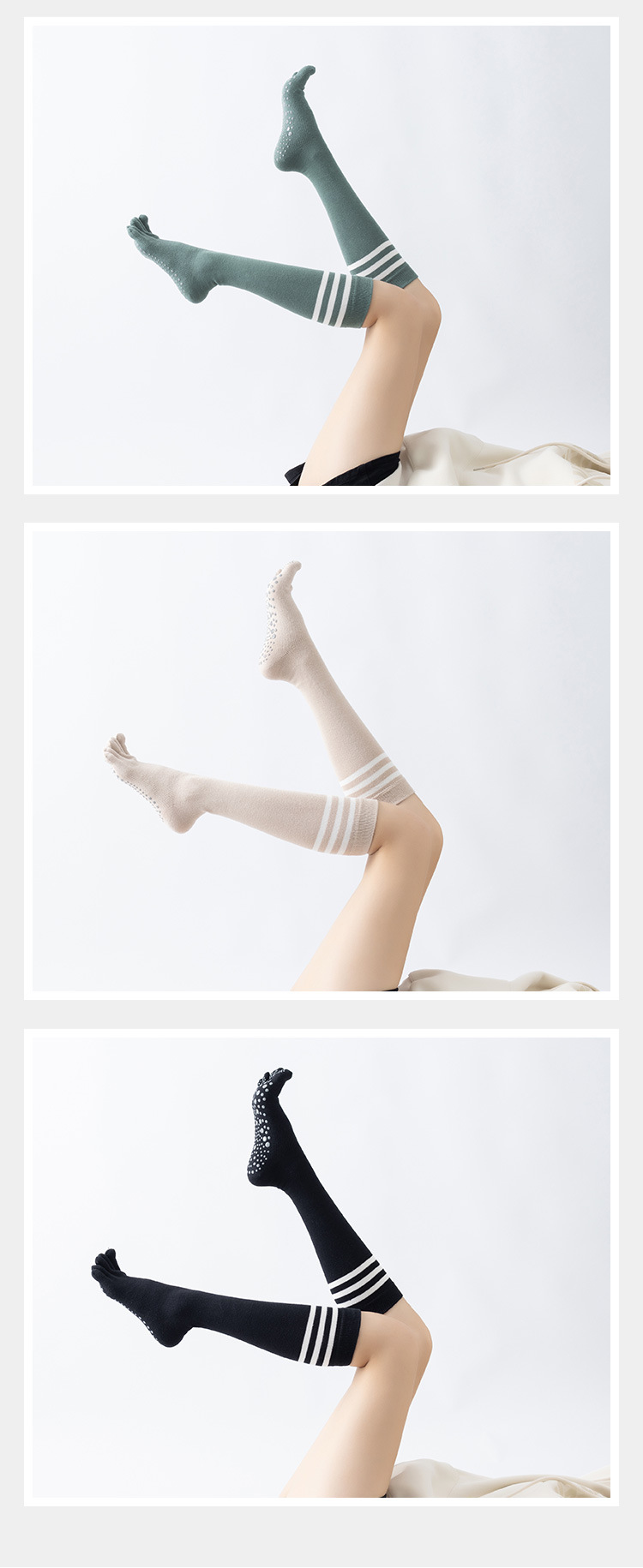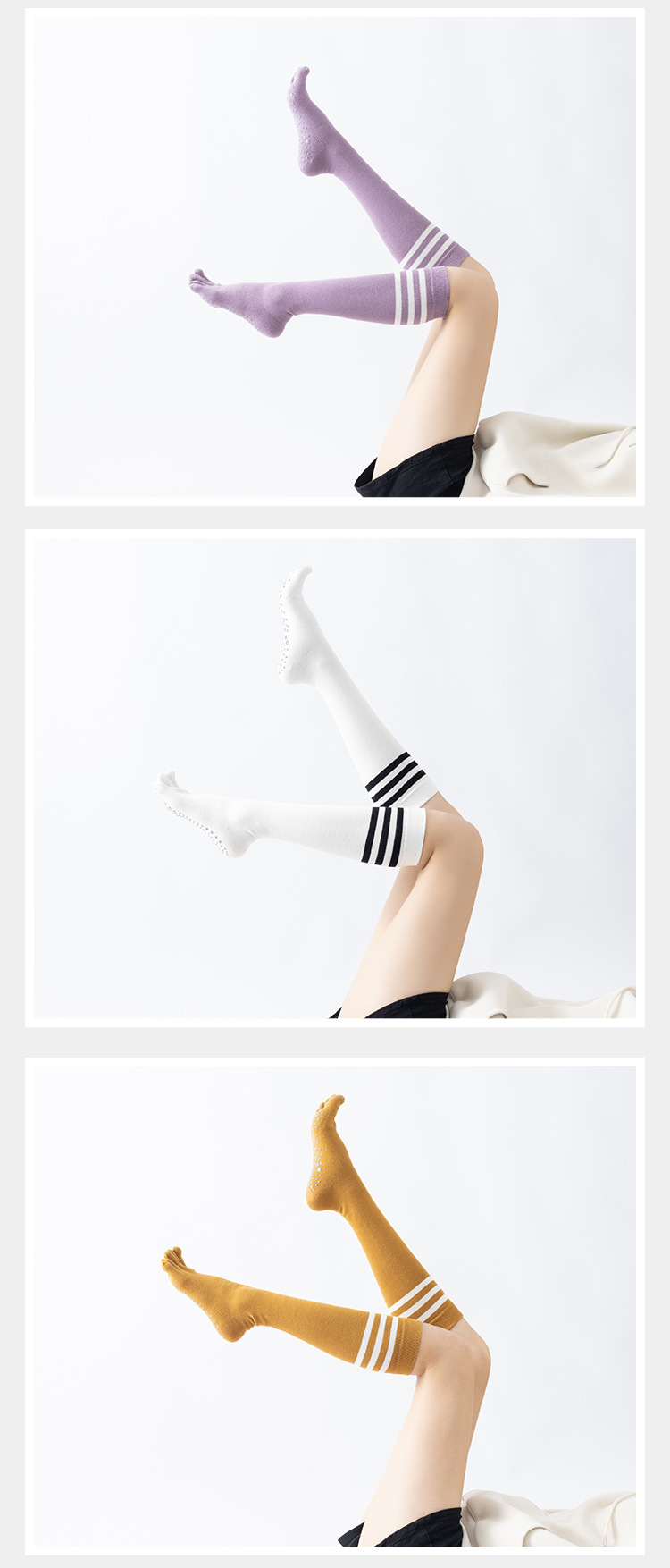 春秋新品五指長筒瑜珈襪女五趾條紋款高品質防滑保暖美腿襪三杠款