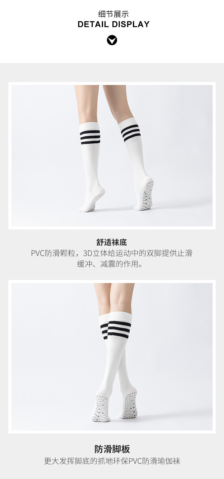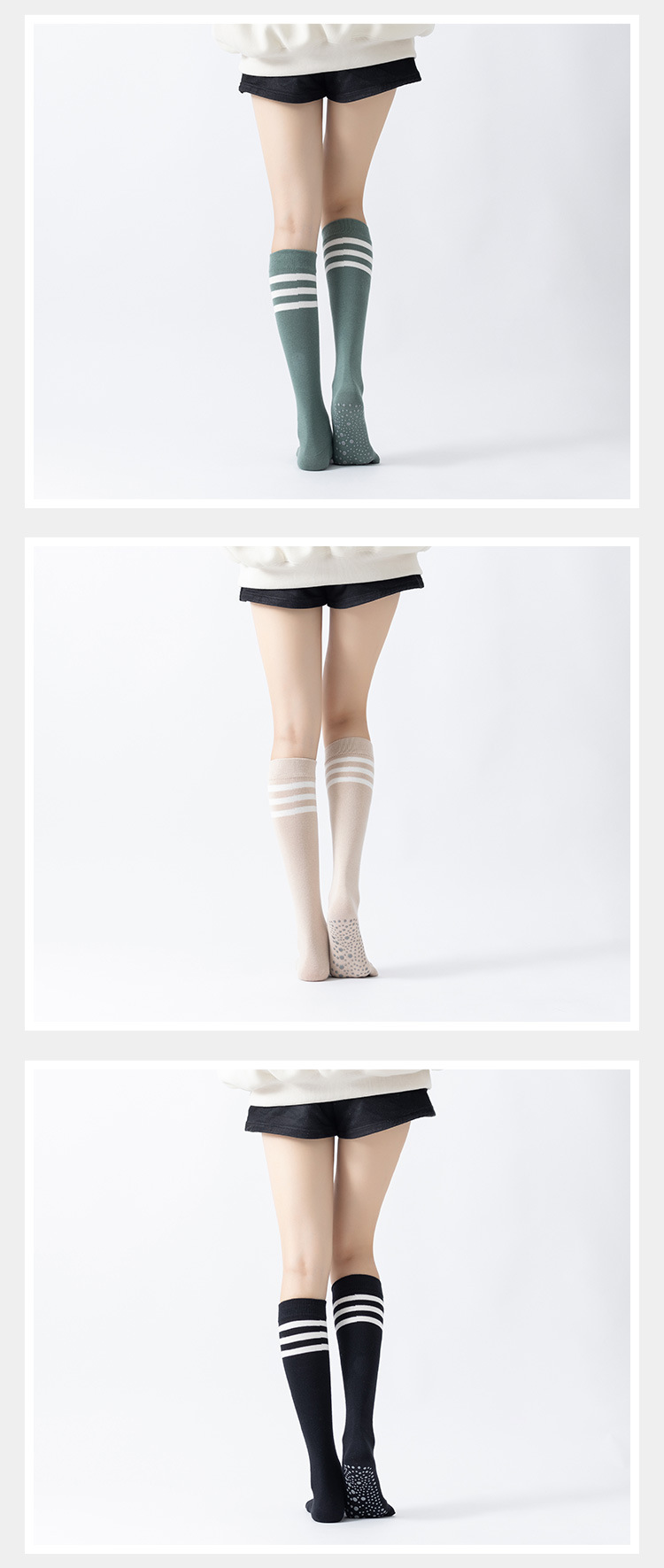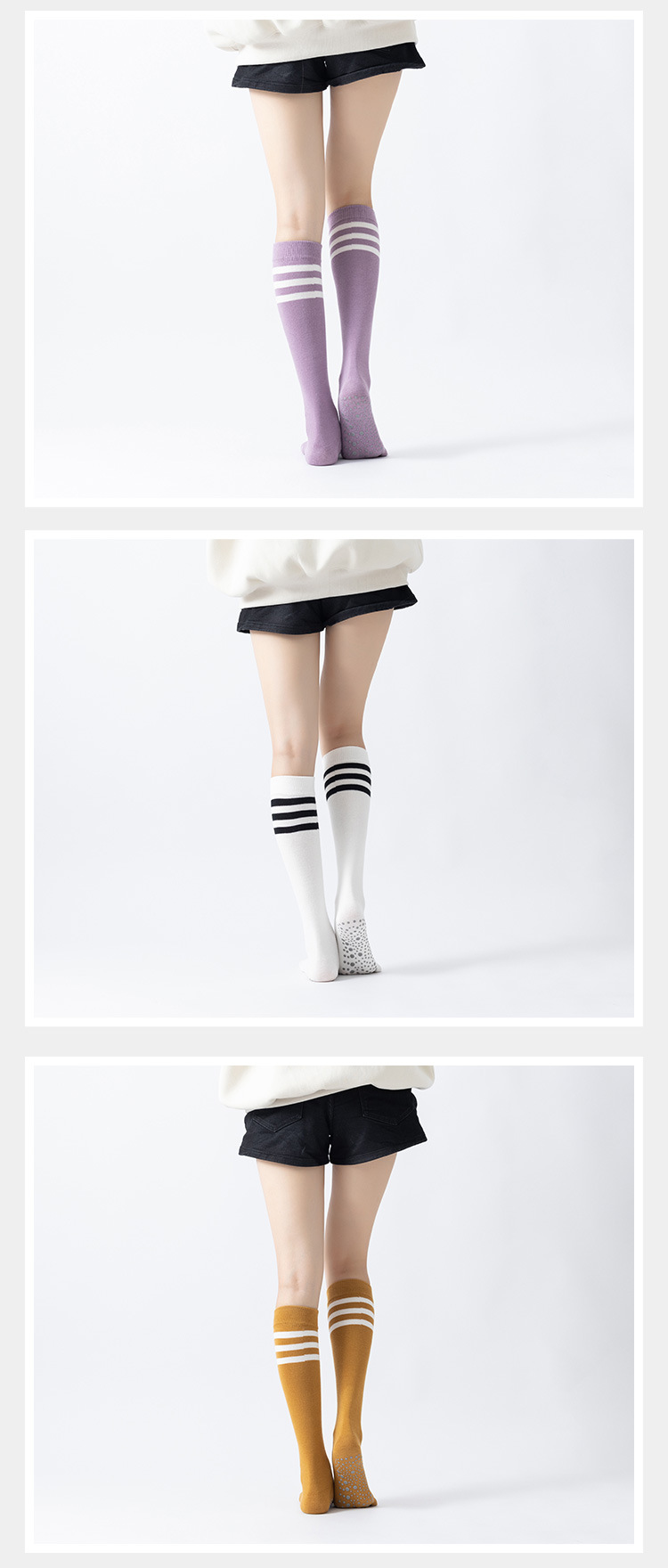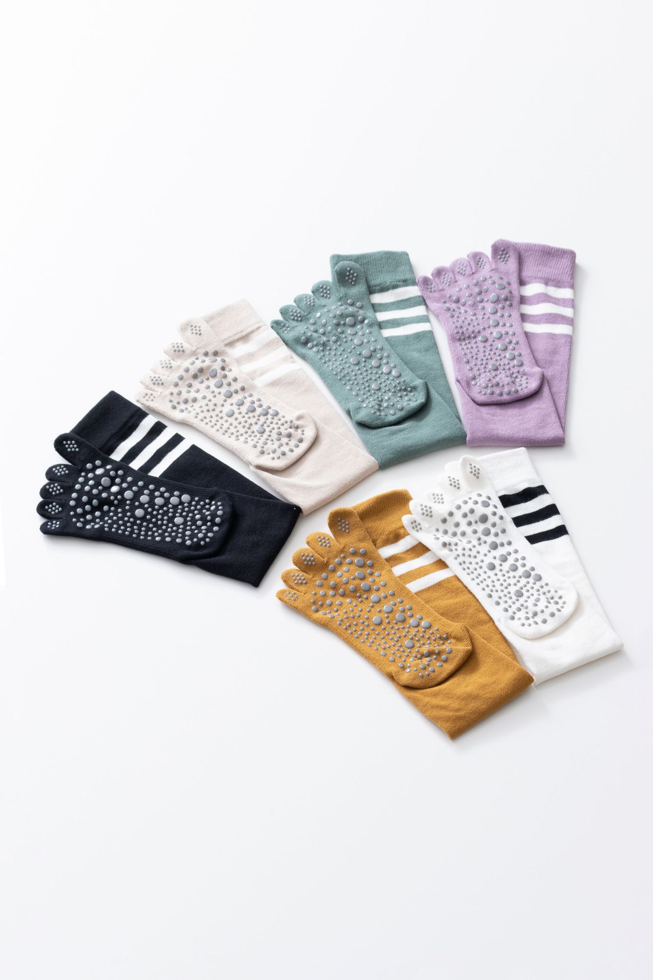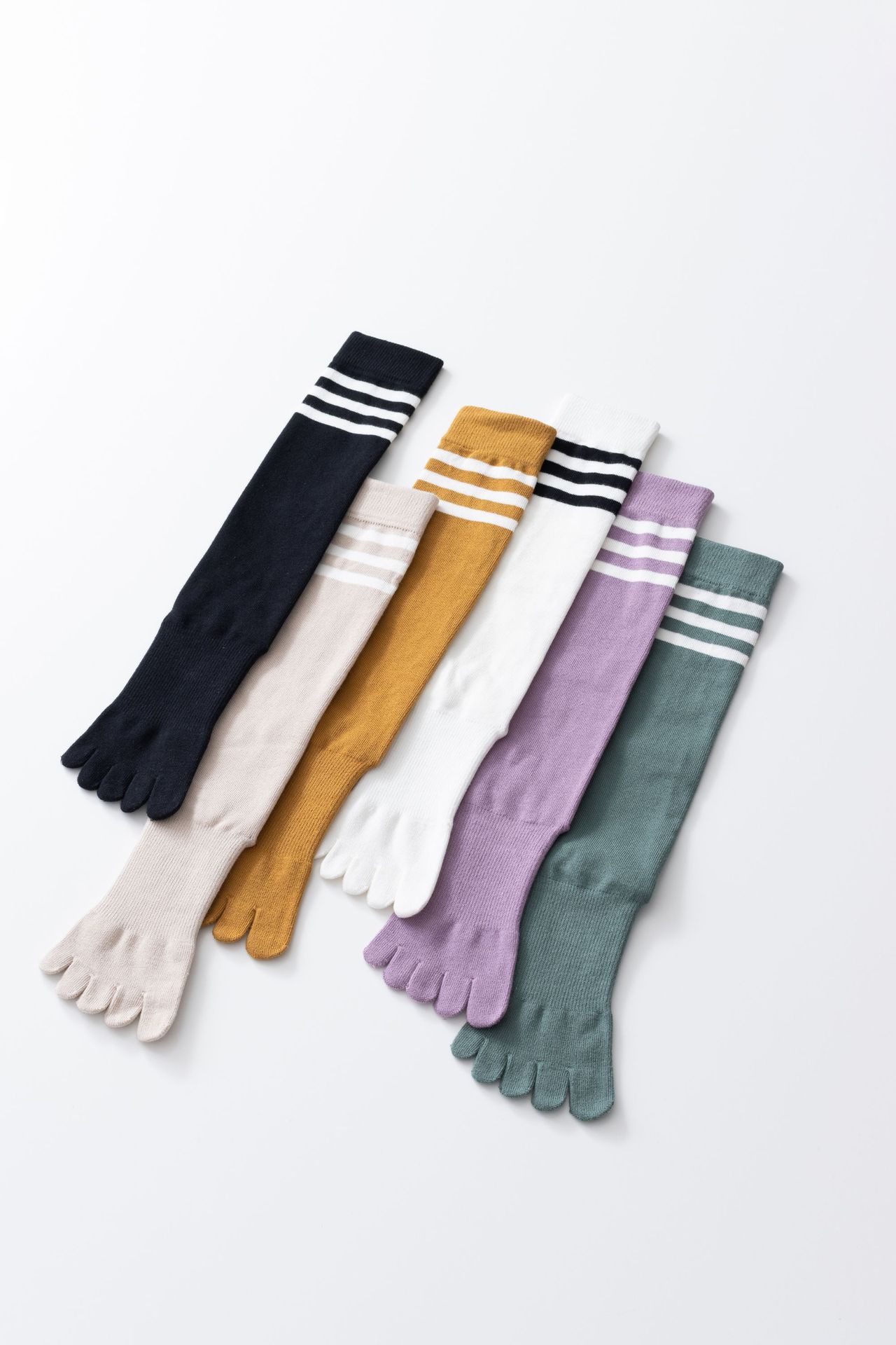 春秋新品五指長筒瑜珈襪女五趾條紋款高品質防滑保暖美腿襪三杠款