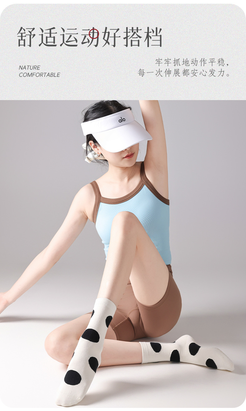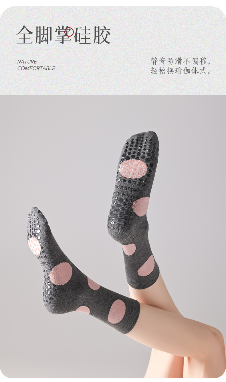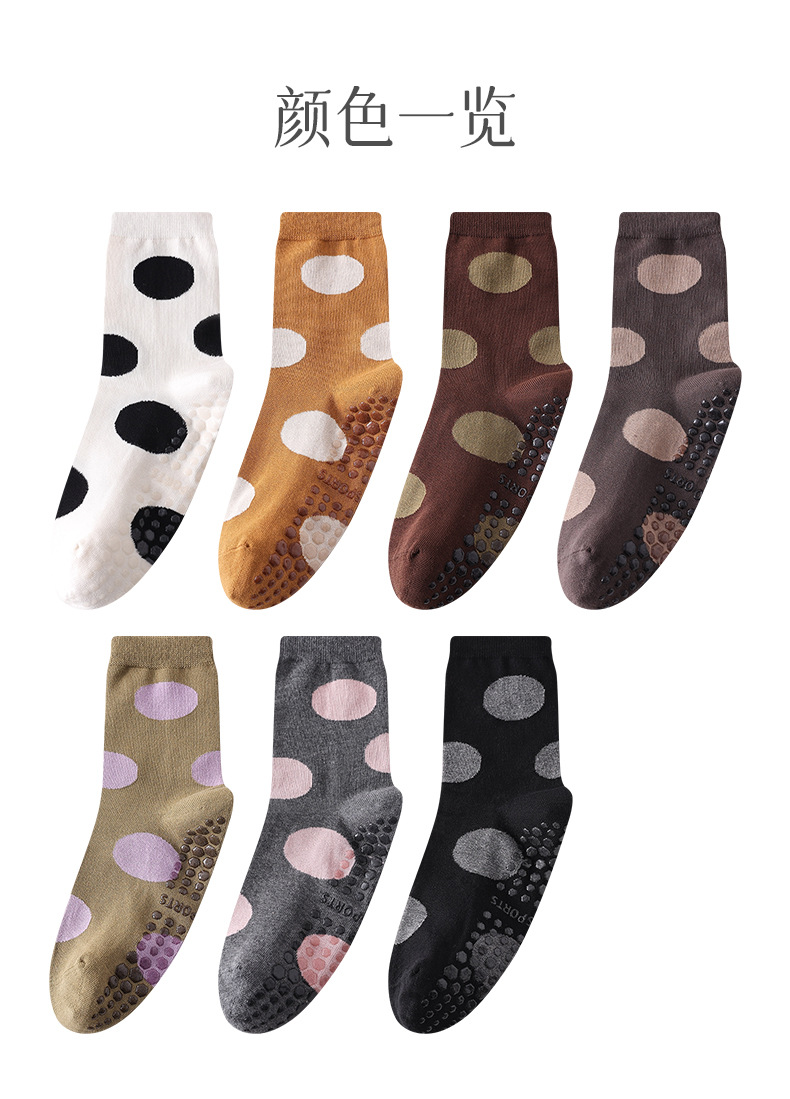 大波點瑜珈襪子防滑專業女中筒健身地板襪成人防滑襪普拉提襪子