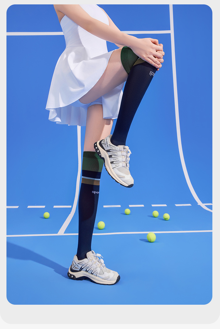 秋冬過膝襪顯腿細跑步網球襪騎行爬坡徒步健身專業運動壓力小腿襪