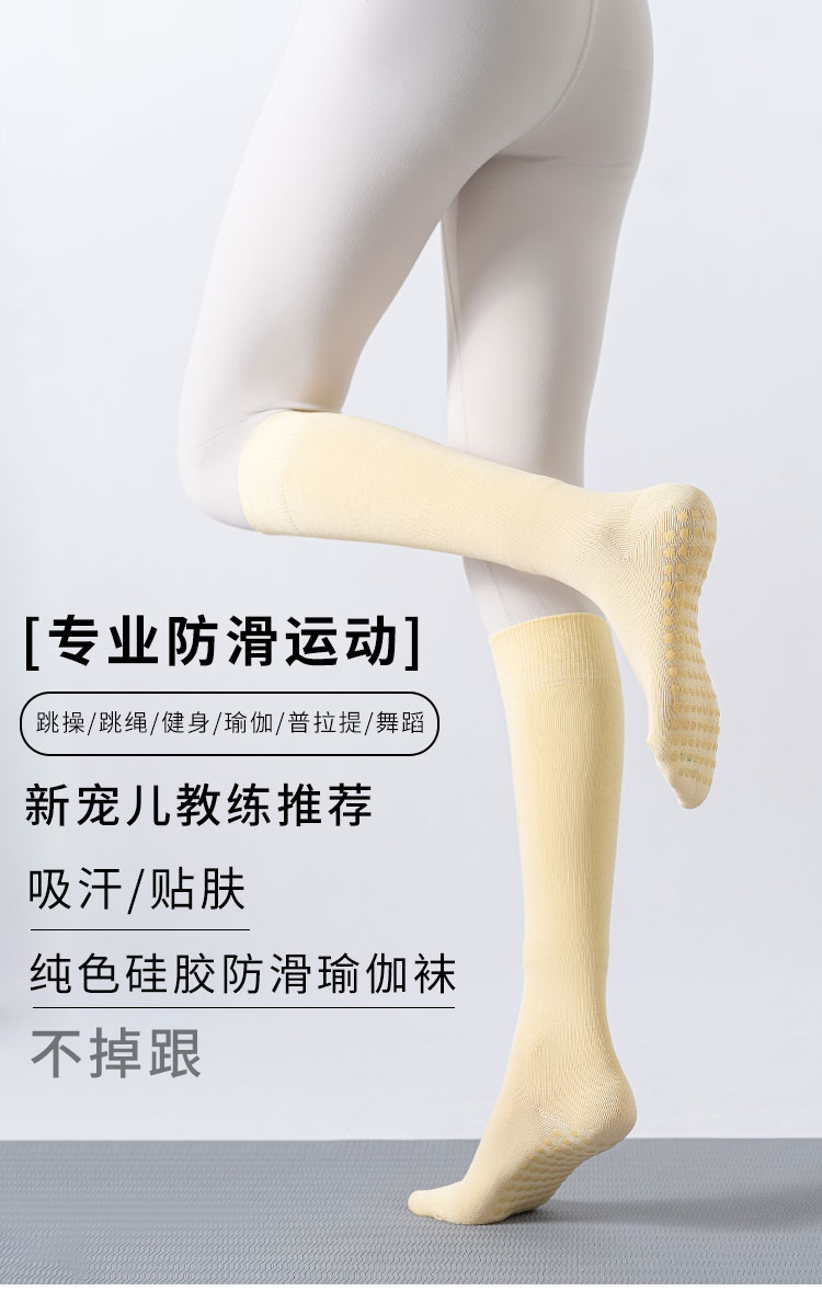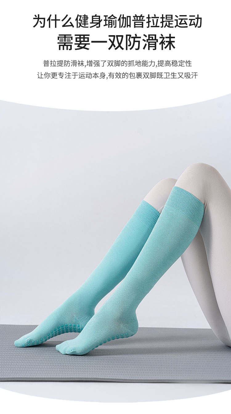純色長筒普拉提襪子女春夏可愛健身防滑襪專業運動抗起球瑜珈襪