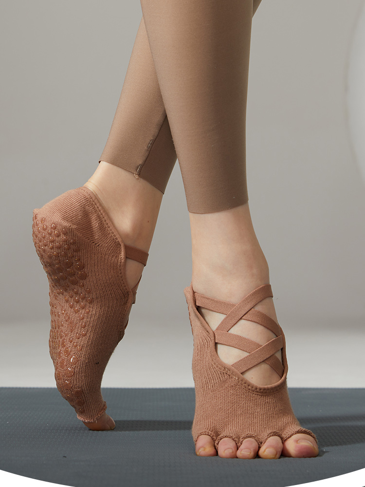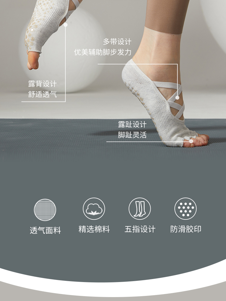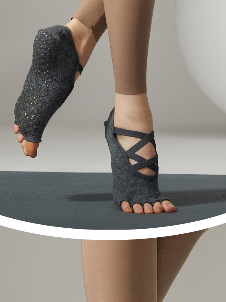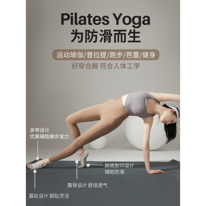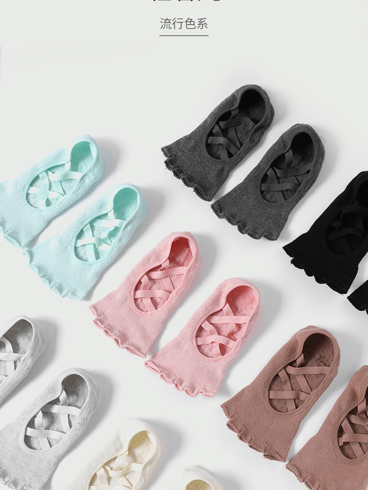 秋冬瑜珈襪子防滑專業女五指襪普拉提分趾室內運動綁帶露趾專用襪