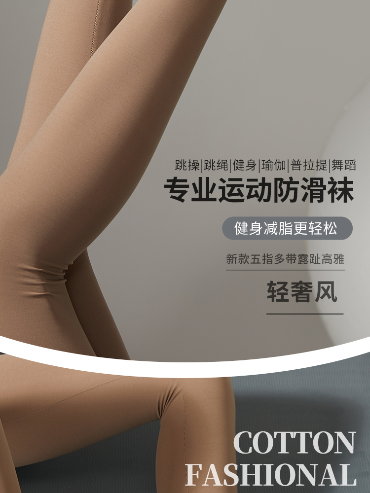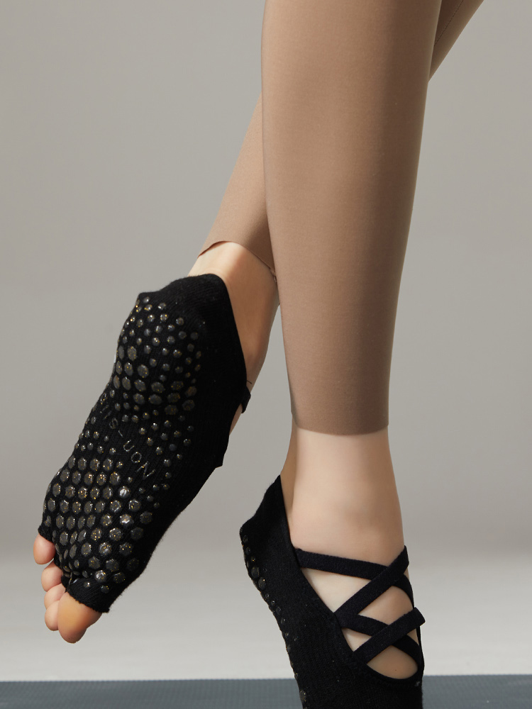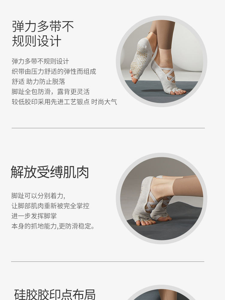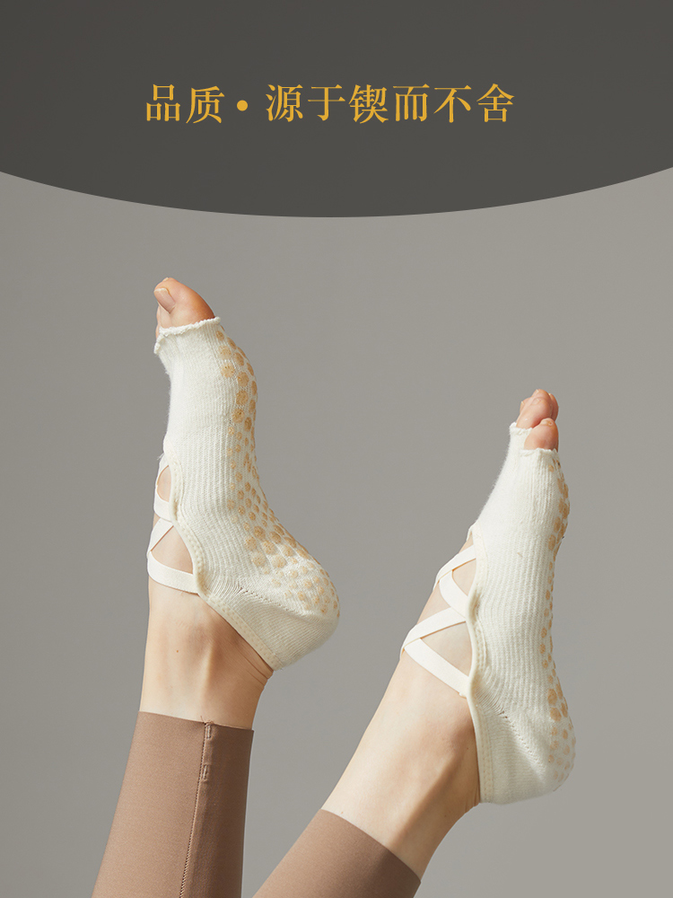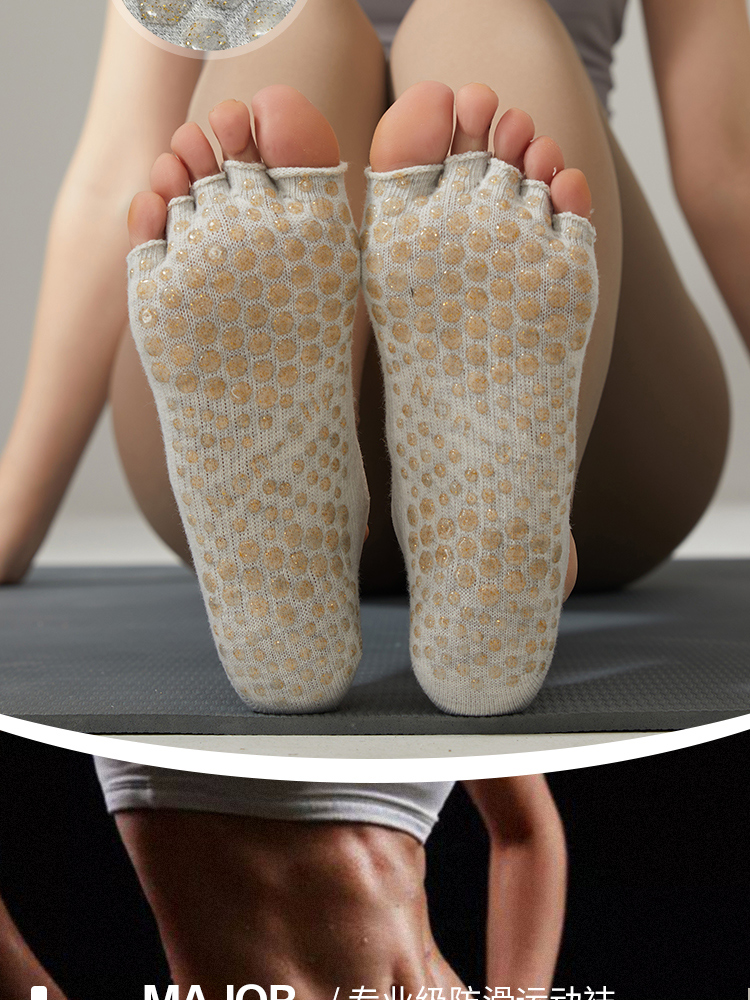 秋冬瑜珈襪子防滑專業女五指襪普拉提分趾室內運動綁帶露趾專用襪