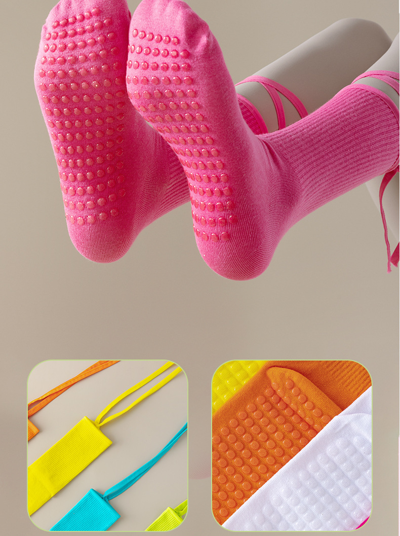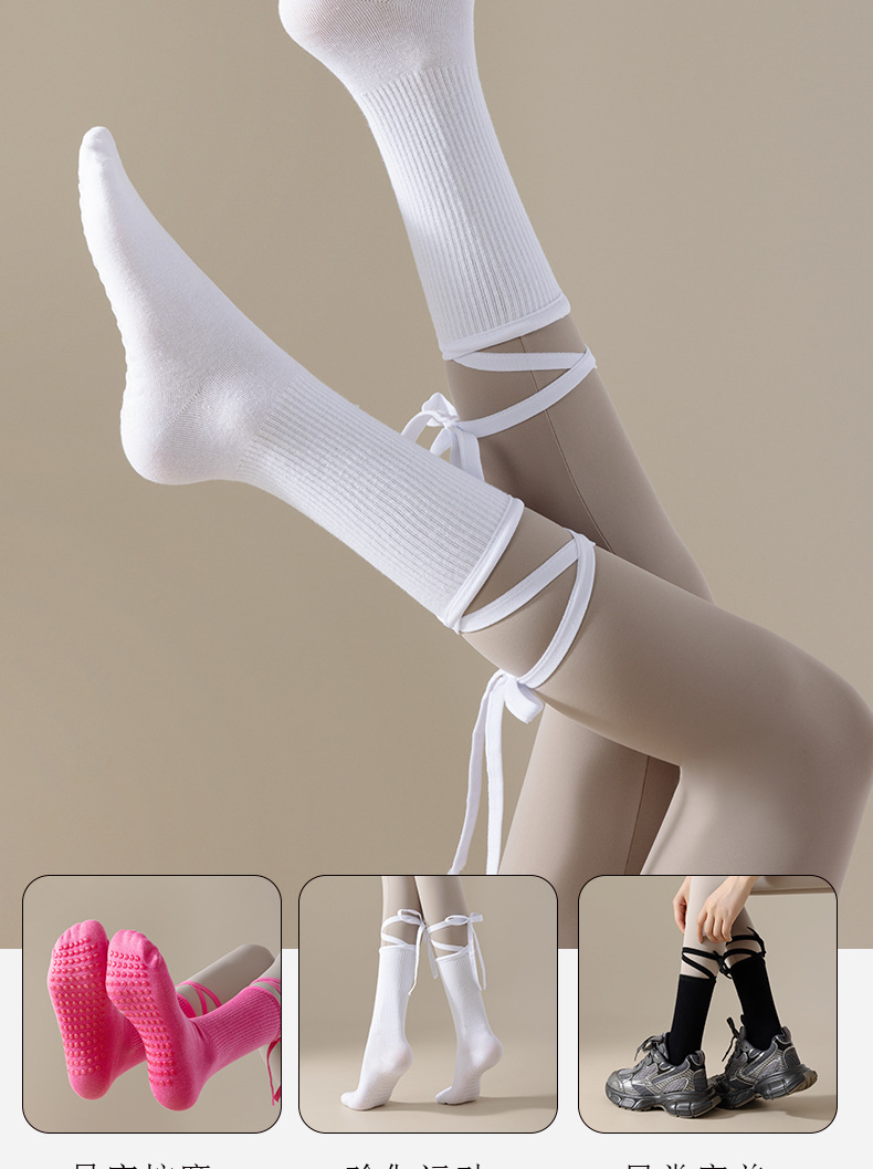 腳底防滑交叉綁帶瑜珈普拉提舞蹈襪瑜珈服搭配多巴胺女孩運動穿搭