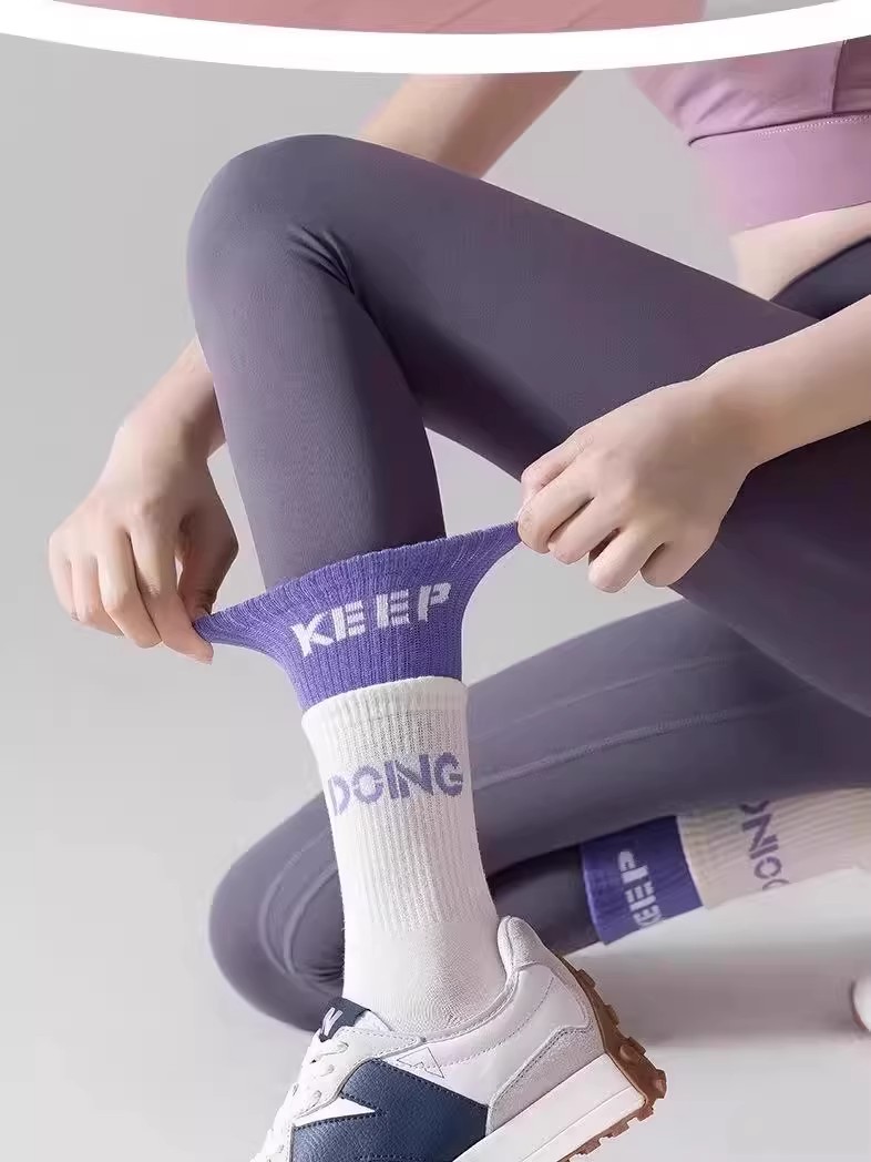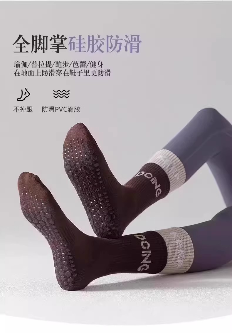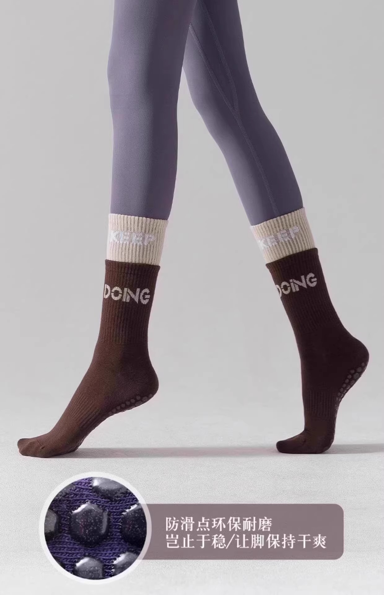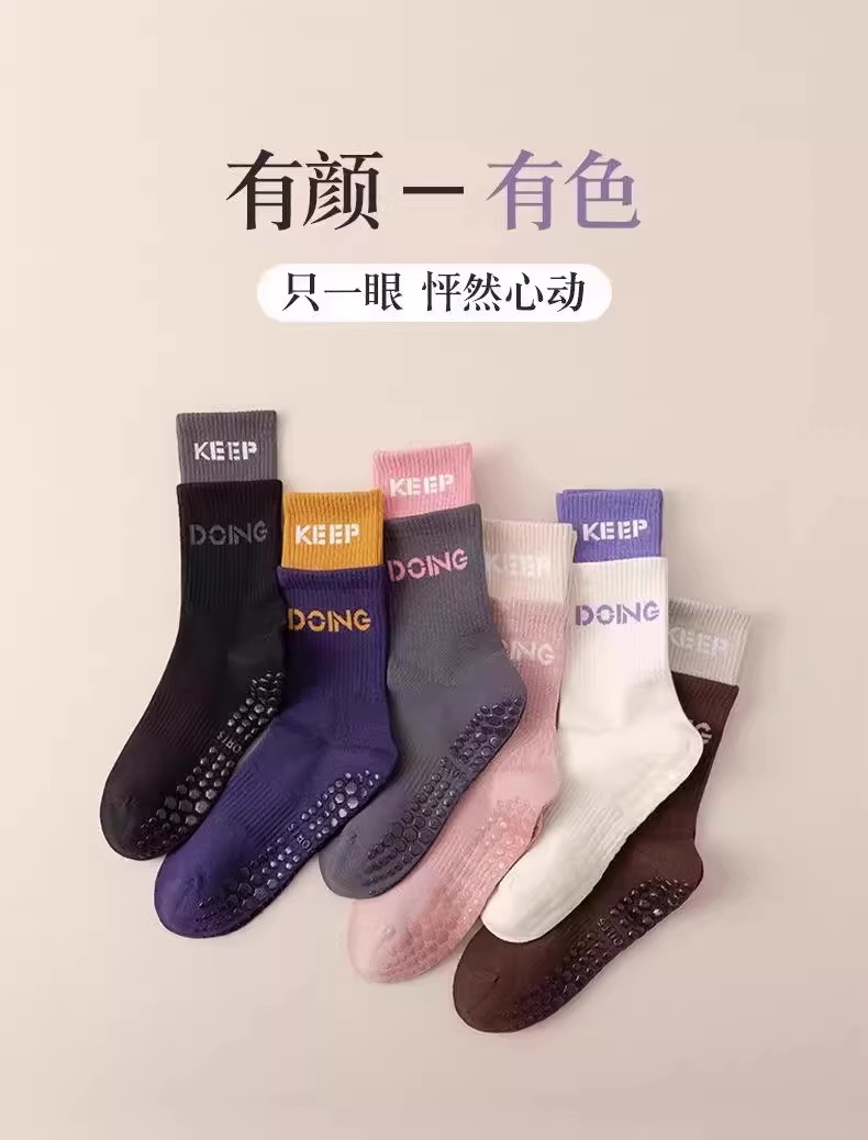 瑜珈襪子女春夏款拼色中筒防滑專業普拉提地板襪配鯊魚褲長襪