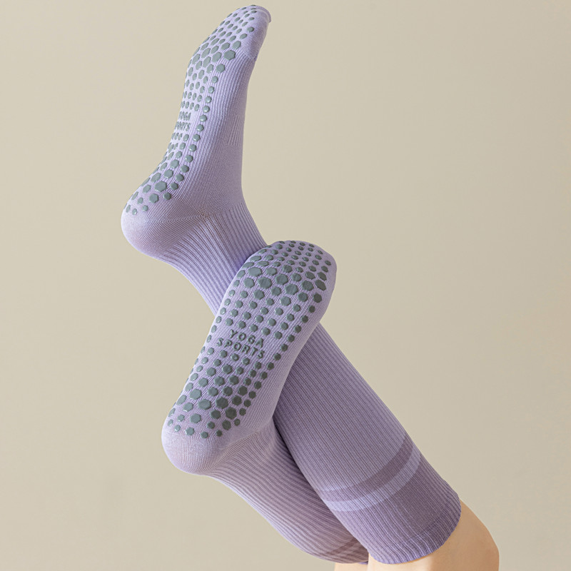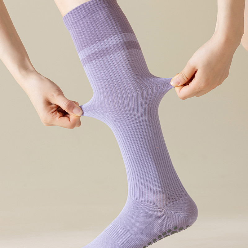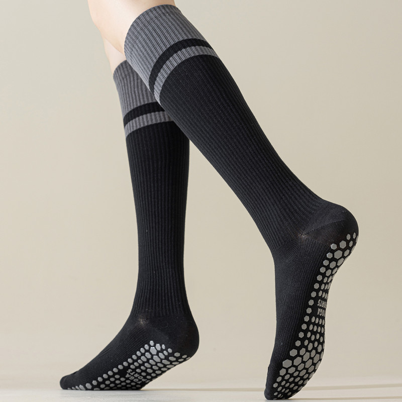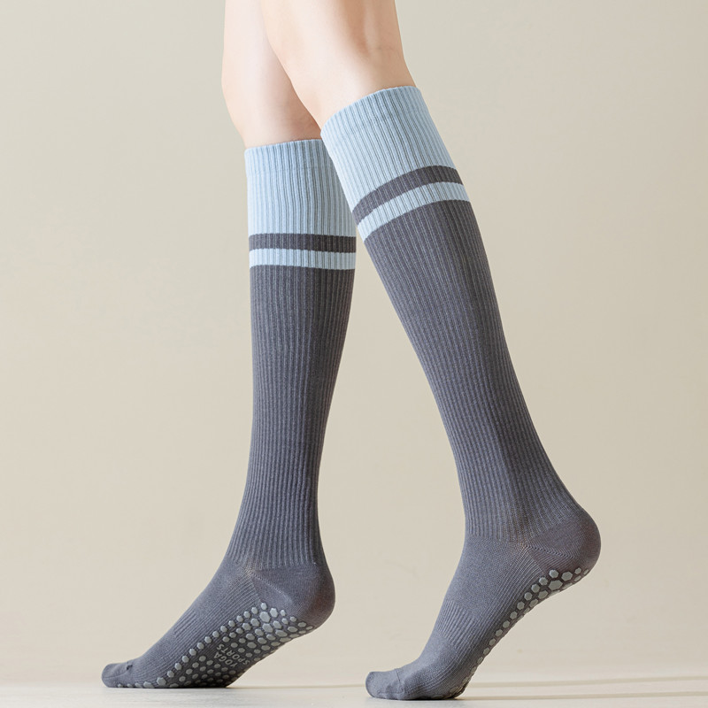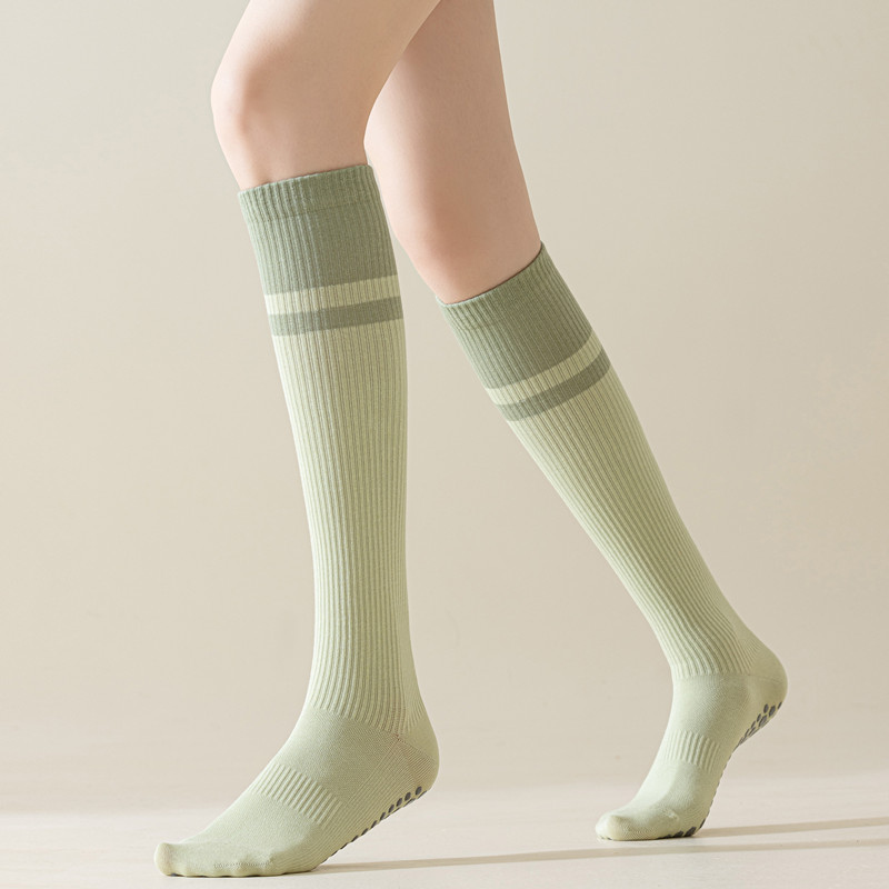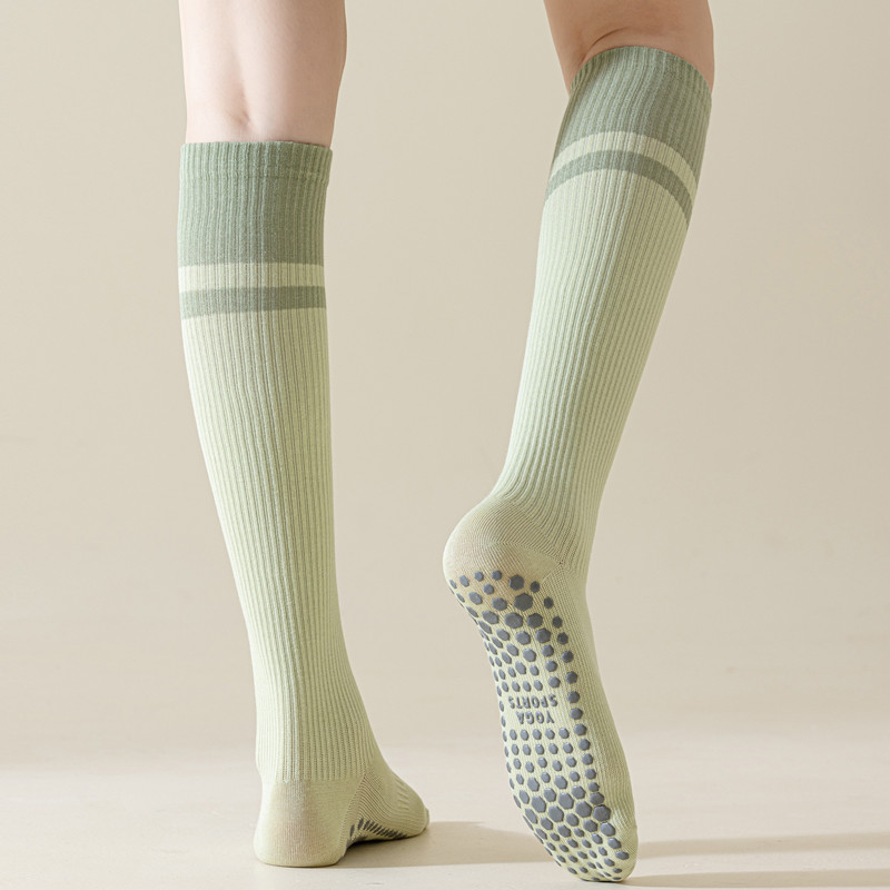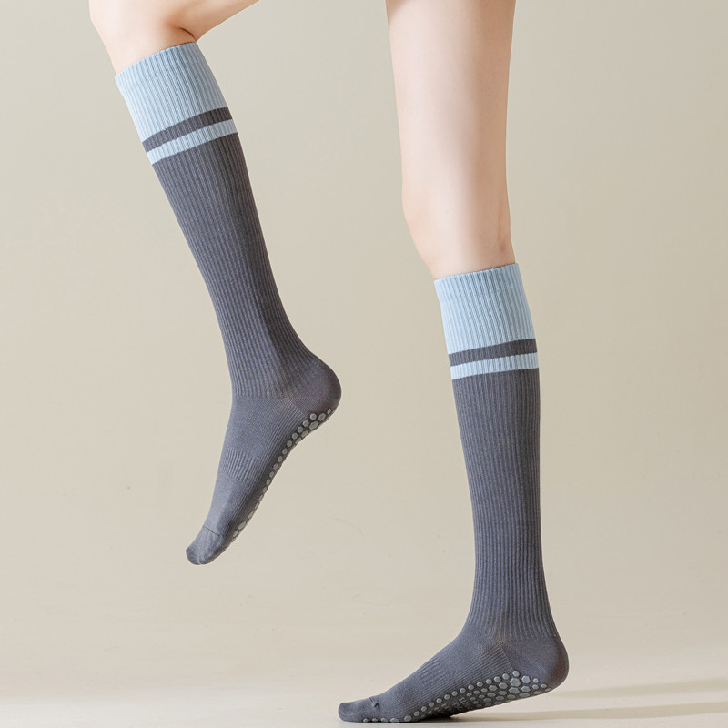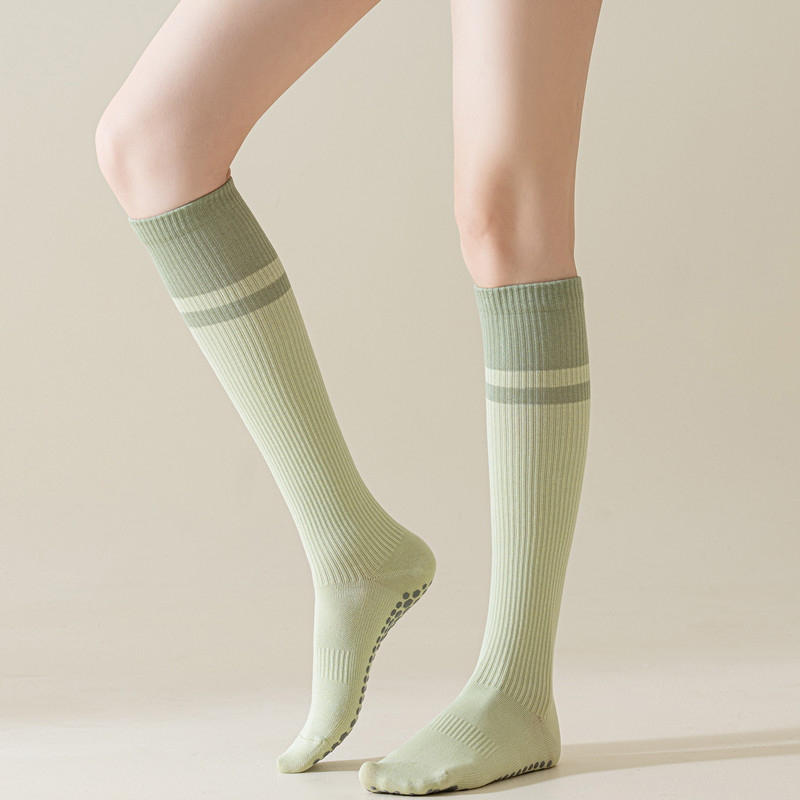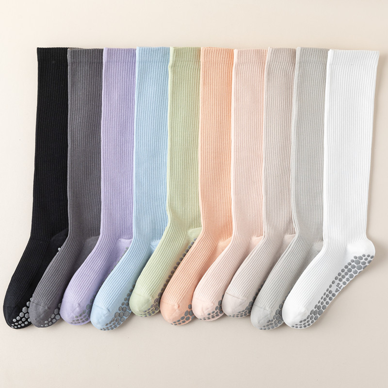 拼色瑜珈小腿襪專業防滑普拉提壓力運動襪子女春秋健身舞蹈長筒襪