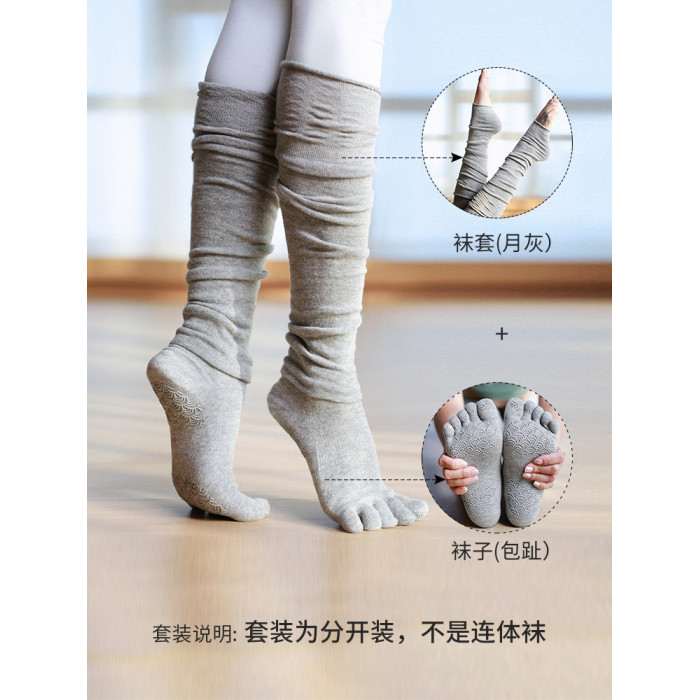 TOYOGI專業防滑長筒瑜珈襪子女過膝保暖冬露五指普拉提瑜珈中筒襪