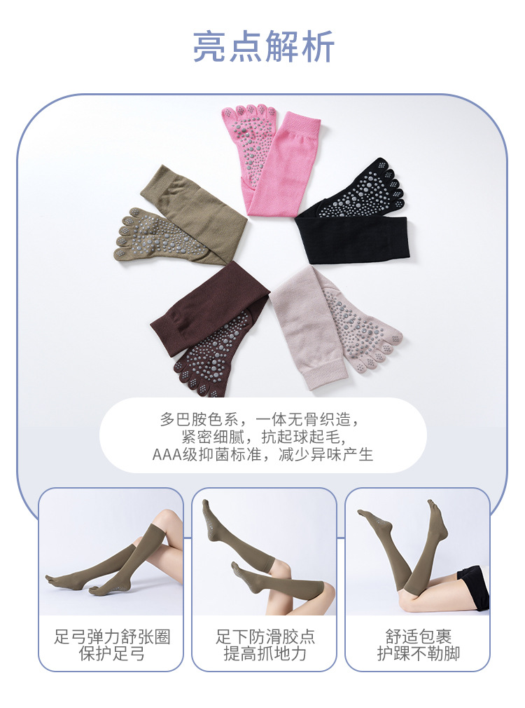 長筒瑜珈襪子防滑專業女五指襪普拉提襪子地板襪成人瑜珈防滑襪