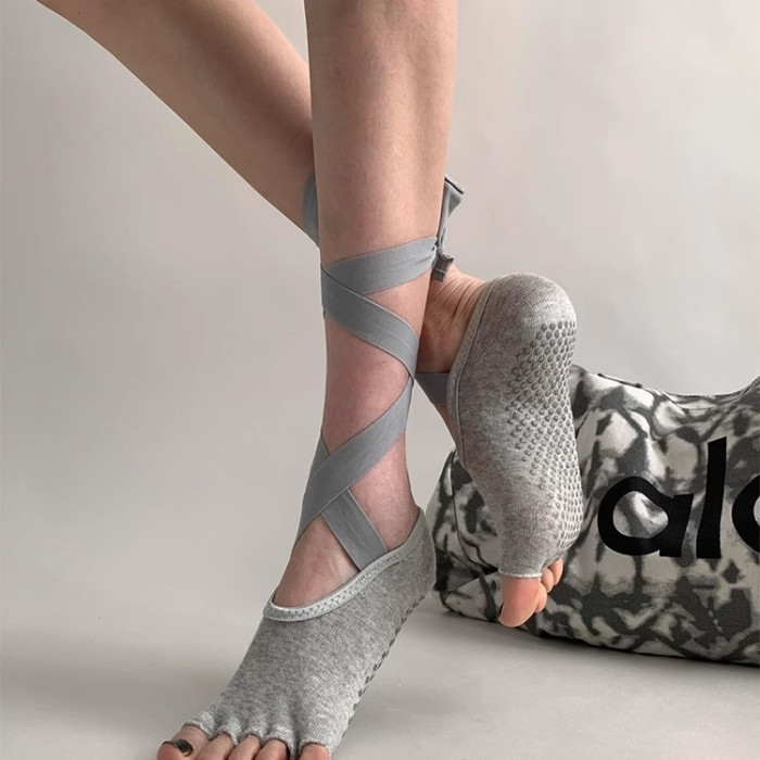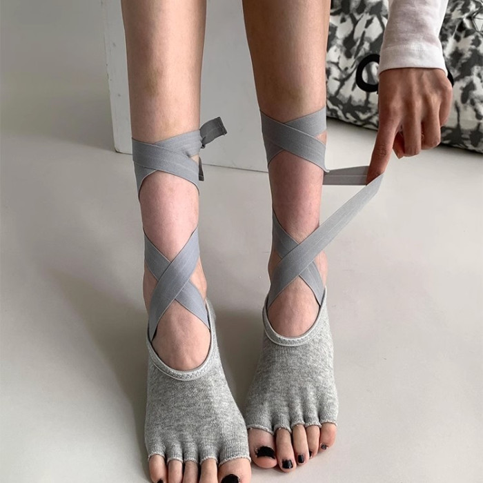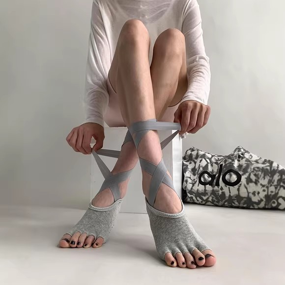 媽耶!綁帶瑜珈襪也太miu了吧~超顯腿細!防滑瑜珈普拉提五指襪~