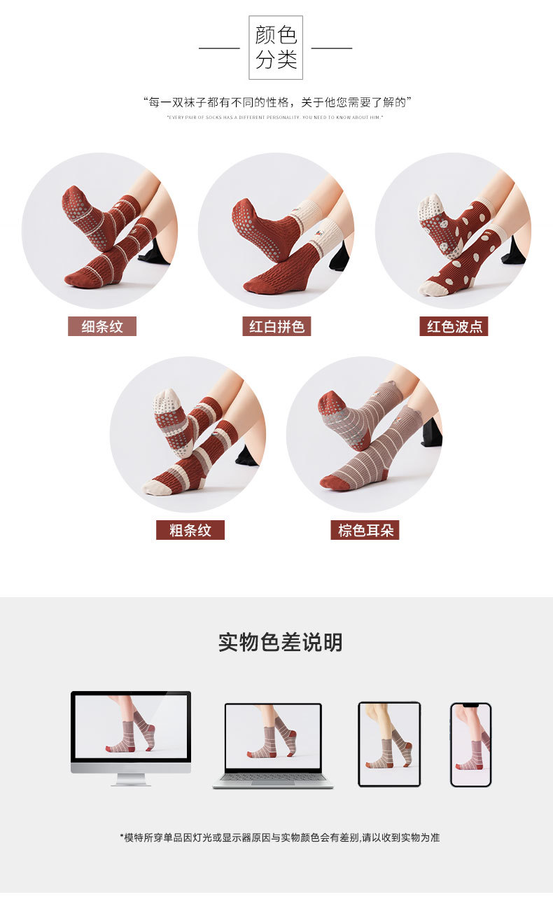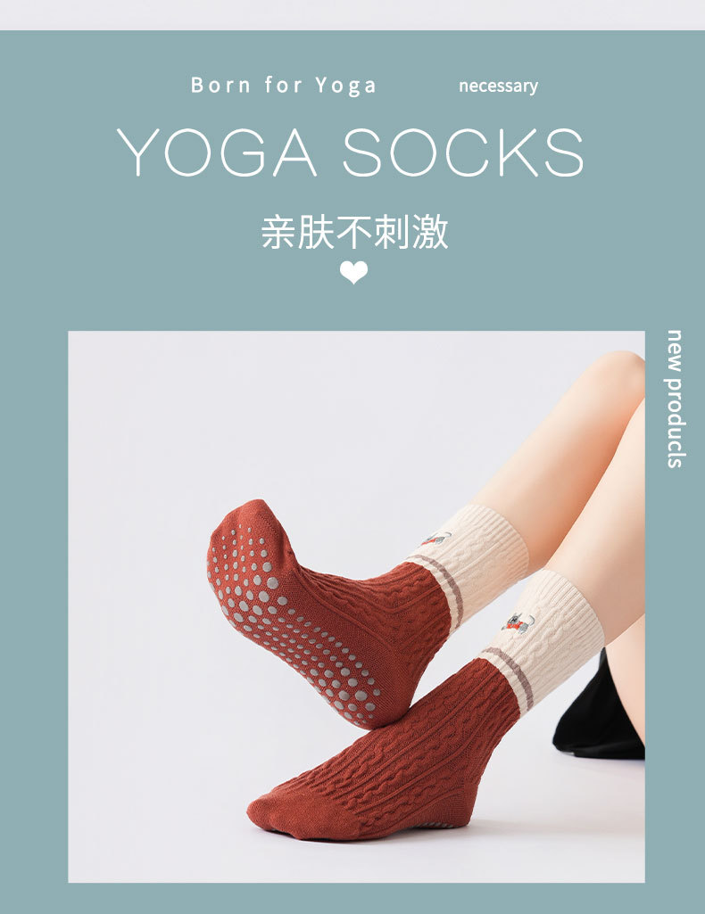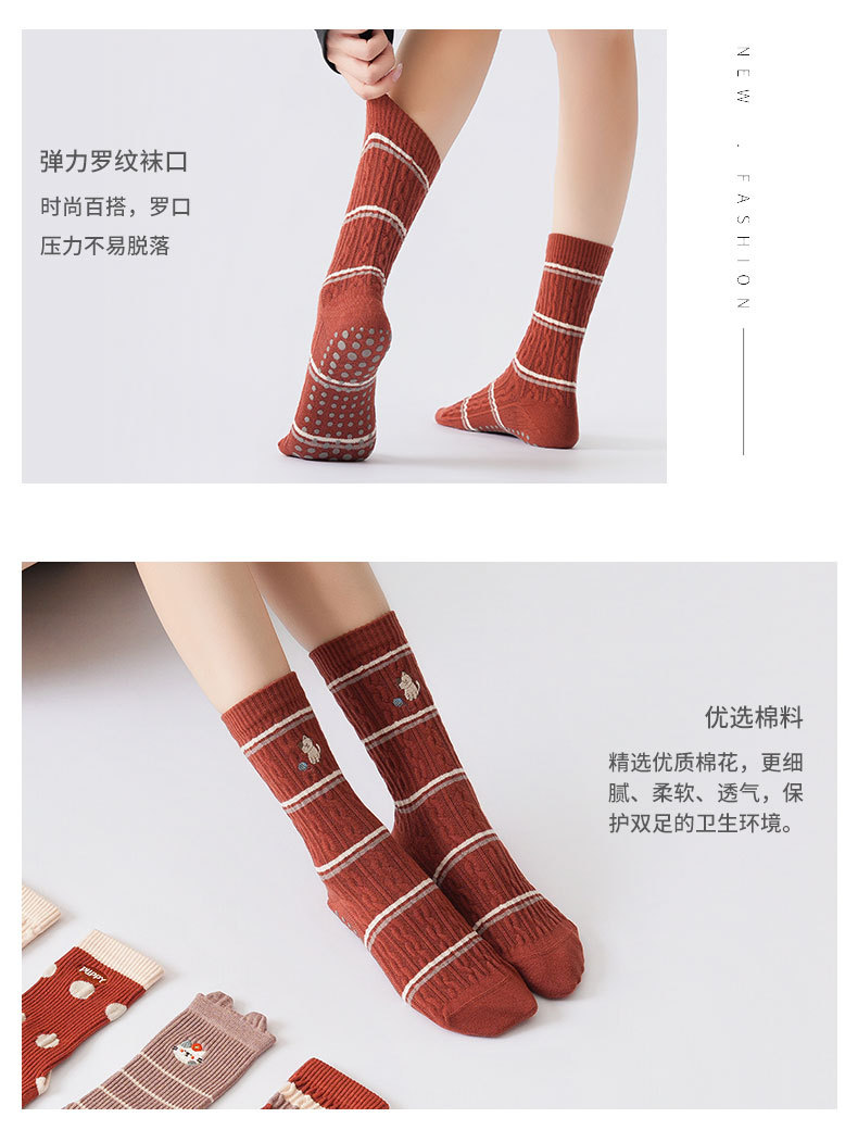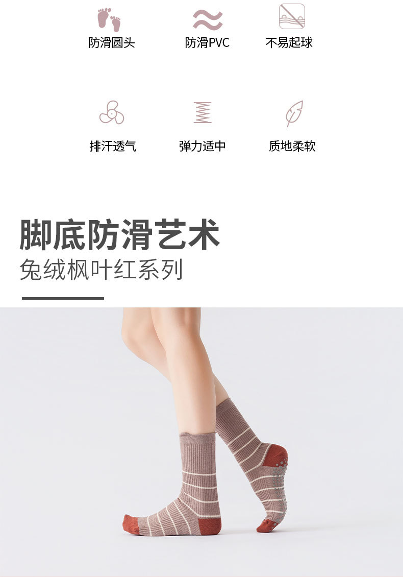 XY0867花色折釦無骨楓葉紅系列瑜珈襪女刺綉兔絨女士普拉提舞蹈襪