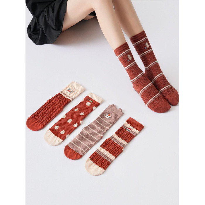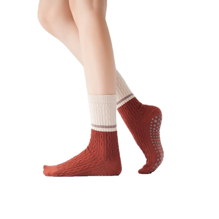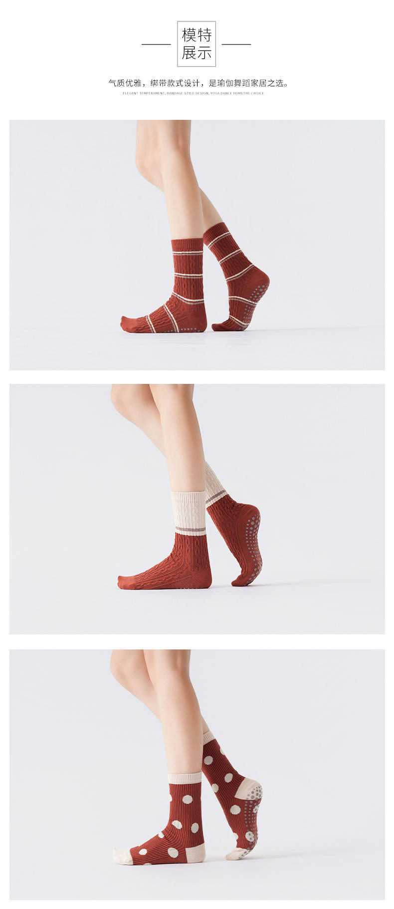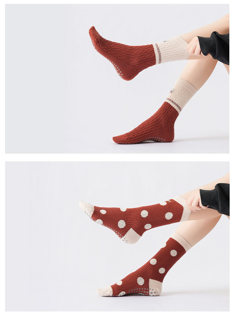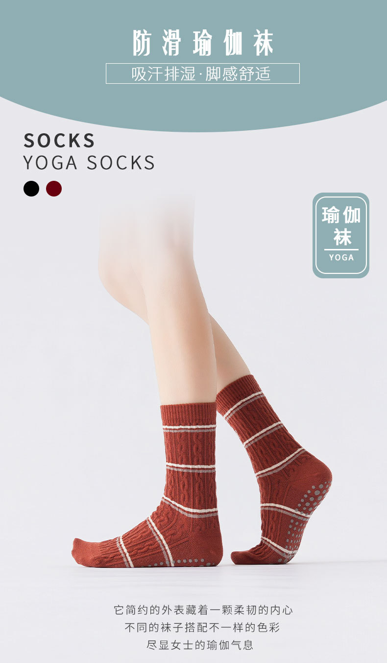XY0867花色折釦無骨楓葉紅系列瑜珈襪女刺綉兔絨女士普拉提舞蹈襪