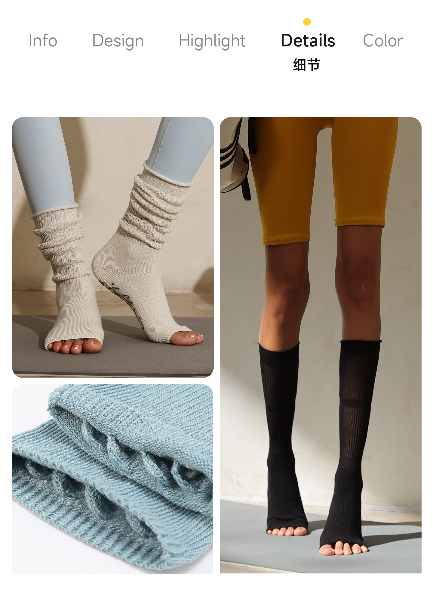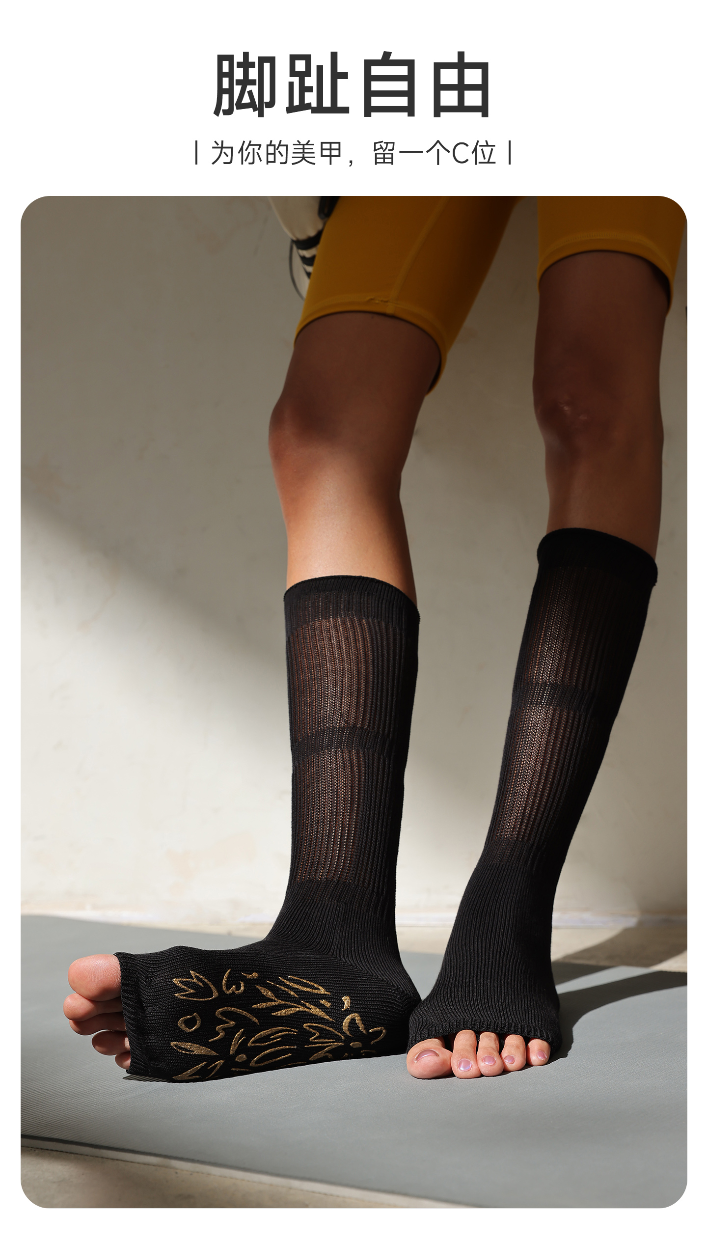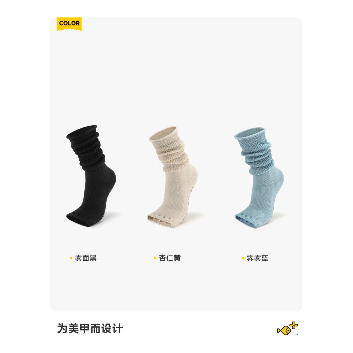 小魚加加露趾瑜珈襪防滑五指專業女普拉提運動女夏白色小腿堆堆襪