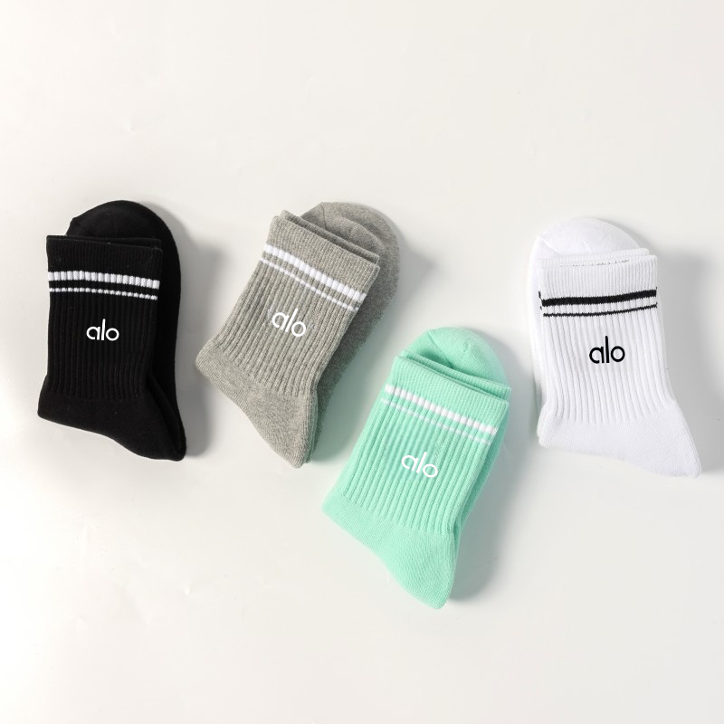 ALOIDE美版瑜珈襪子男女同款運動襪中筒襪棉防滑矽膠跑步訓練長襪