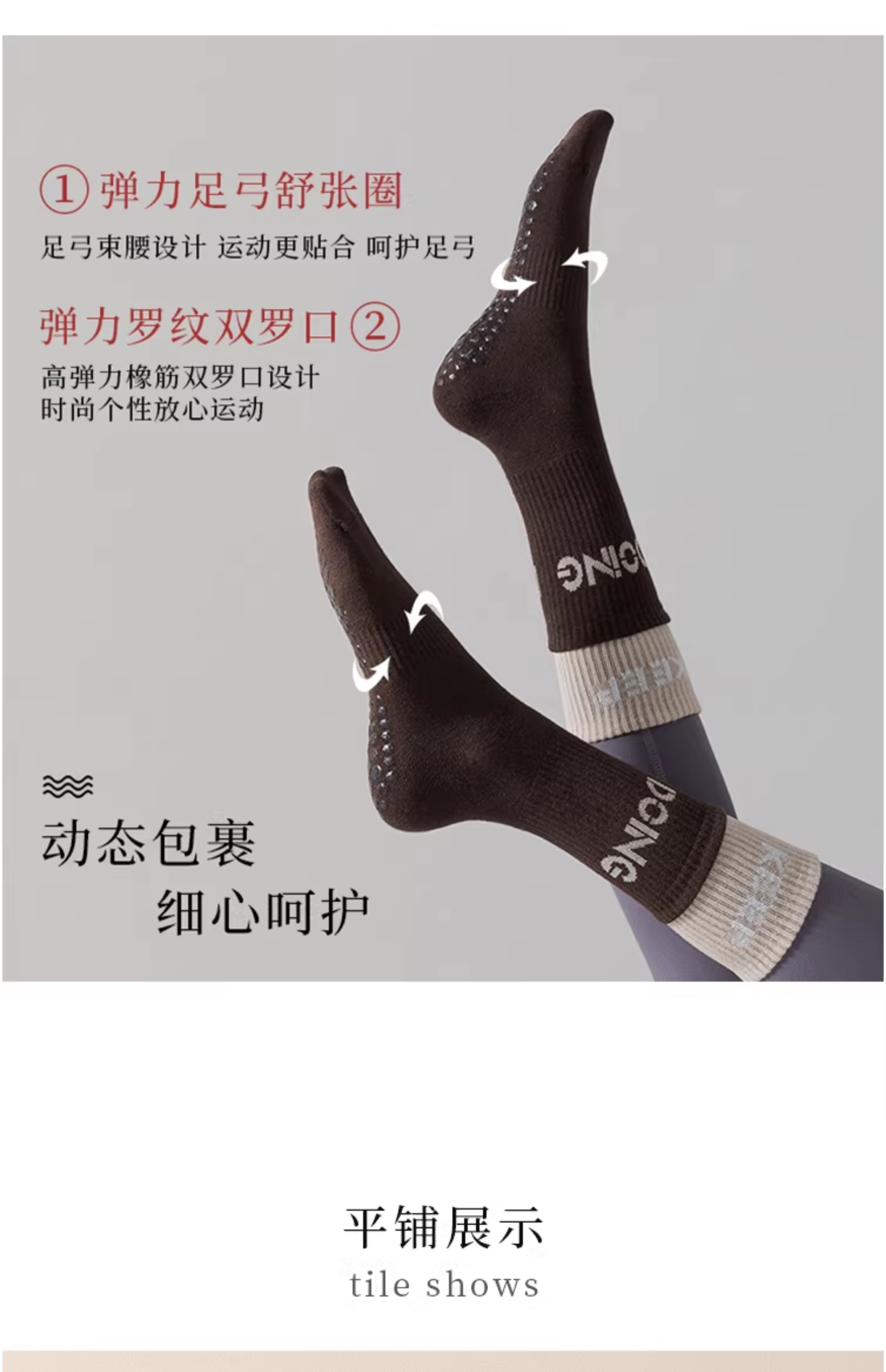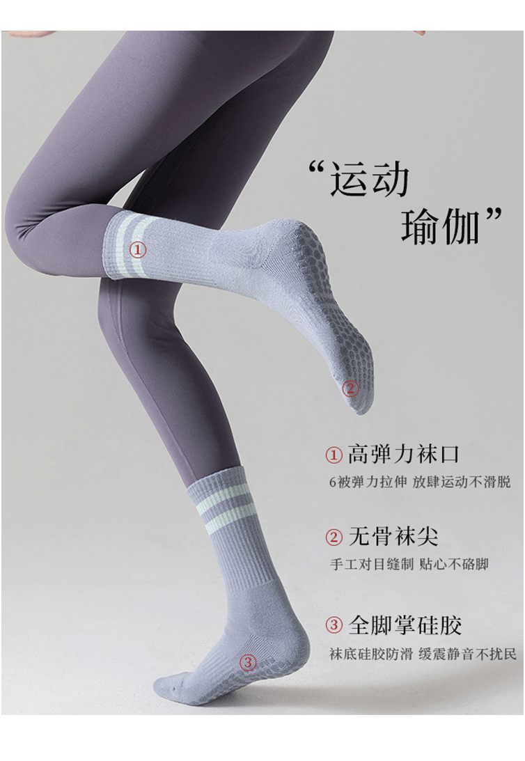 胖梨日記矽膠防滑瑜珈襪女健身訓練運動普拉提舞蹈中筒襪純棉襪子