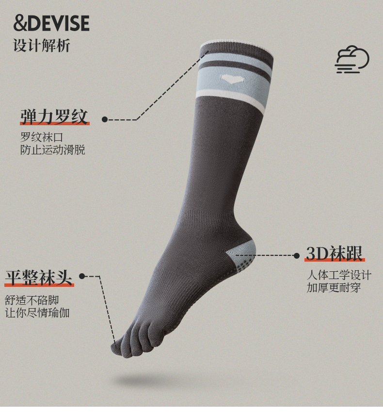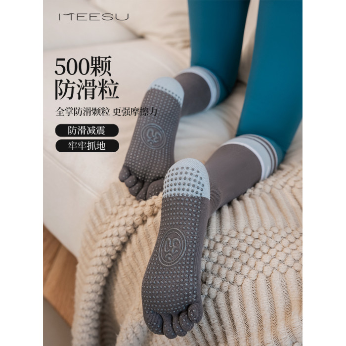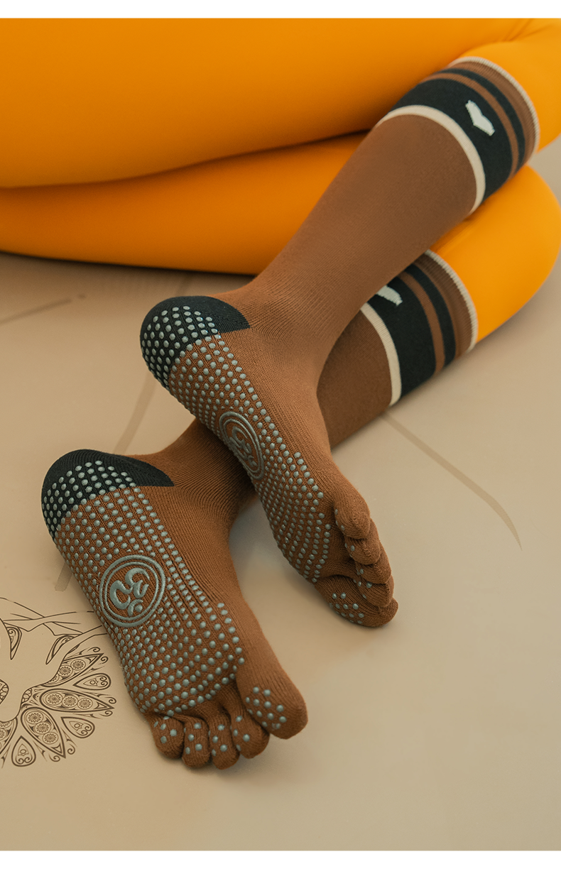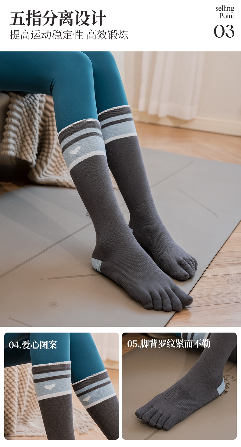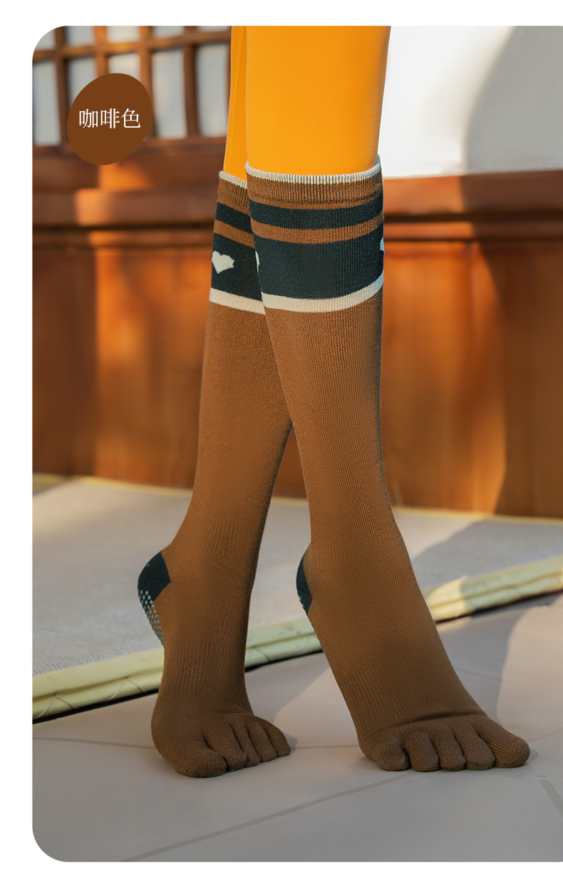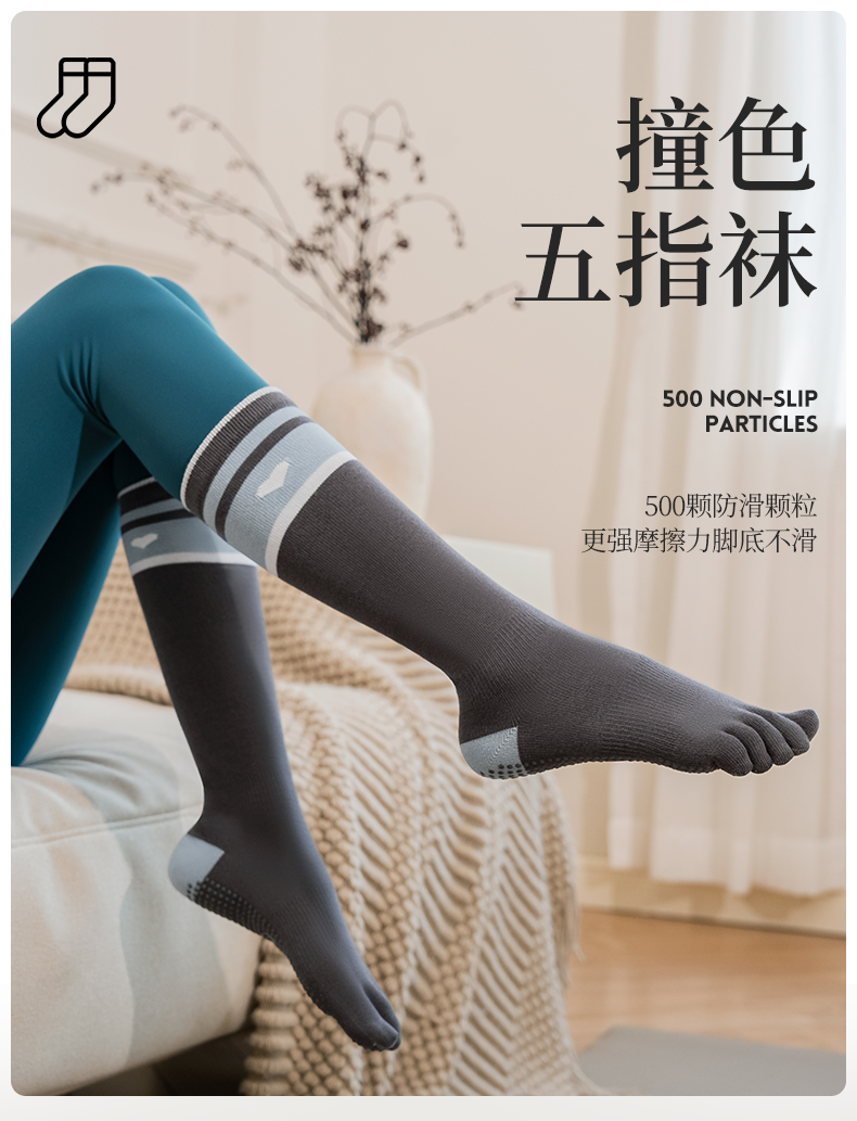 美愫瑜珈小腿長筒襪子防滑專業女壓力運動健身五指襪跑步普拉提襪