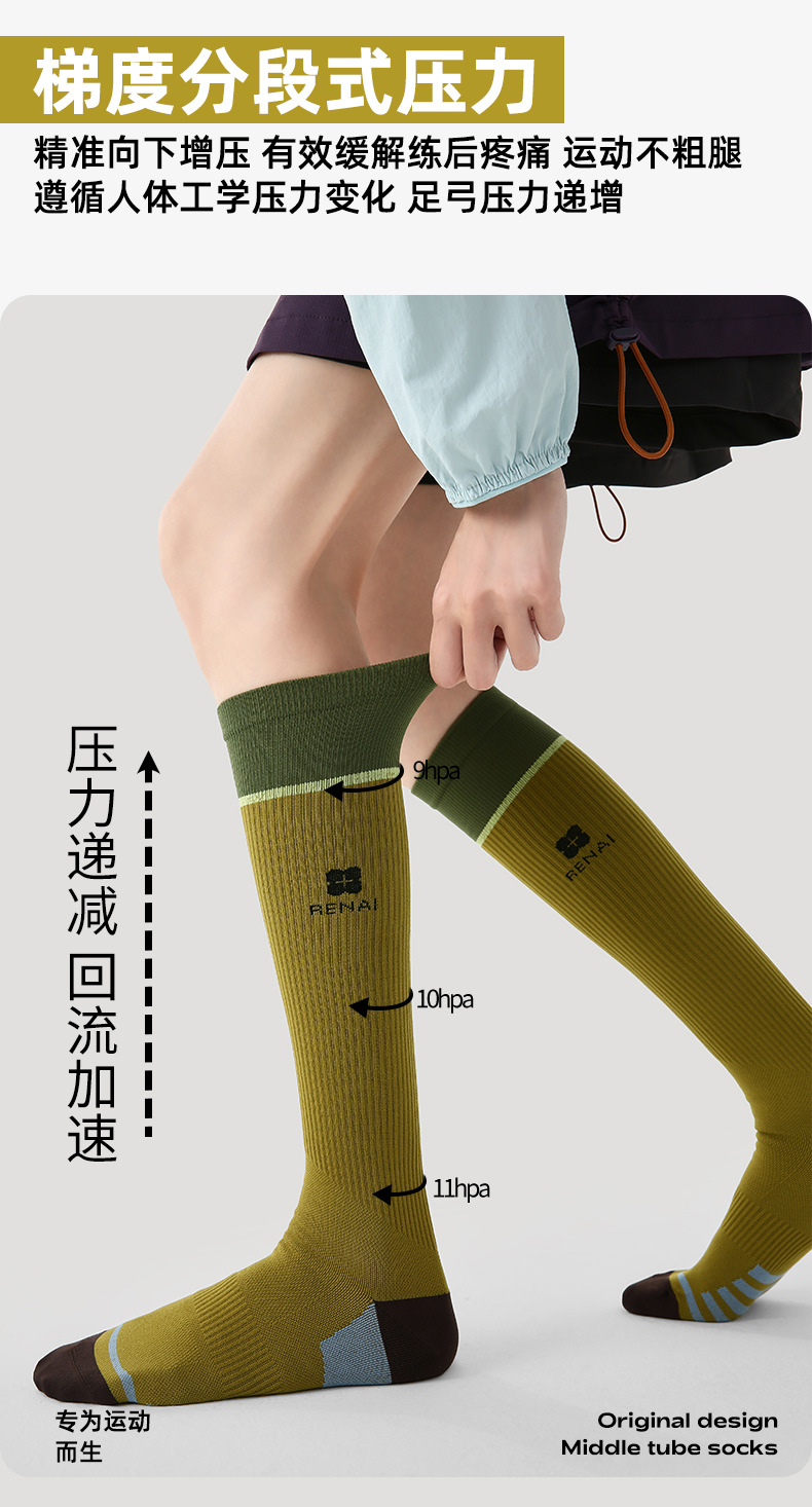 Renaissance壓縮女襪公路車騎行襪跑步運動健身跳繩小腿壓力襪子