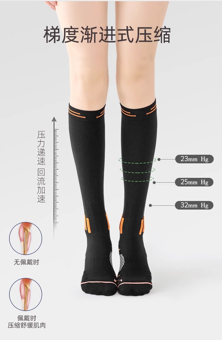 運動肌能壓縮襪子女跳繩專用壓力小腿專業跑步馬拉松瘦腿長筒套