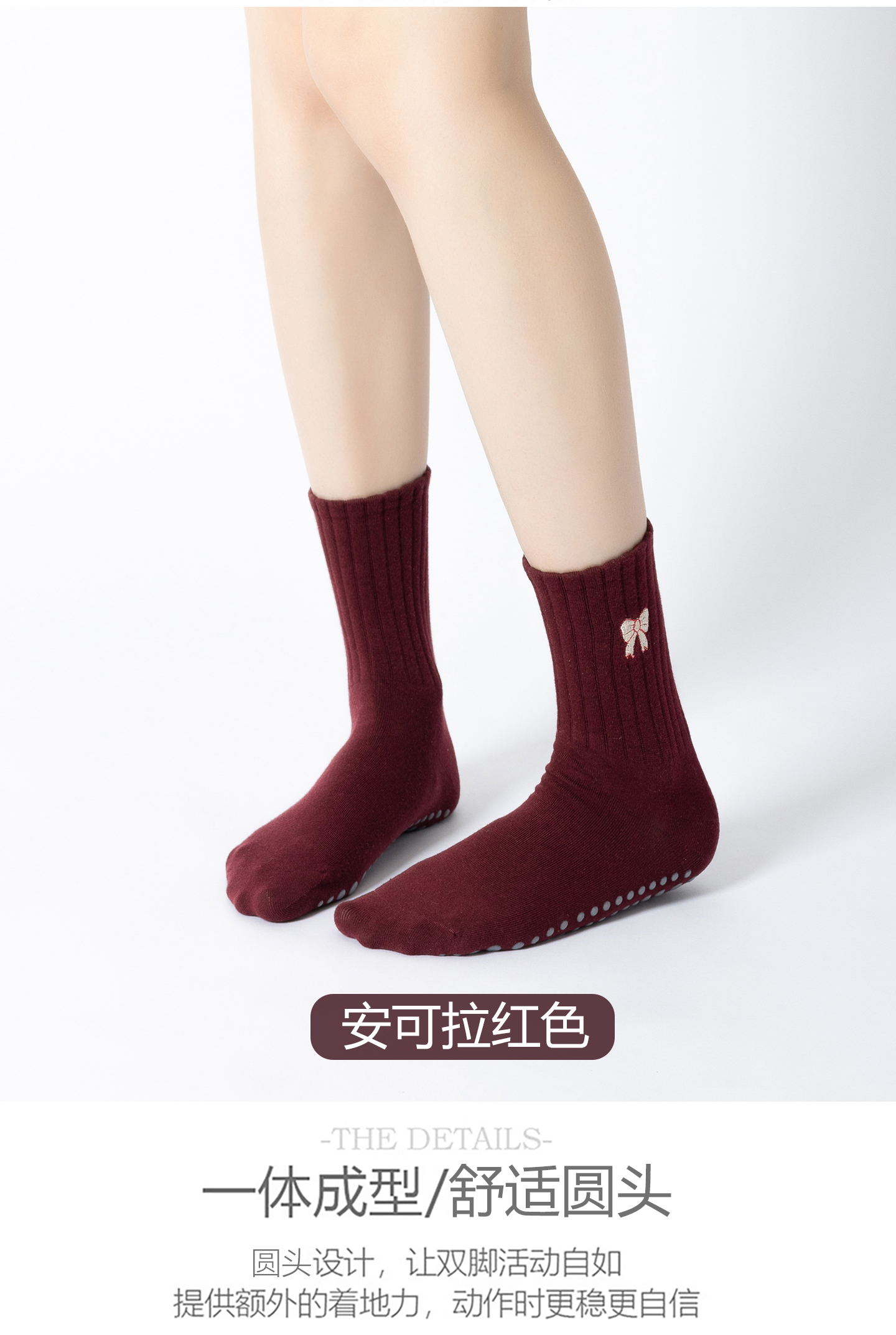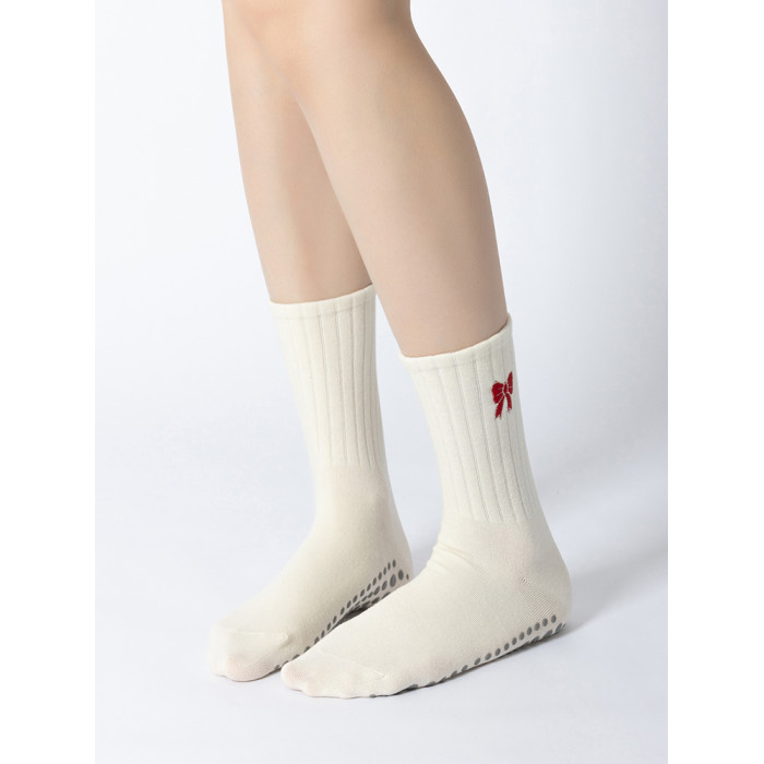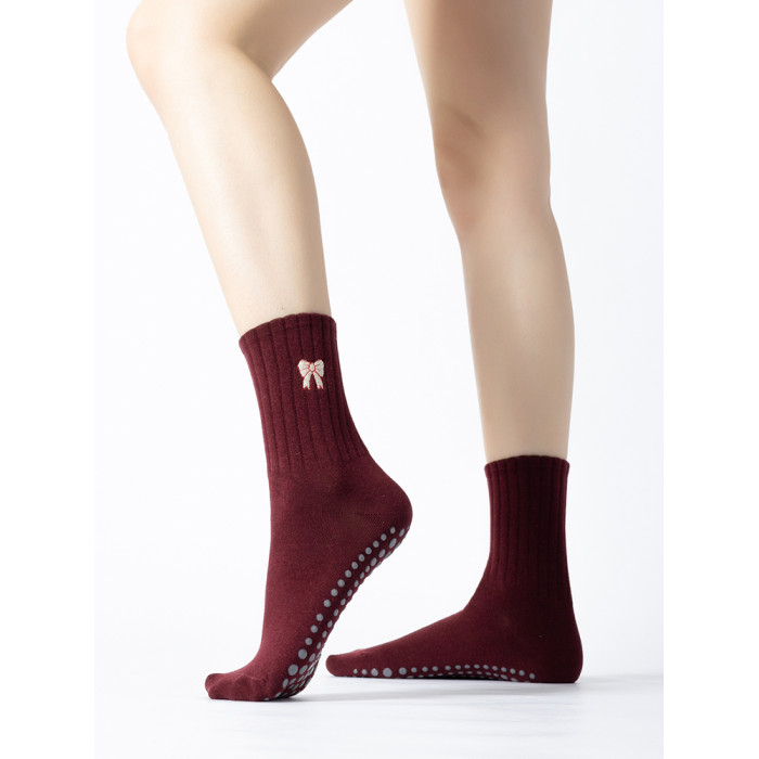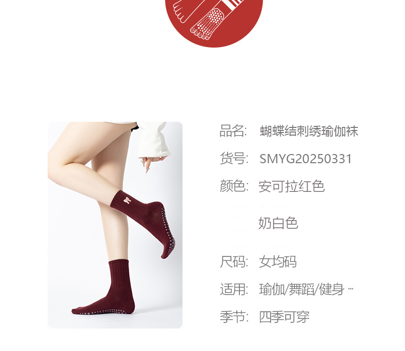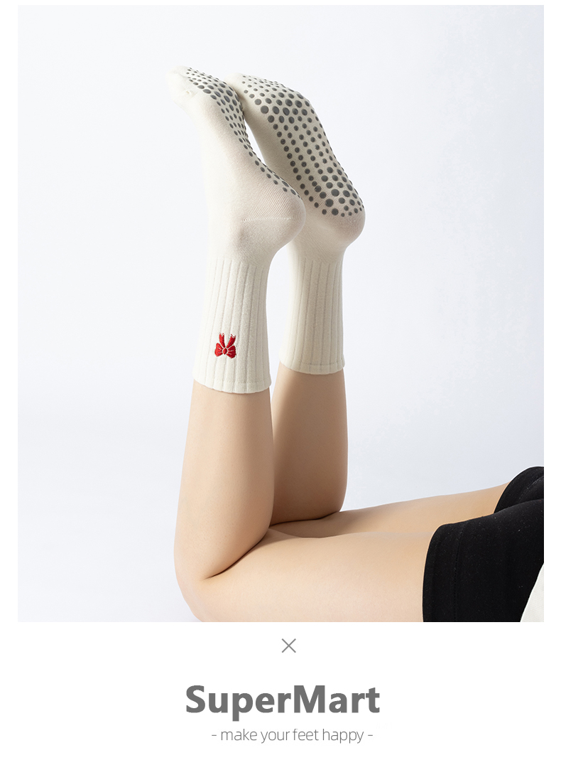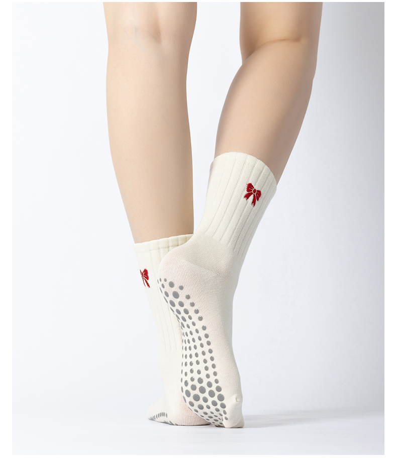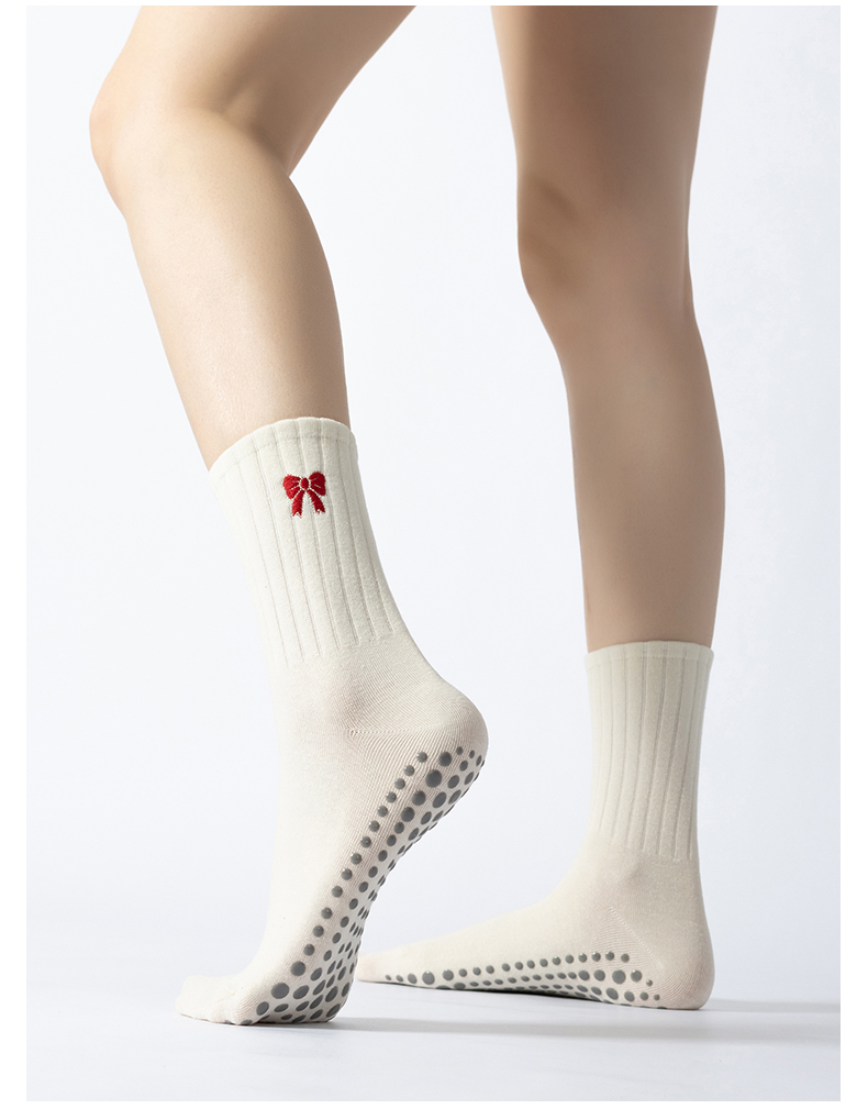 普拉提專業女防滑襪蝴蝶結中筒瑜珈襪子不分指室內專用運動健身襪