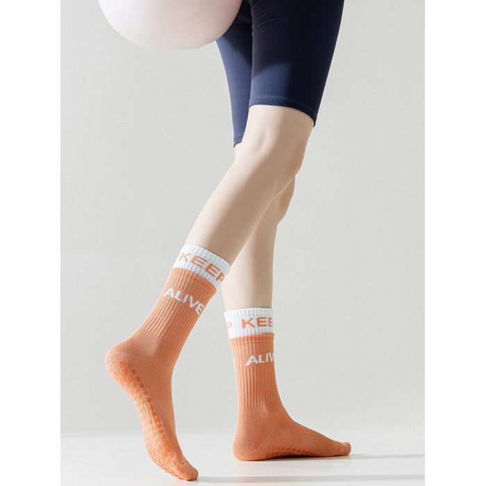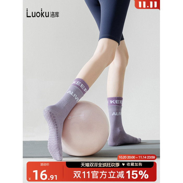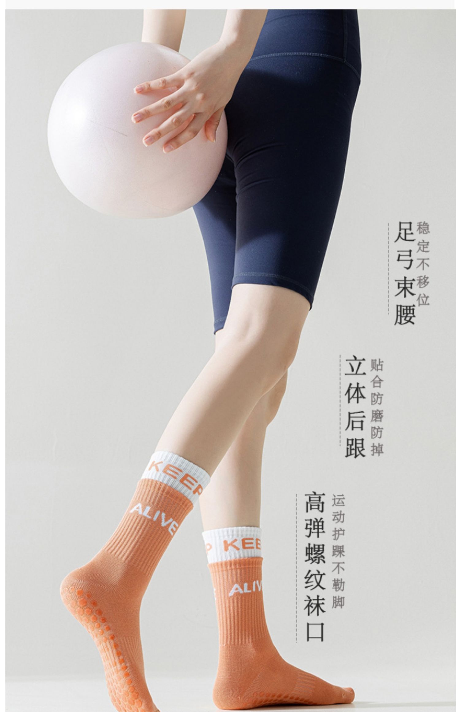 瑜珈襪女中筒春秋款運動防滑普拉提襪子夏季薄款配鯊魚褲長襪