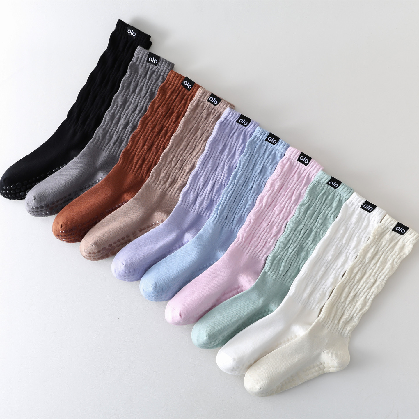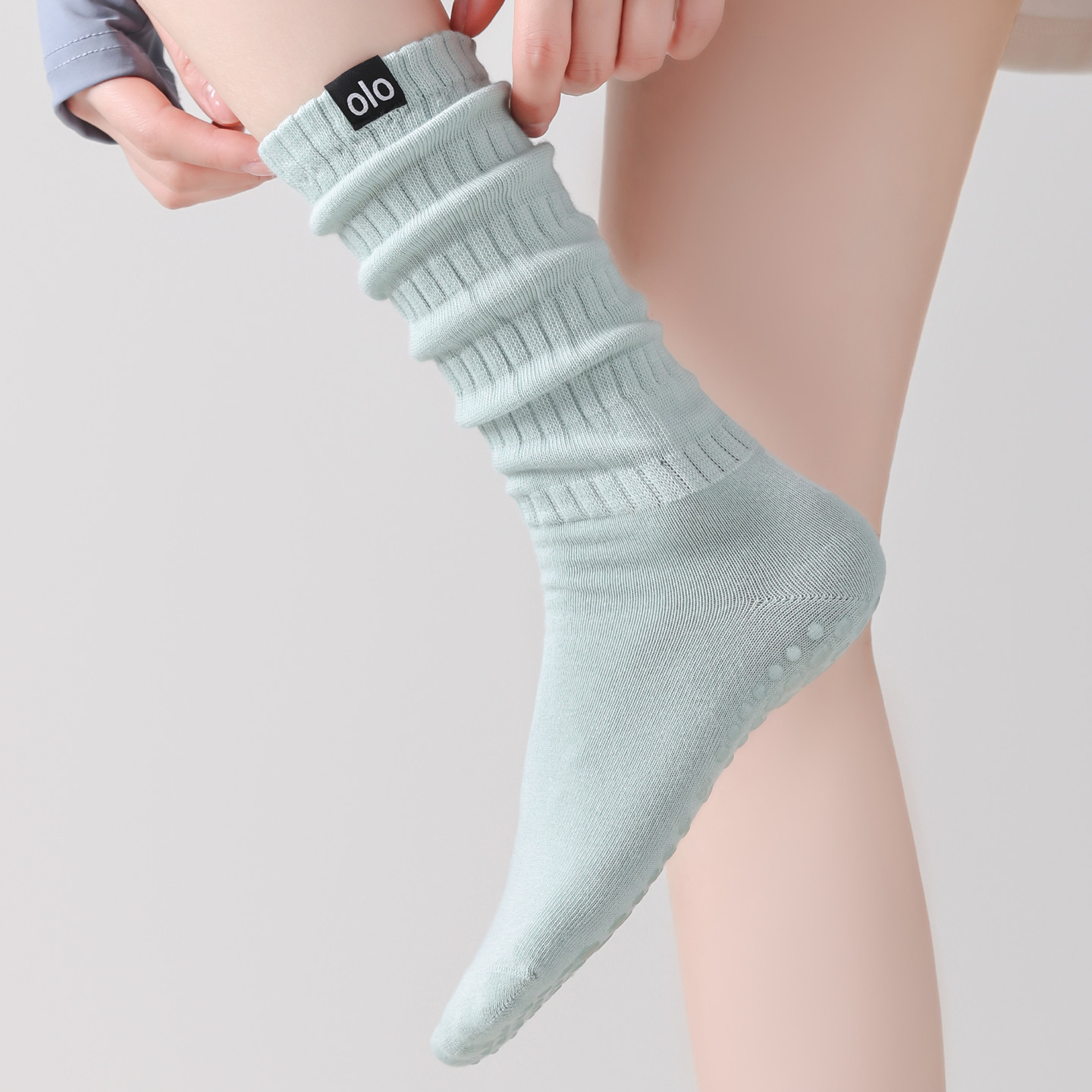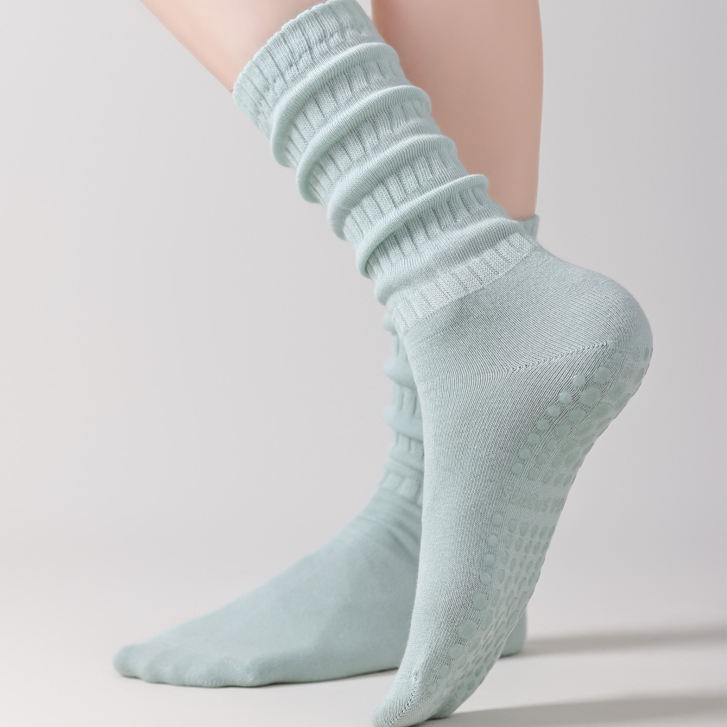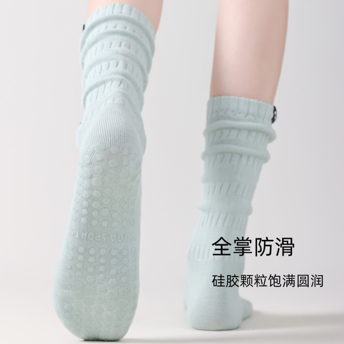 2025新款瑜珈襪子女士專業防滑中筒長筒室內運動普拉提秋冬堆堆襪