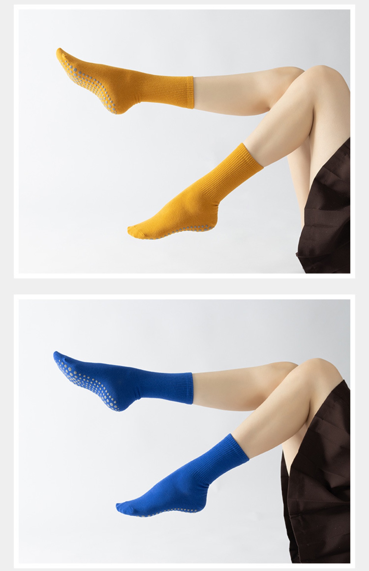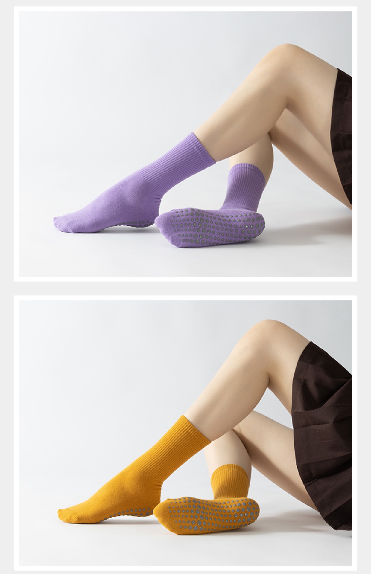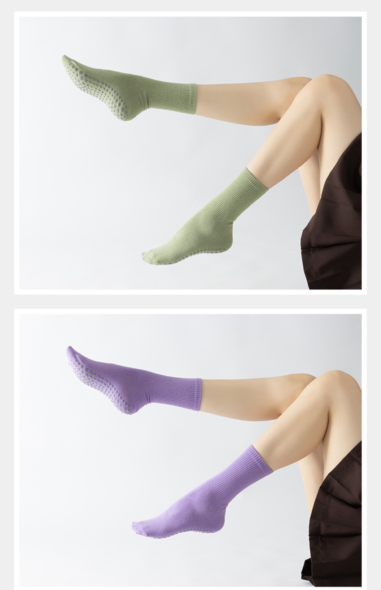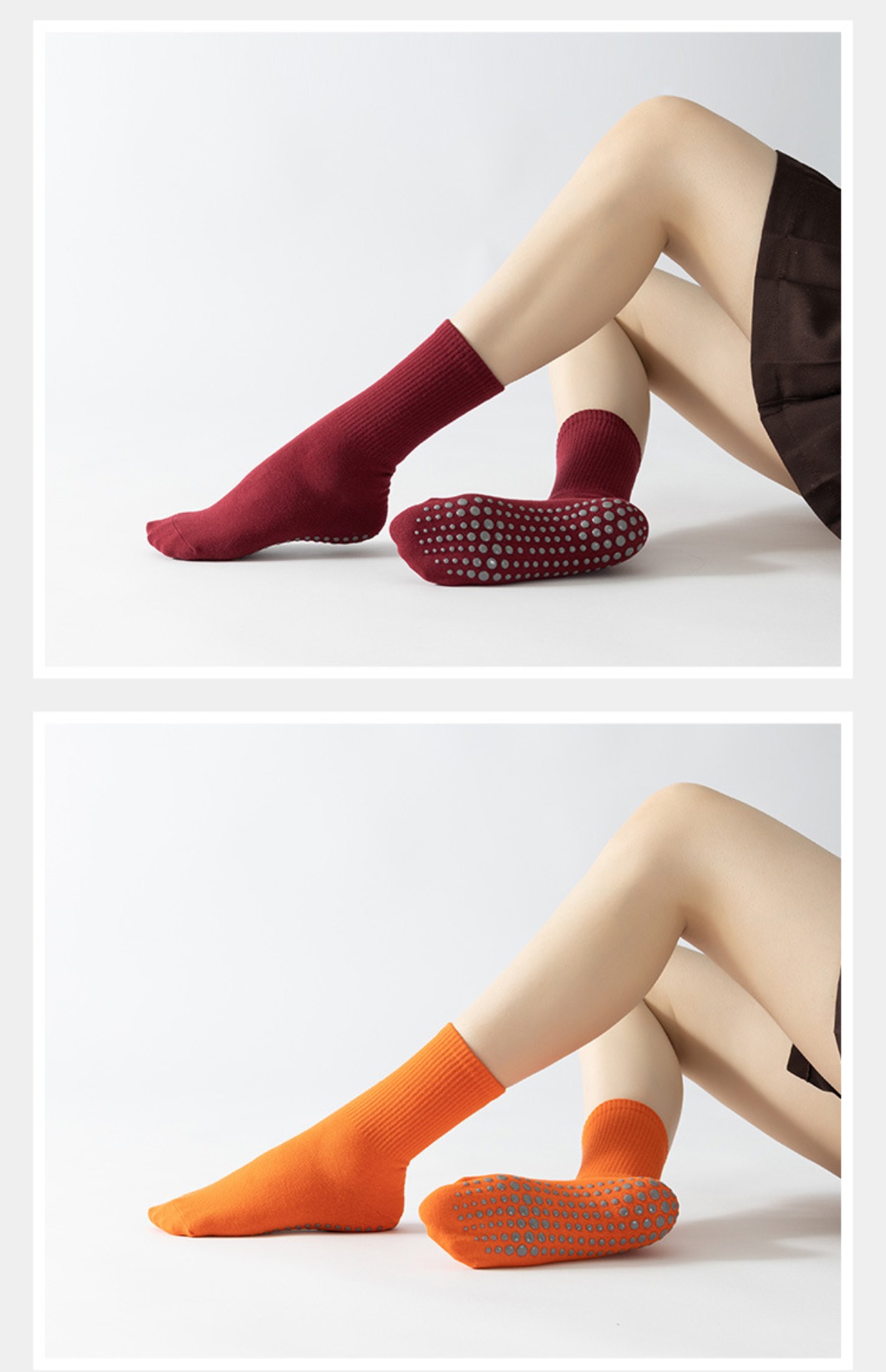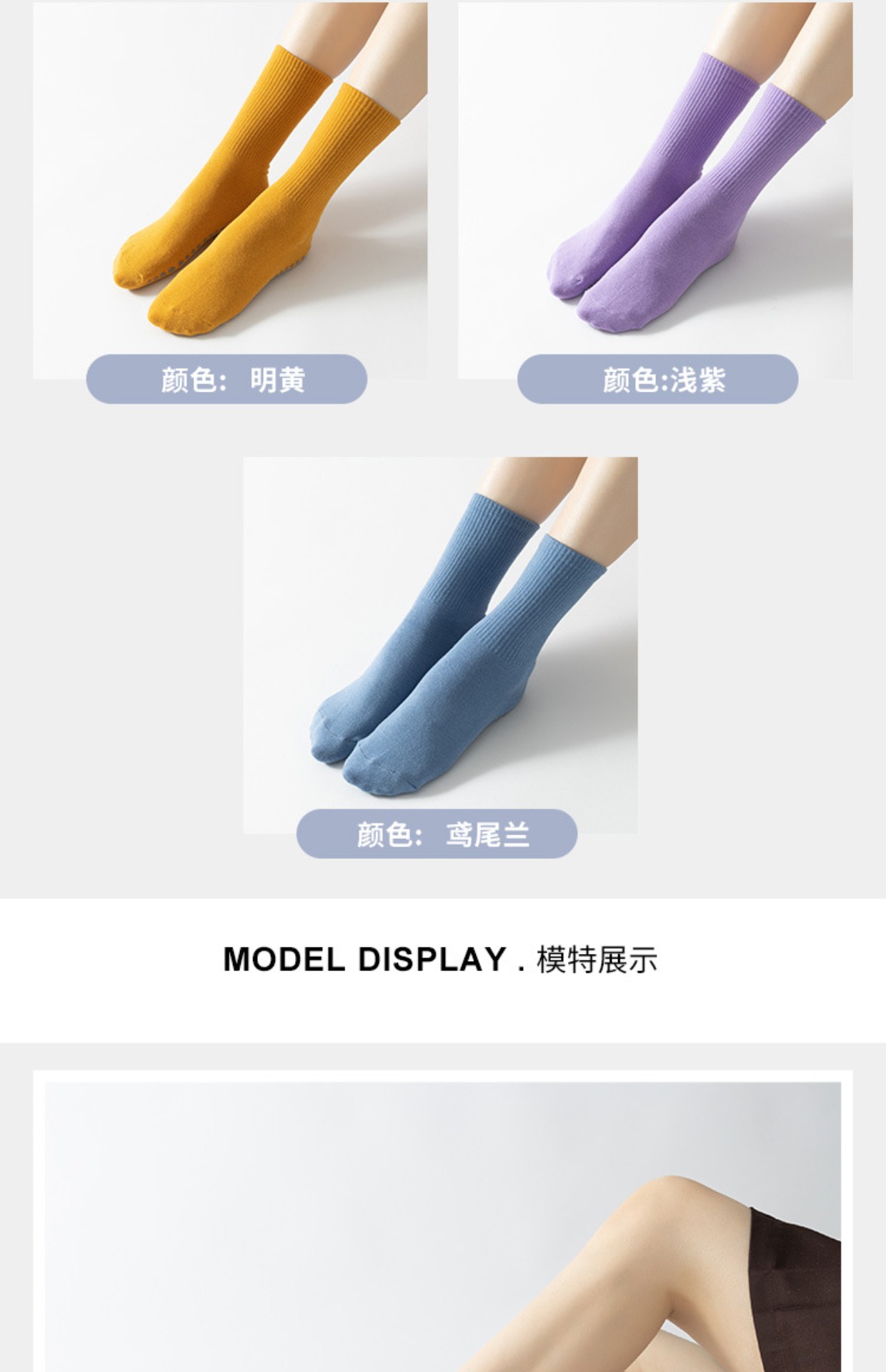 四季可穿新款防滑瑜珈襪長中筒小腿地板襪運動普拉提襪女純色襪子