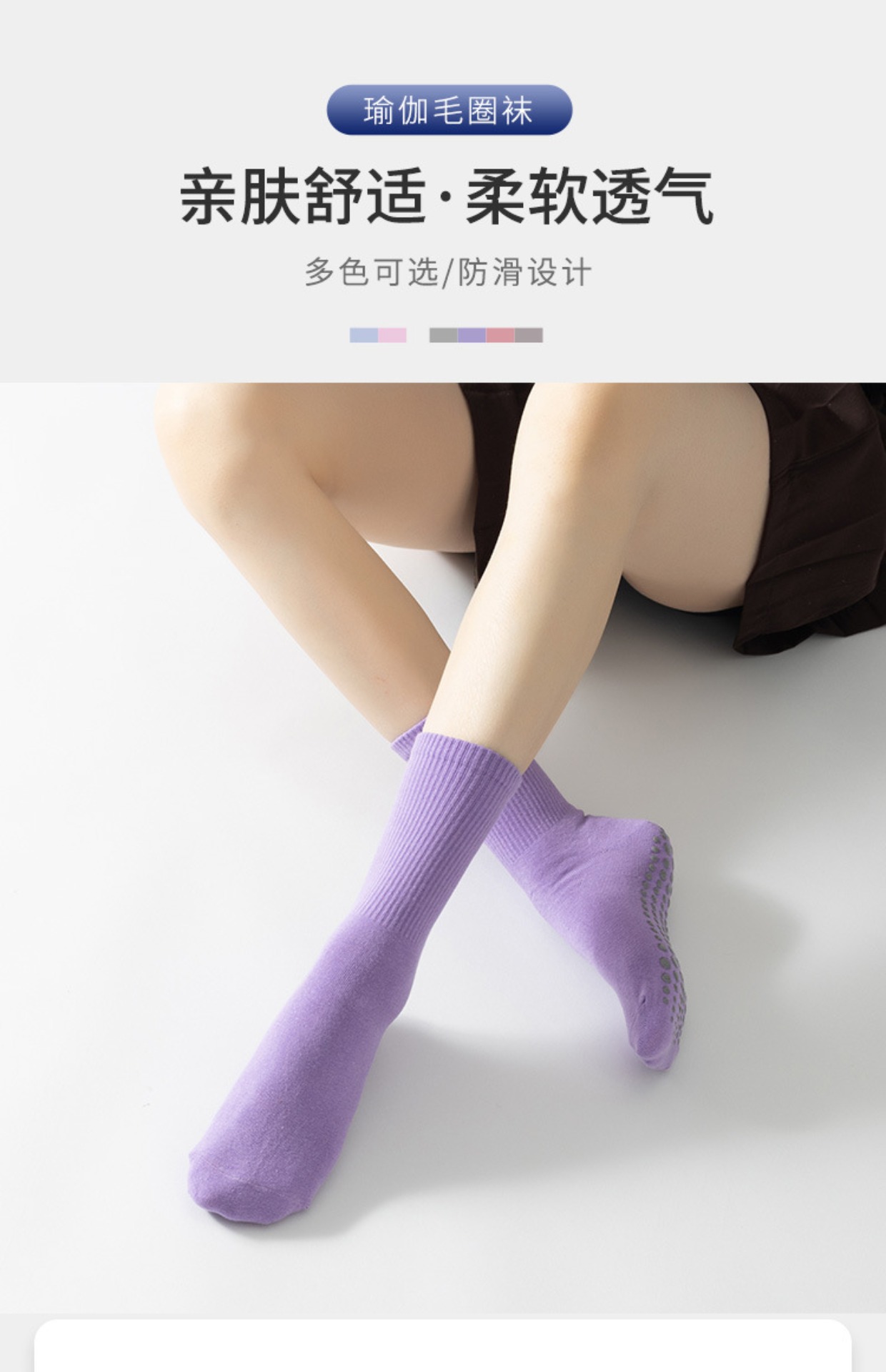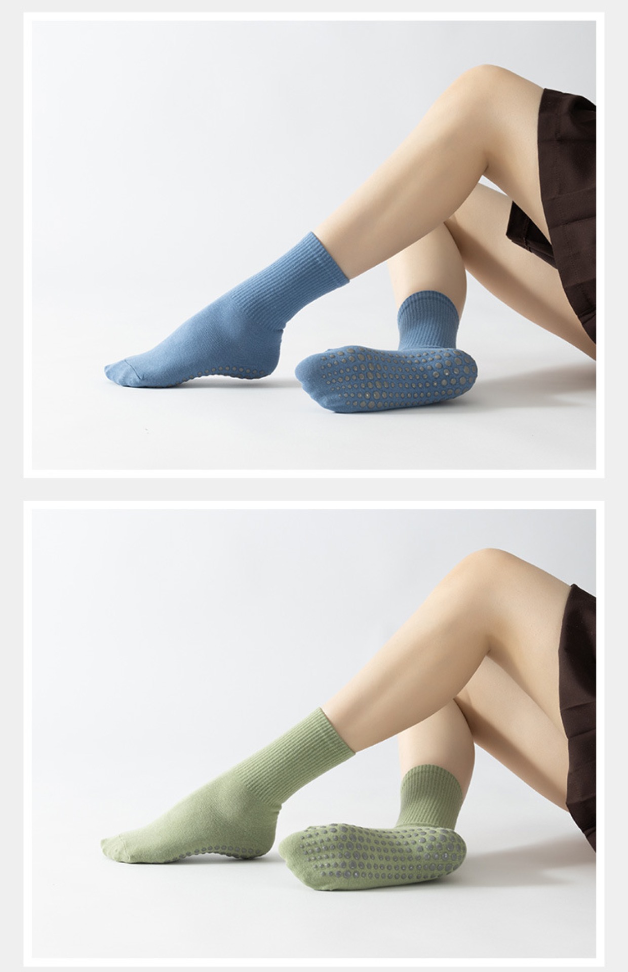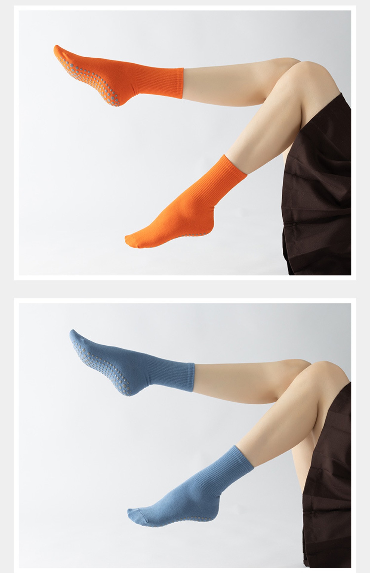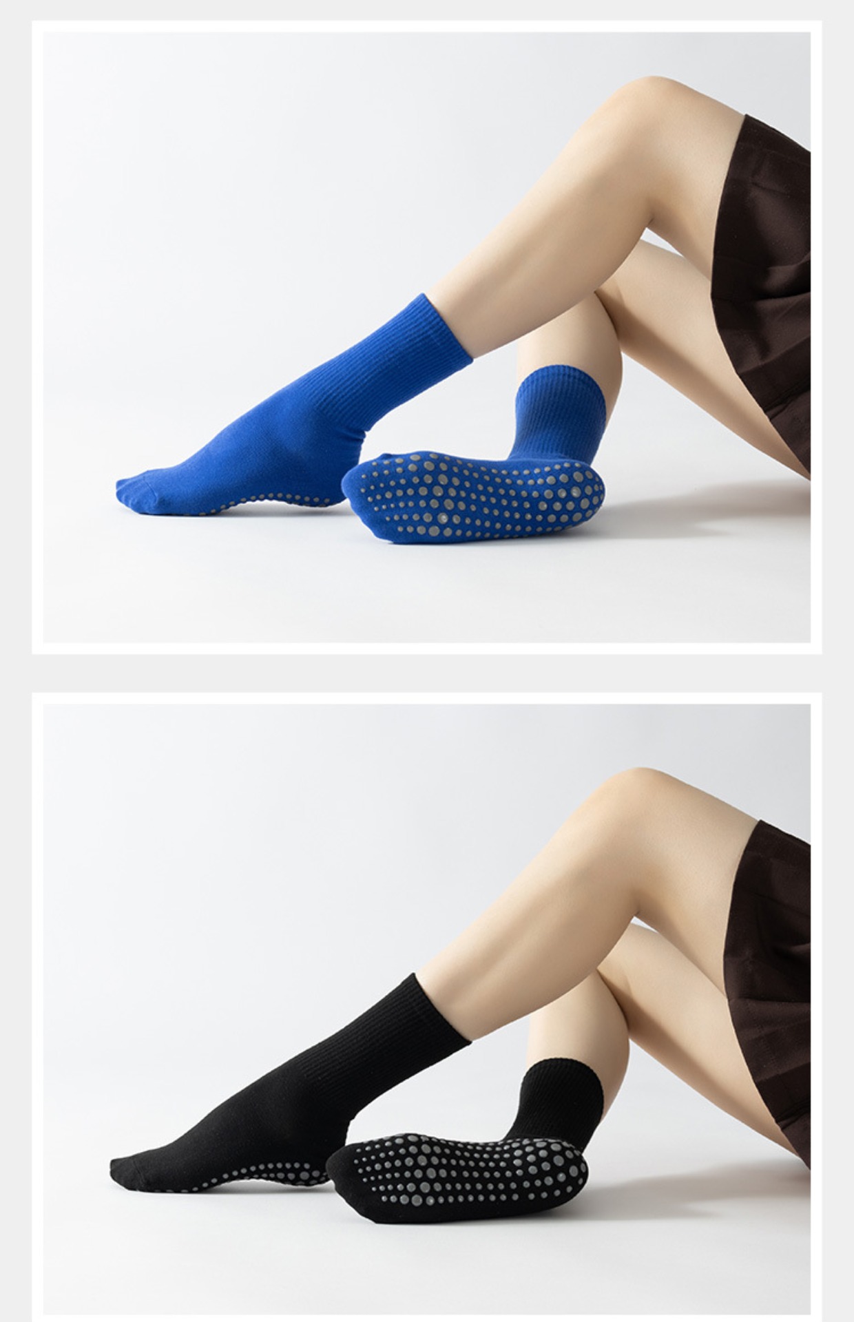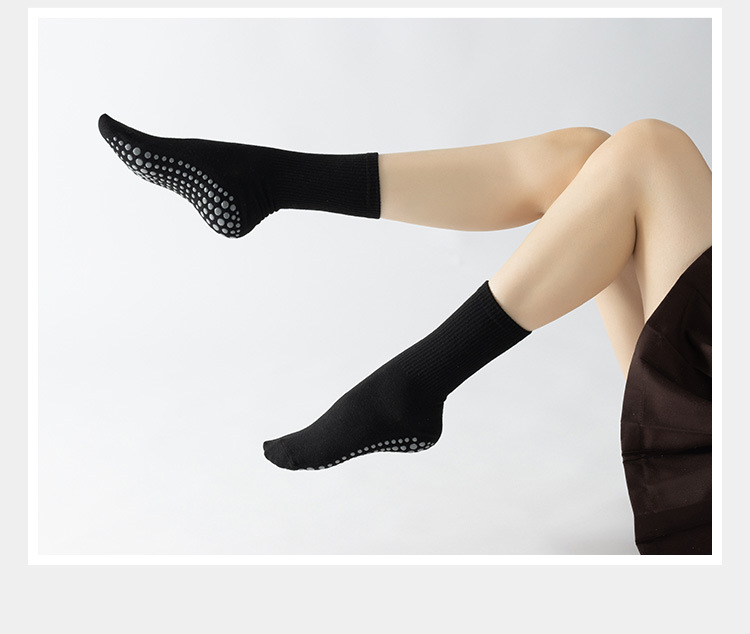 四季可穿新款防滑瑜珈襪長中筒小腿地板襪運動普拉提襪女純色襪子