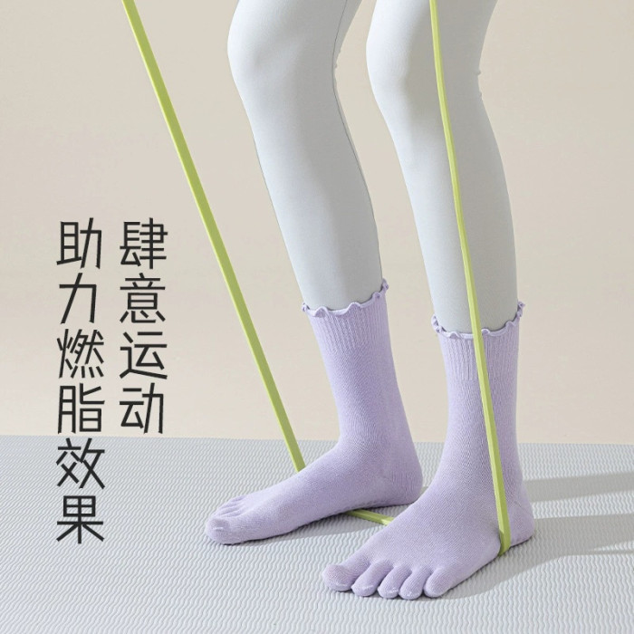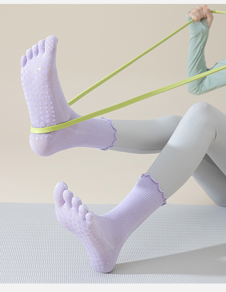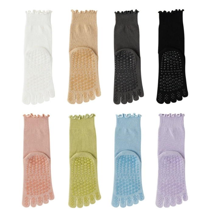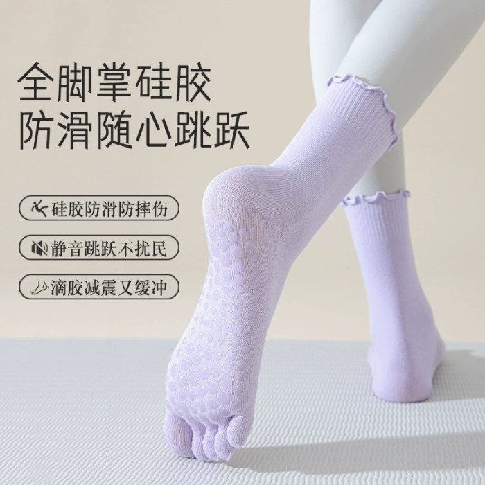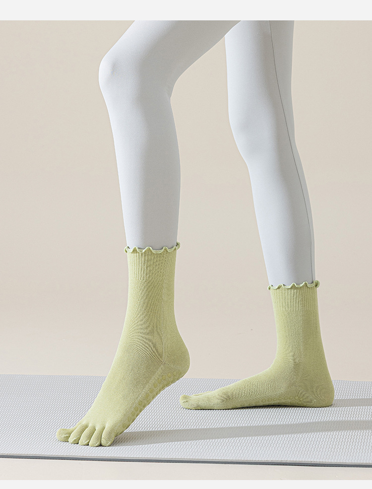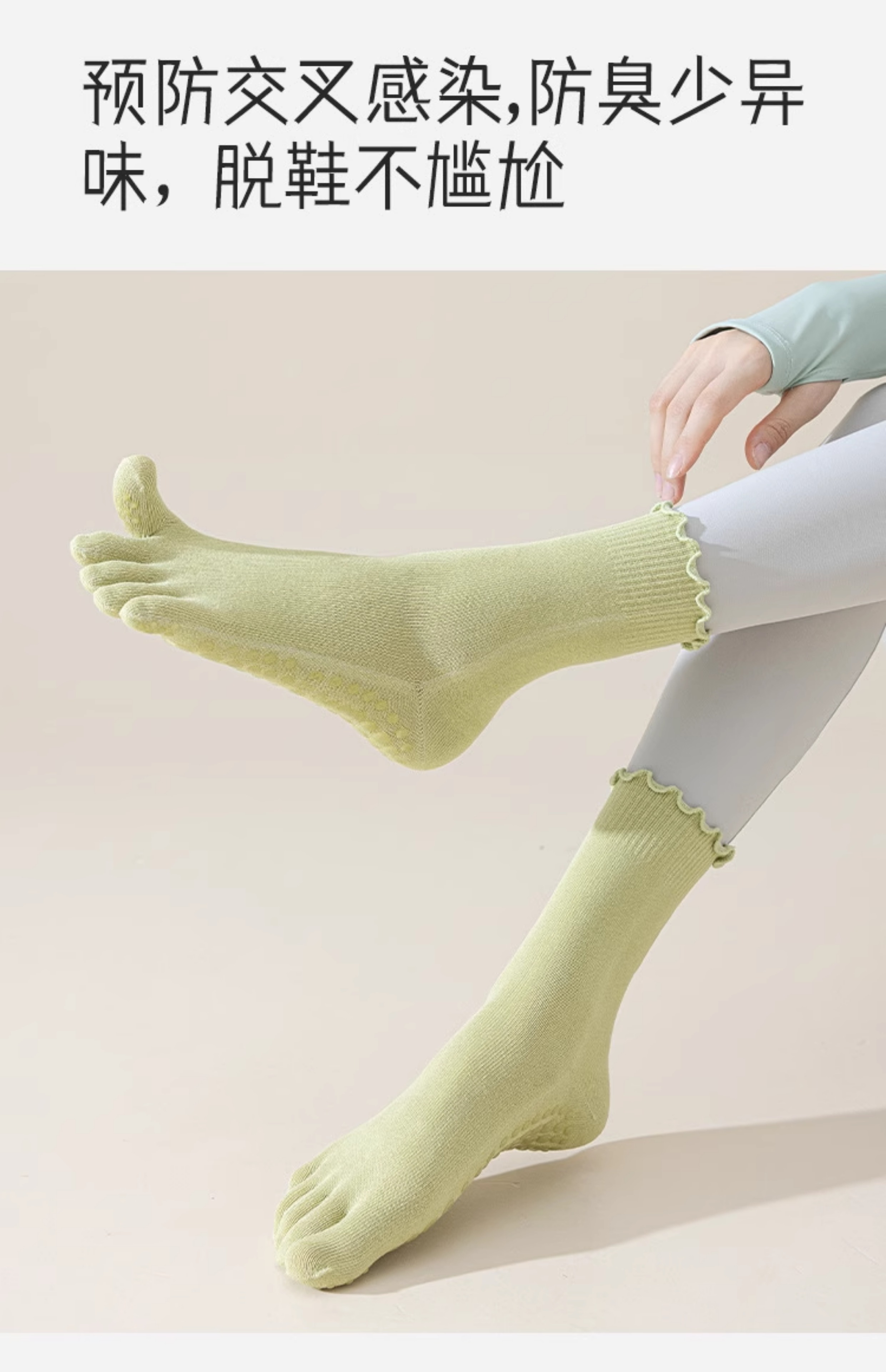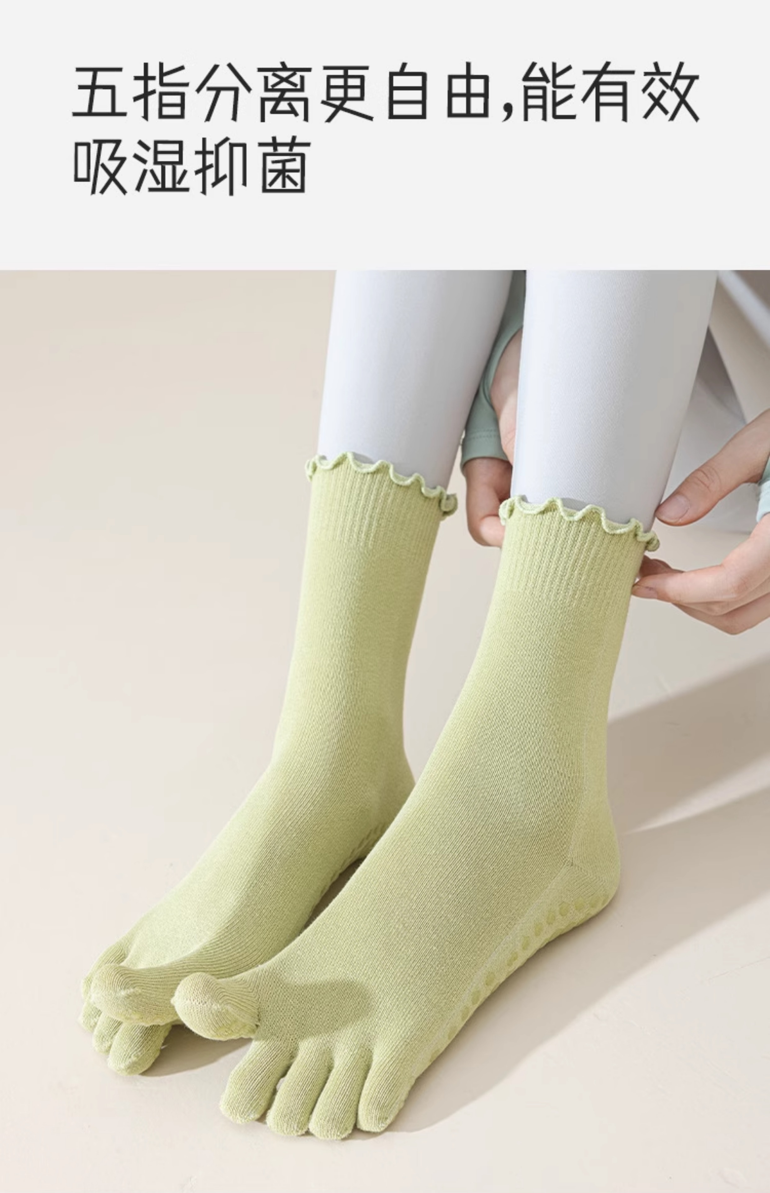 木耳邊瑜珈襪子防滑專業女五指襪健身防滑襪地板襪成人普拉提襪子