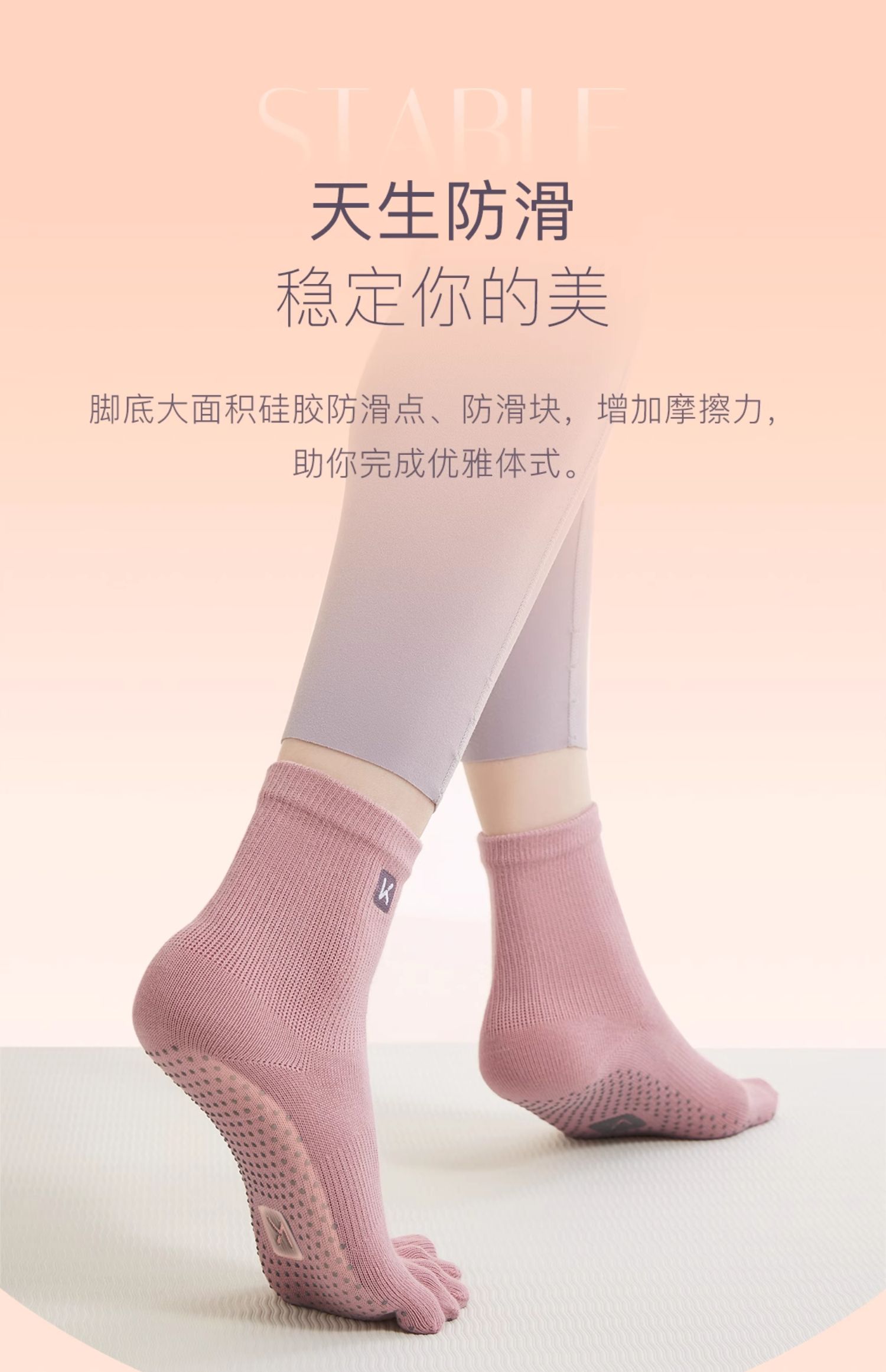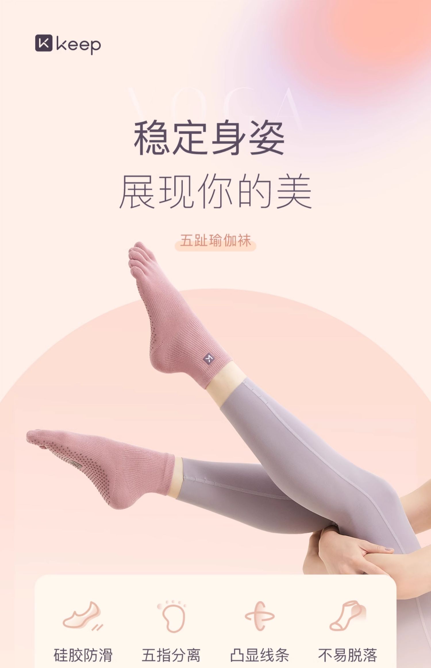 Keep瑜珈襪女防滑專業冬季運動五指襪健身襪普拉提襪子居家運動襪