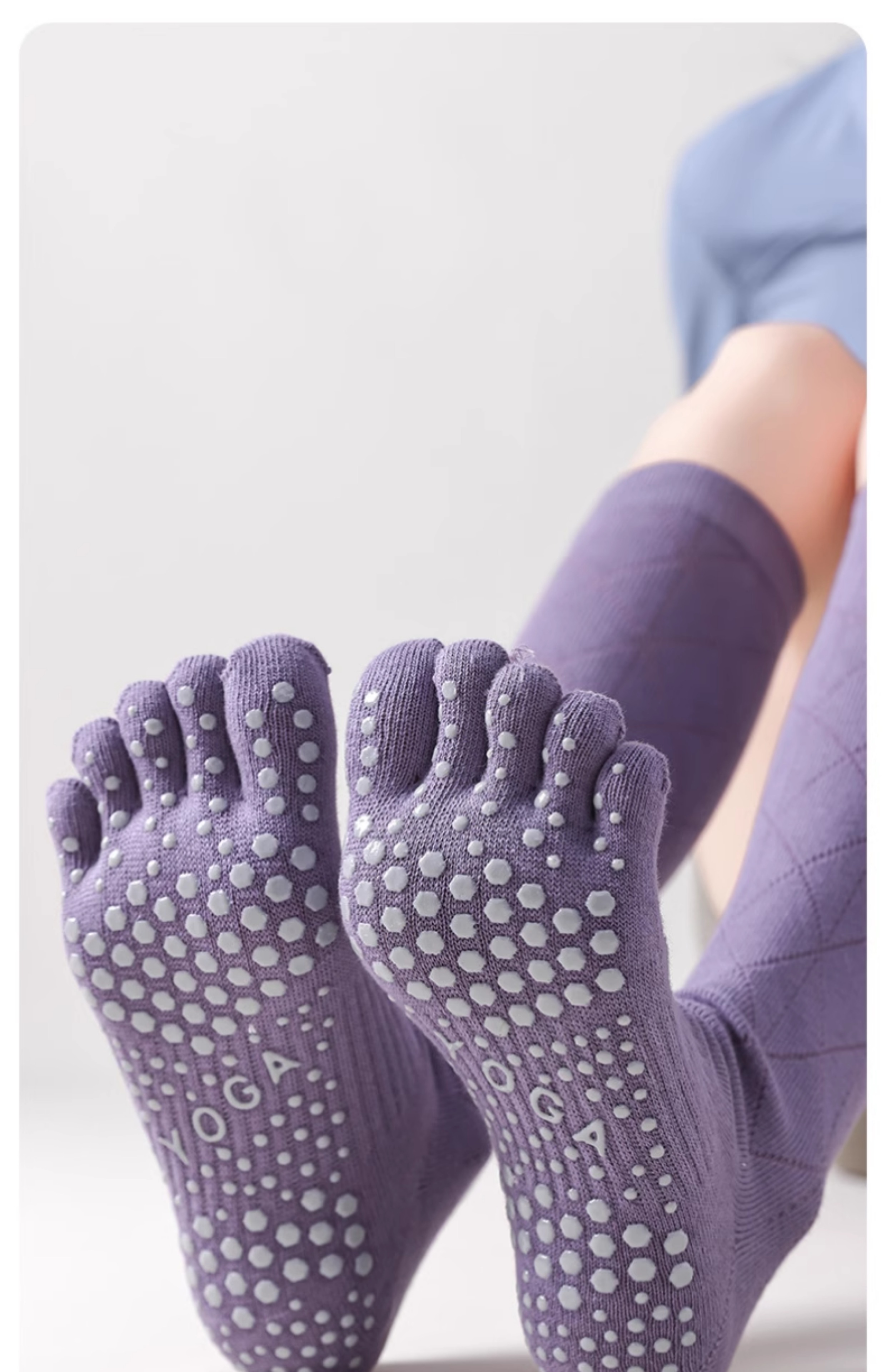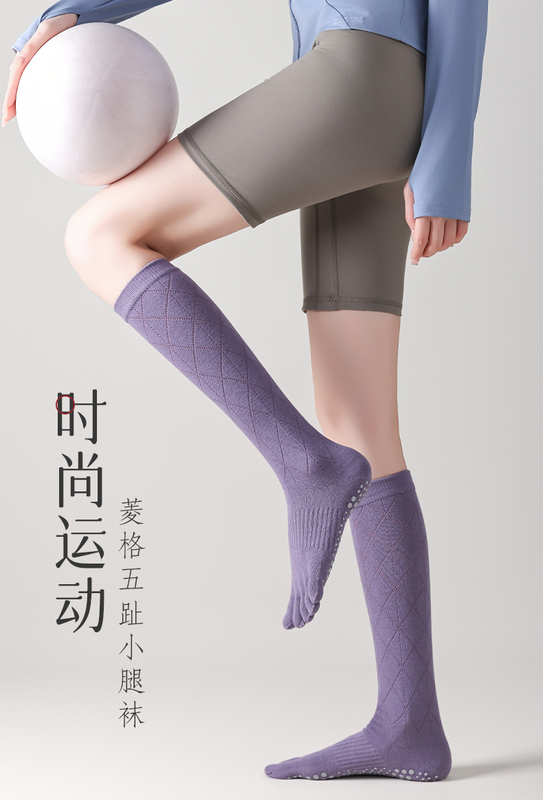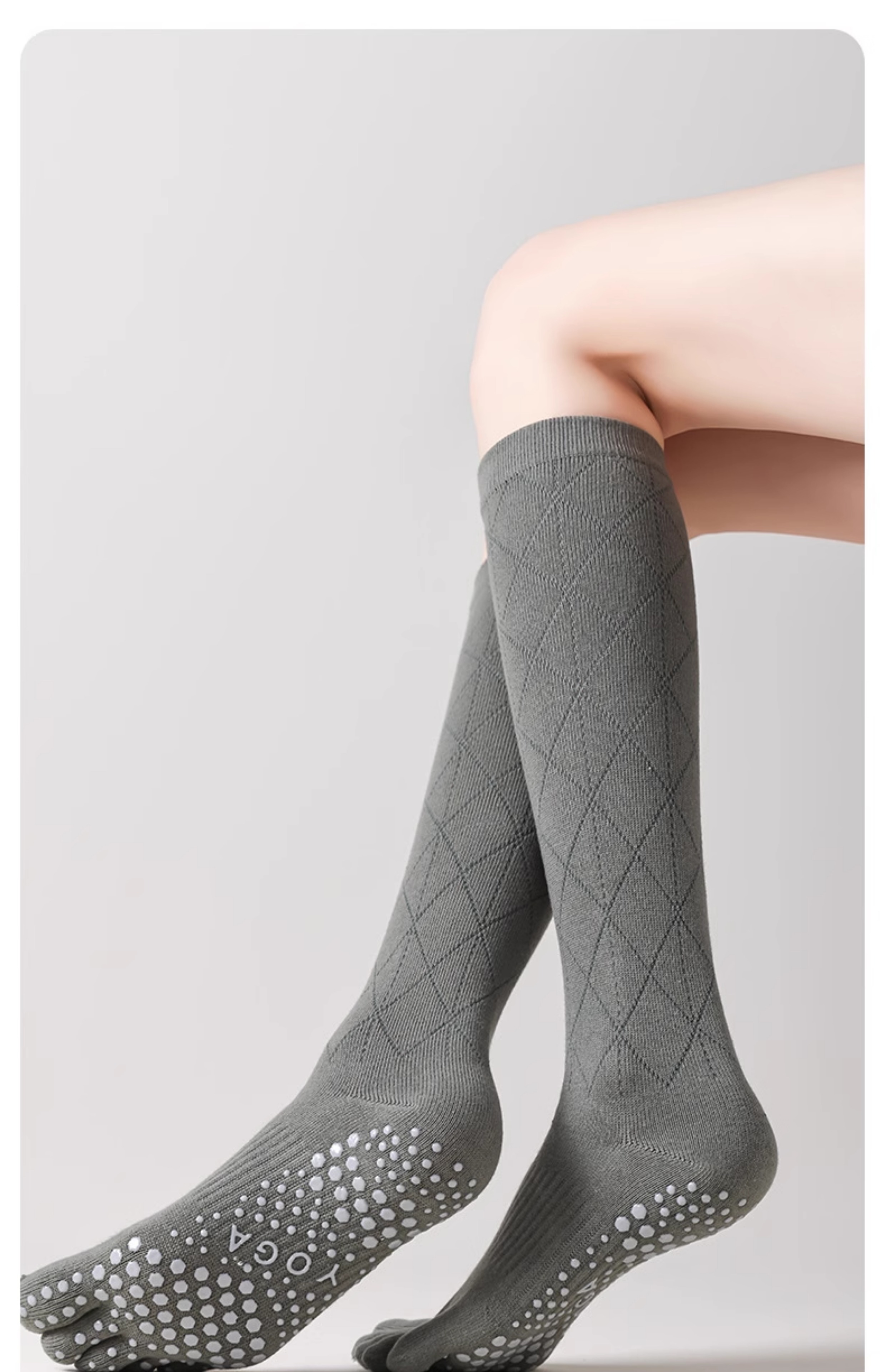 瑜珈襪子防滑專業女五指襪健身防滑襪地板襪成人長筒普拉提襪子