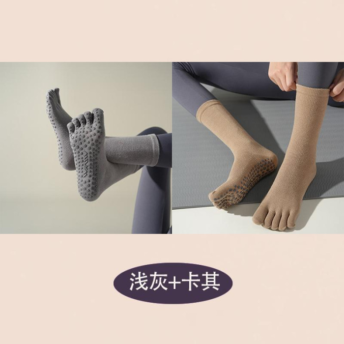 兩雙瑜珈中筒襪子WKUW高級健身運動防滑襪五指分趾跳繩跳操專用襪