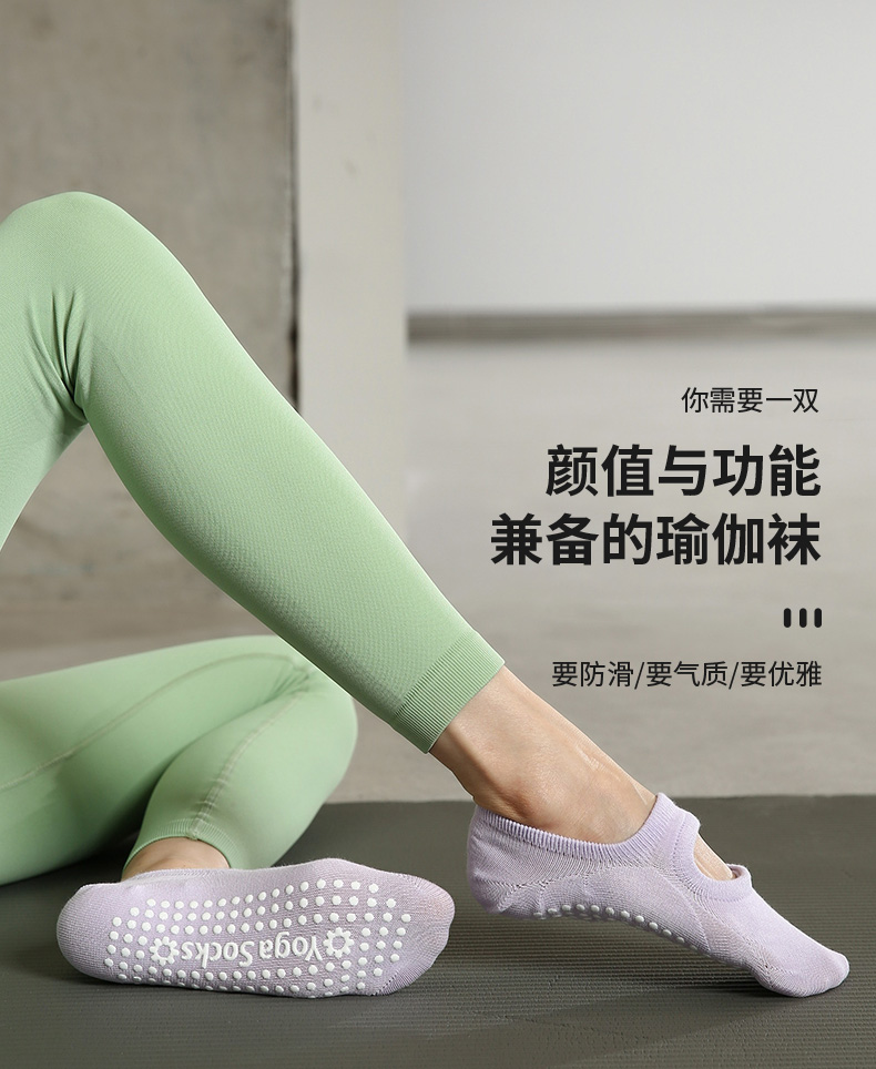 大碼瑜珈襪女【38-43碼】夏季防滑舞蹈露背運動健身房室內地板襪