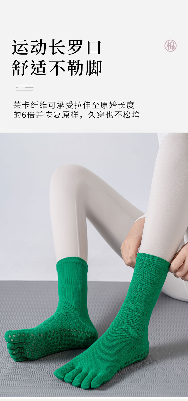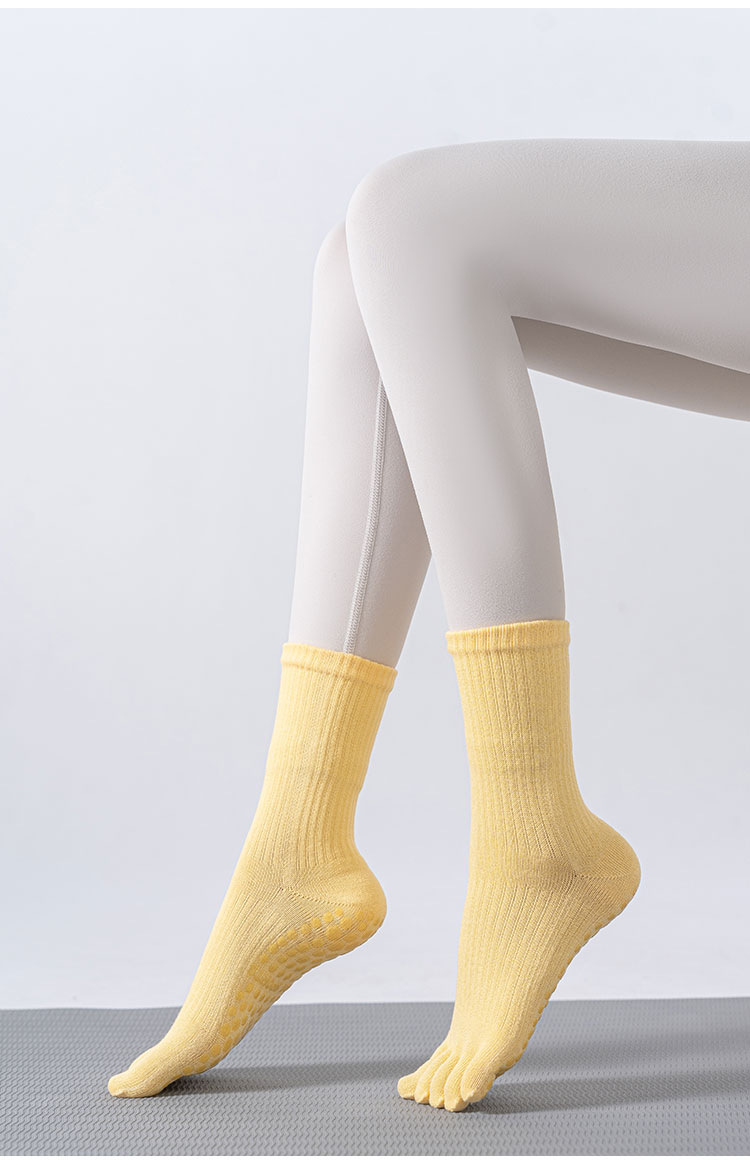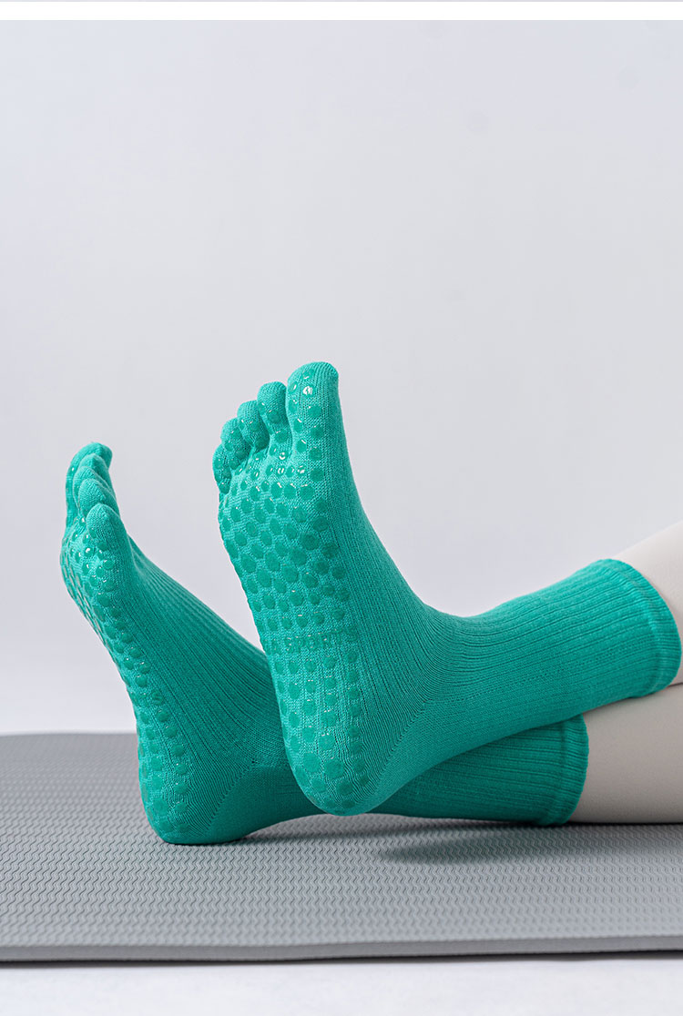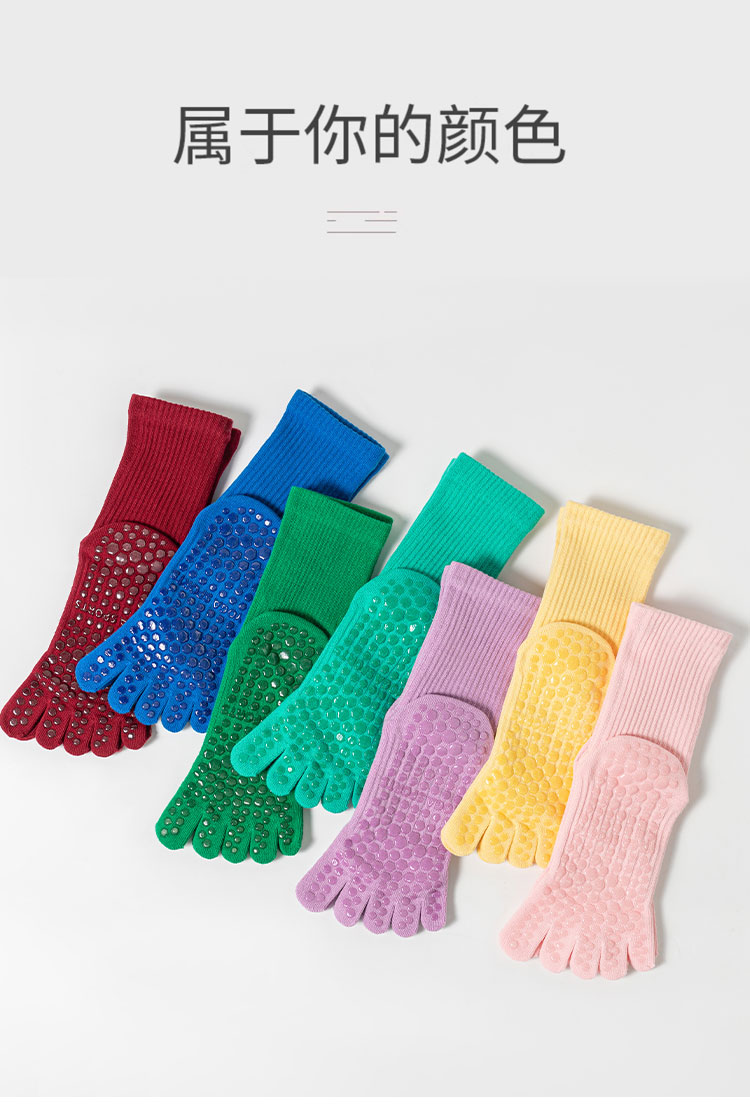 彩色五指瑜珈襪子防滑專業女普拉提運動健身跑步高中筒壓力防滑襪