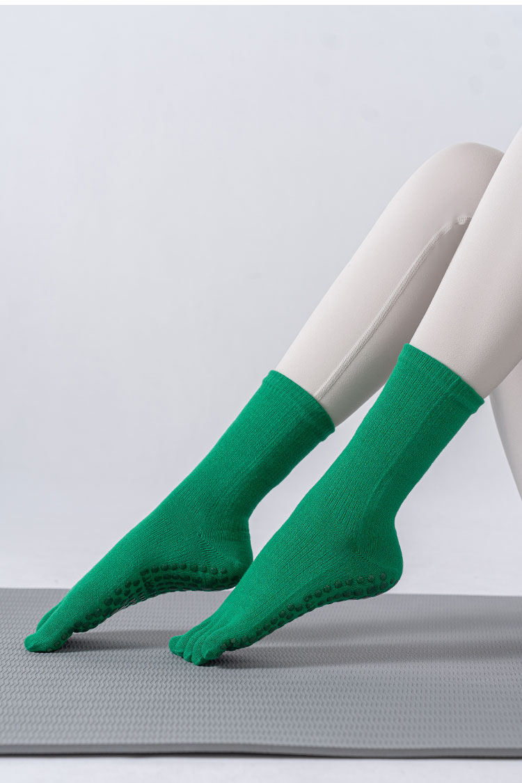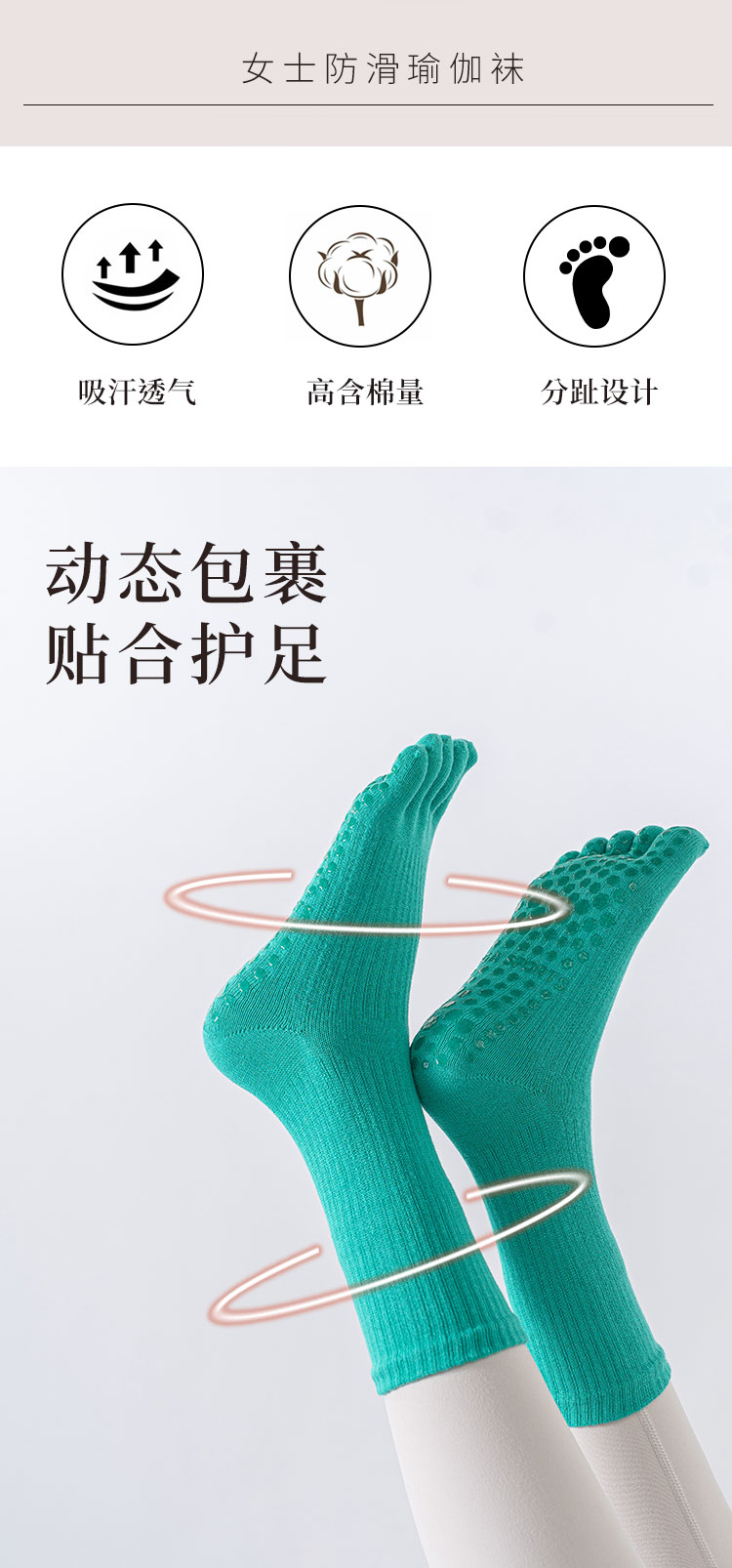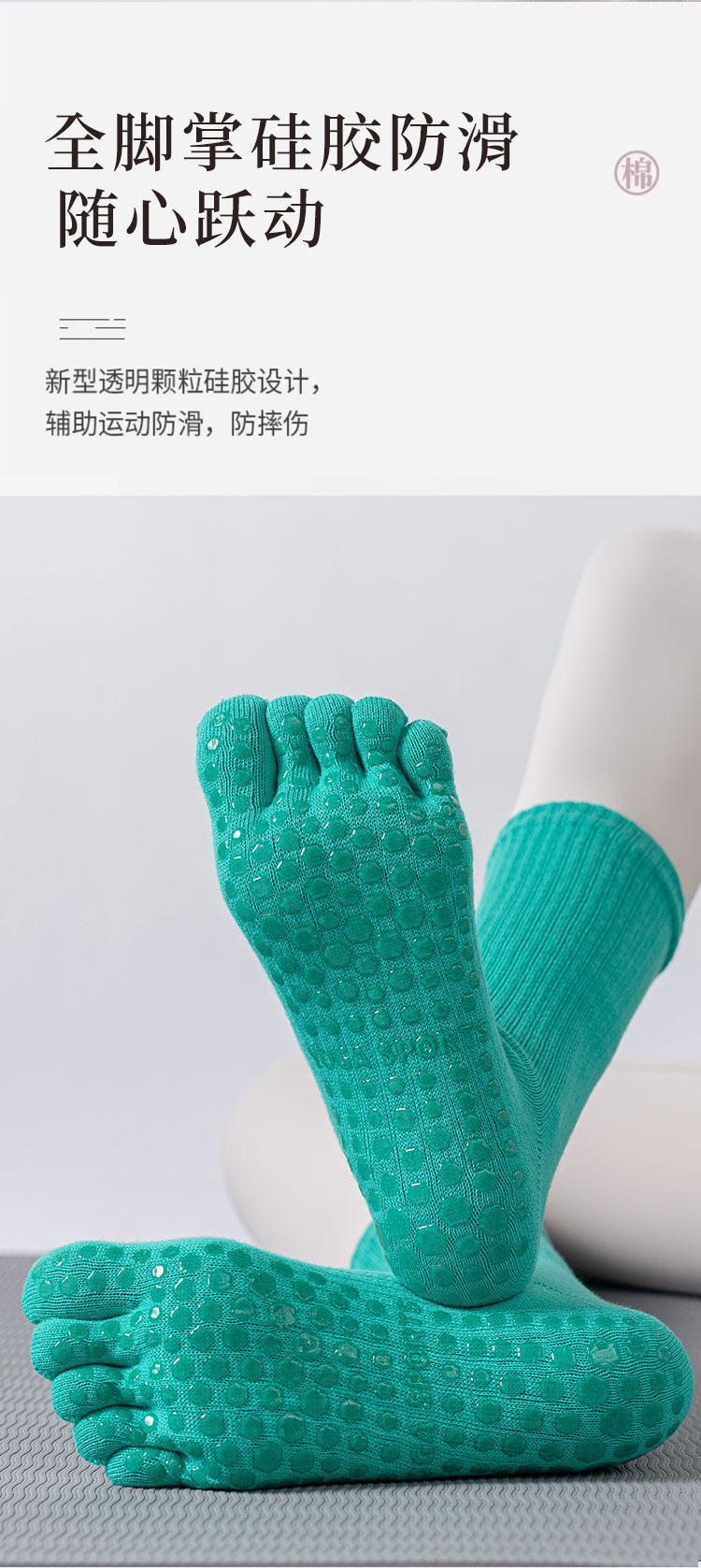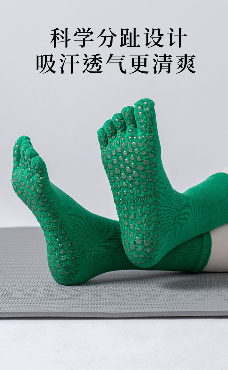 彩色五指瑜珈襪子防滑專業女普拉提運動健身跑步高中筒壓力防滑襪