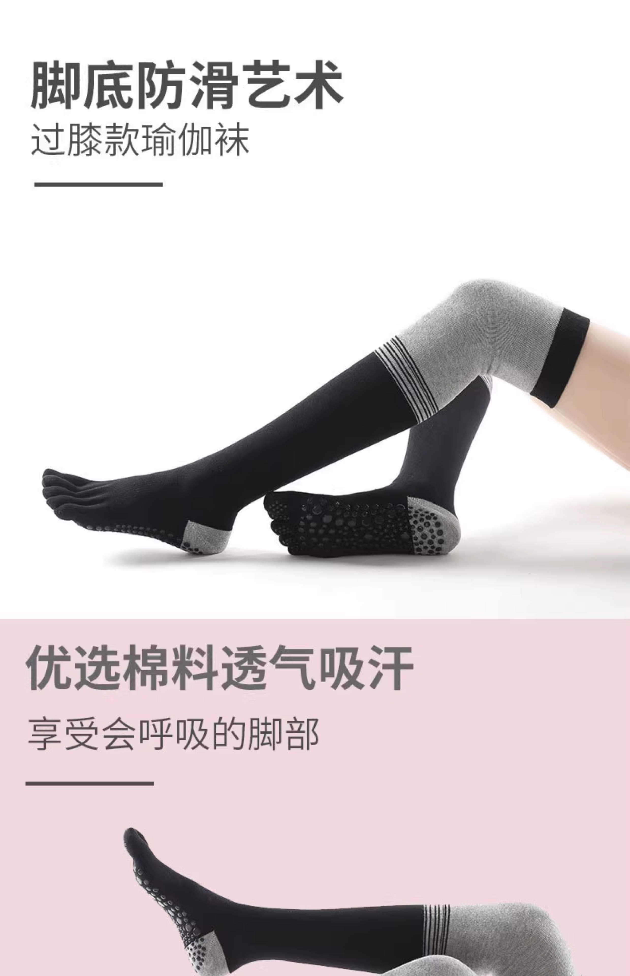 長筒瑜珈襪子防滑專業女五指襪普拉提襪子地板襪過膝瑜珈防滑襪