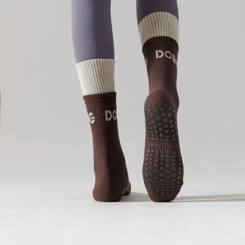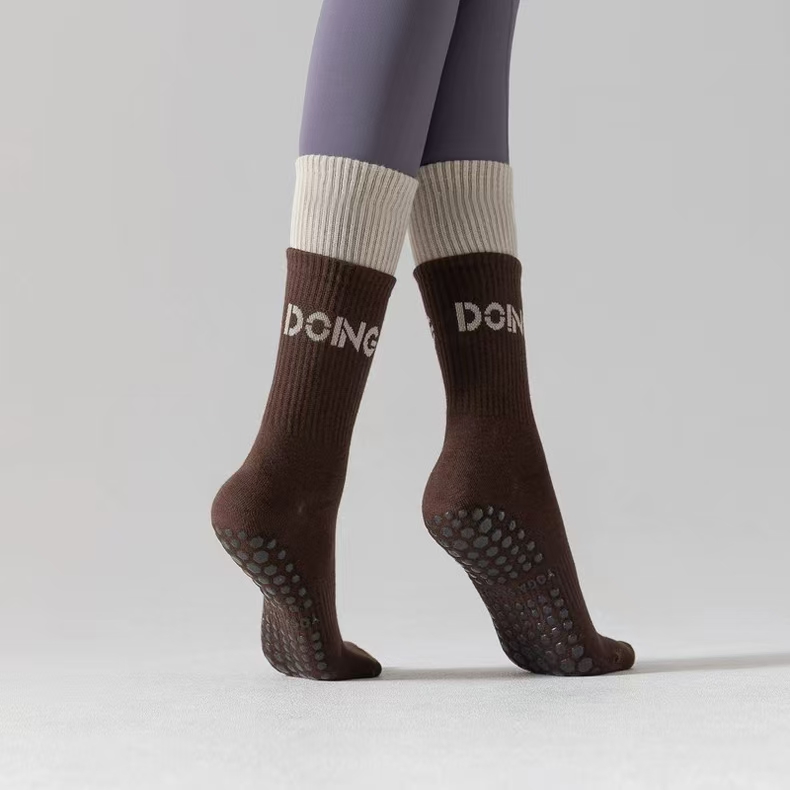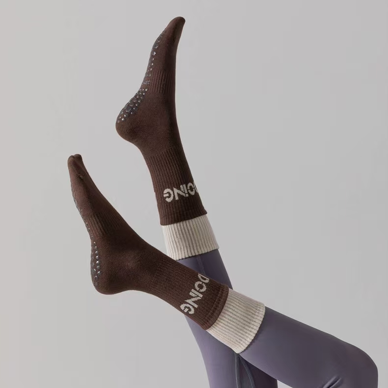 Citygirl矽膠防滑瑜珈襪子拼色中筒棉健身運動襪專業普拉提訓練襪