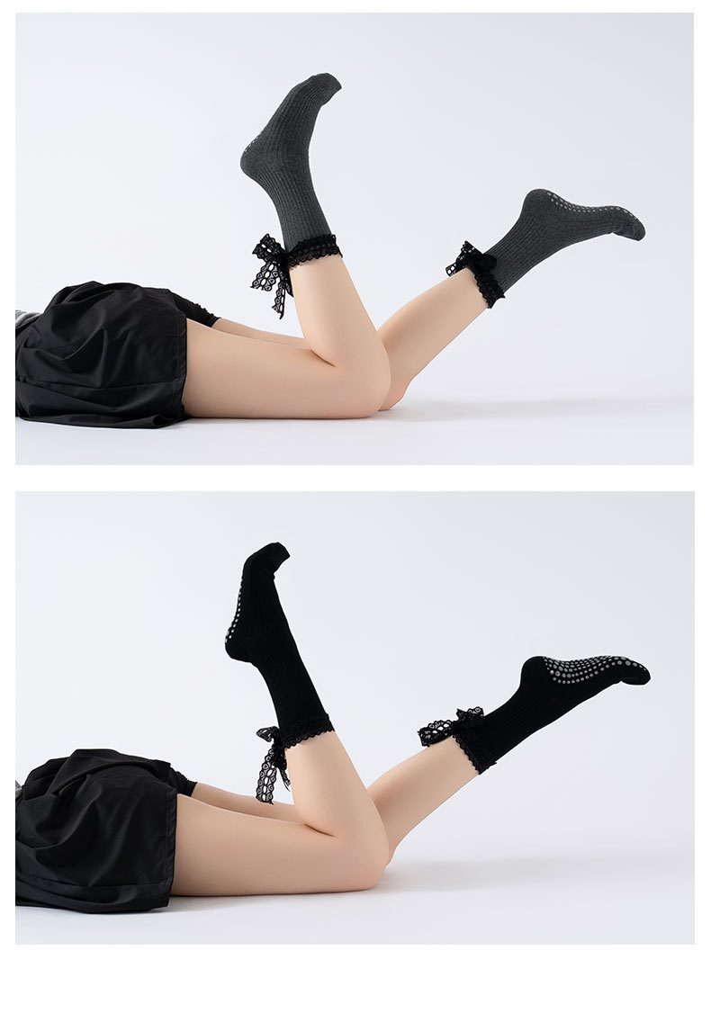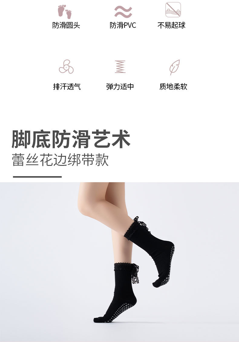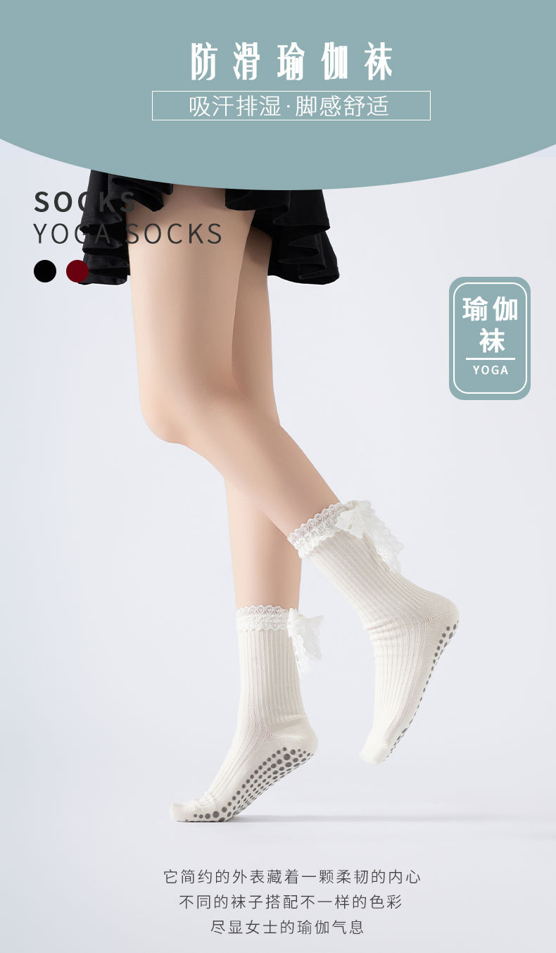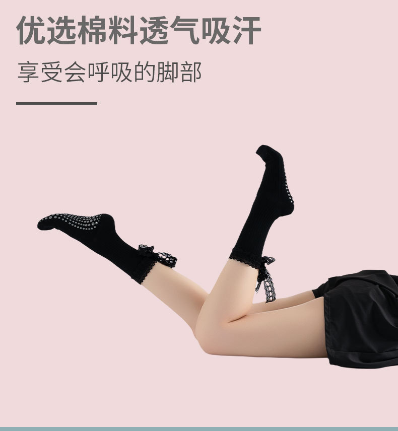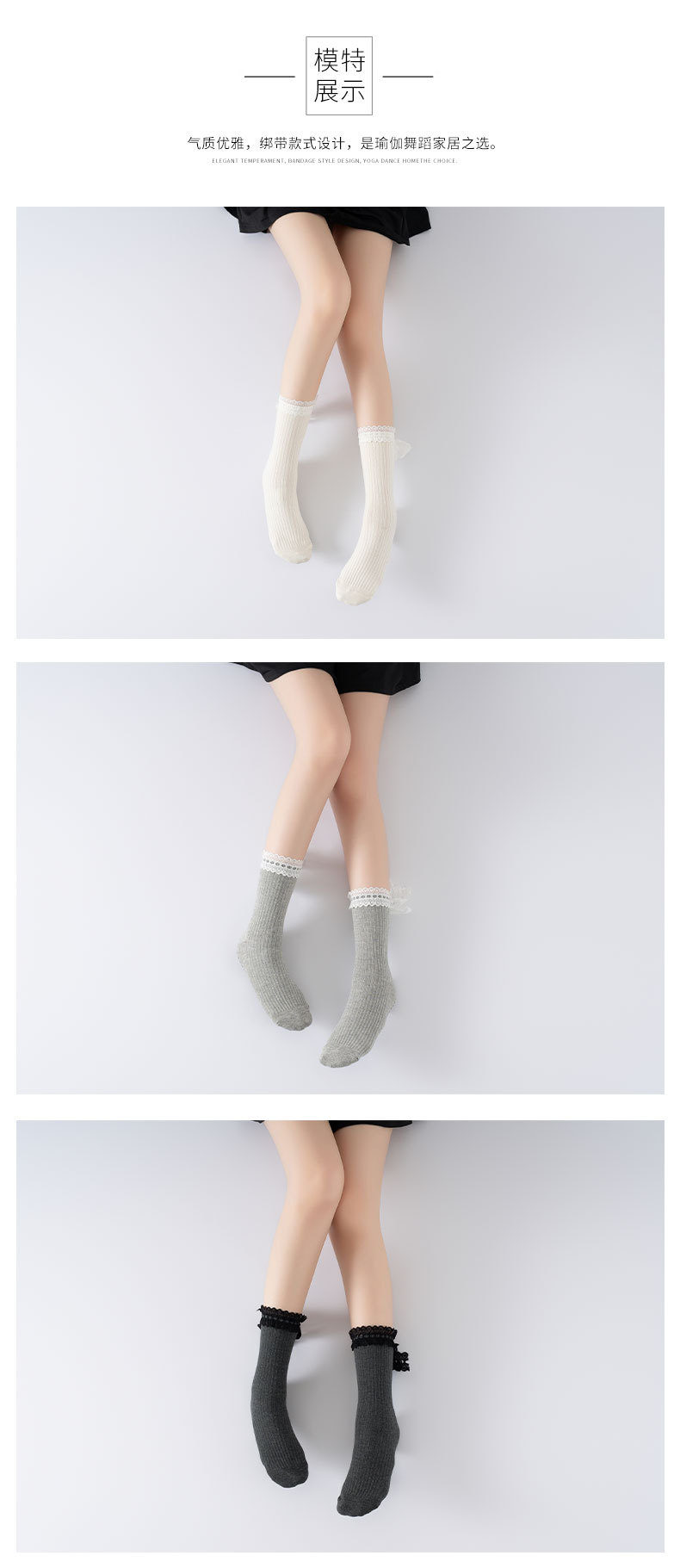 XY0859花色折釦蕾絲綁帶瑜珈襪防滑舞蹈襪百搭健身跳操蝴蝶結襪