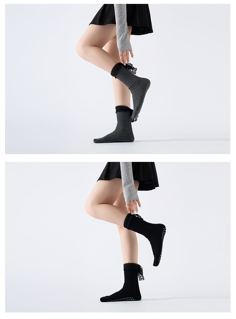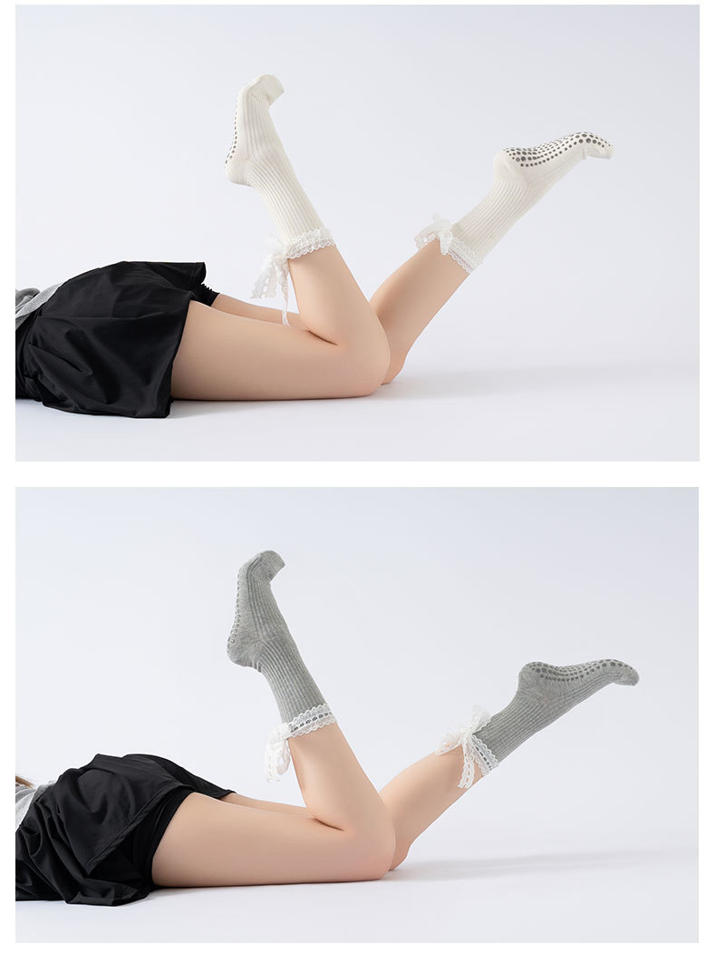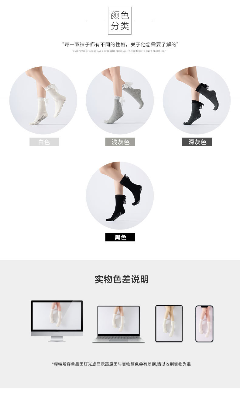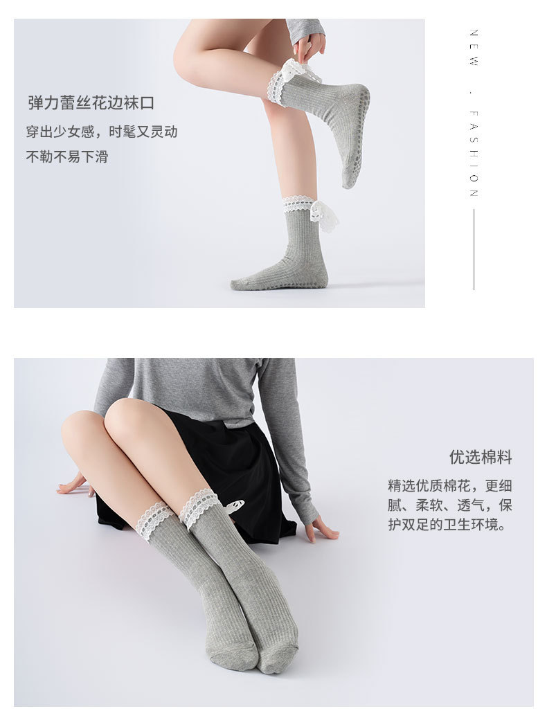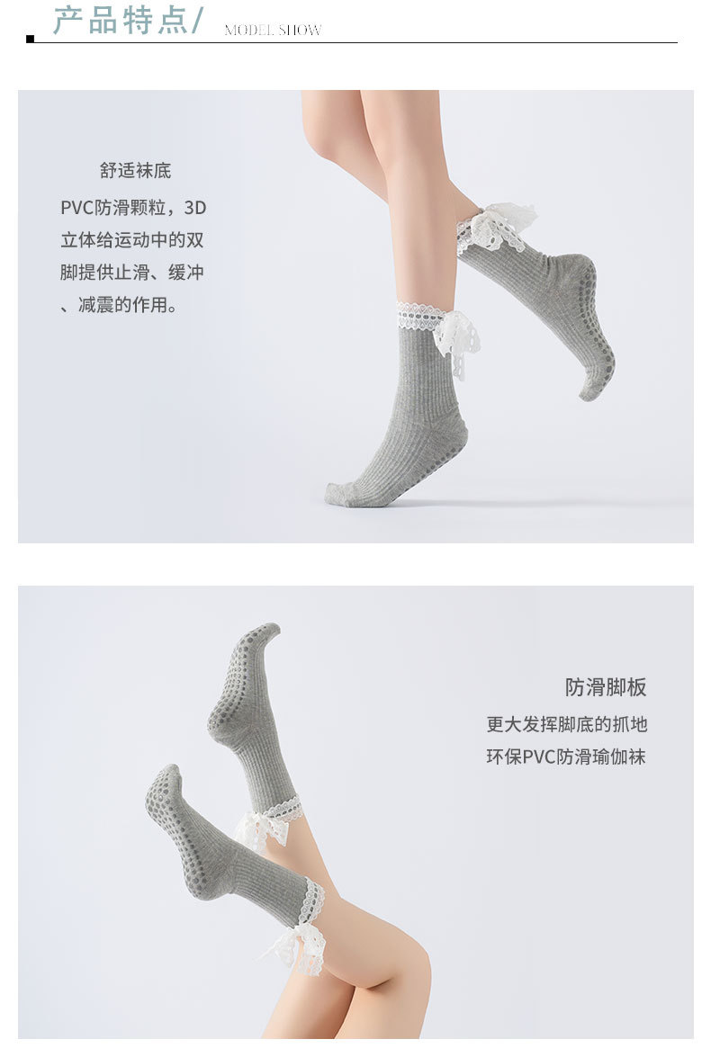 XY0859花色折釦蕾絲綁帶瑜珈襪防滑舞蹈襪百搭健身跳操蝴蝶結襪