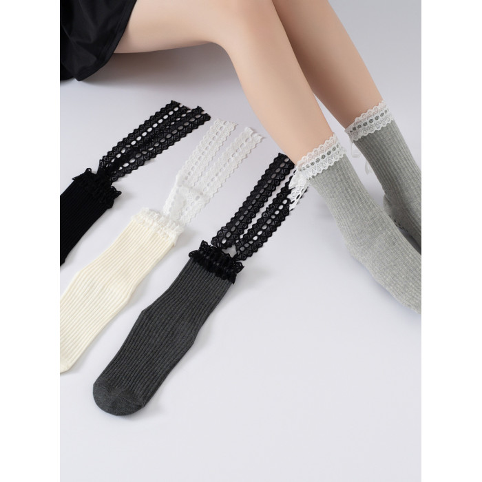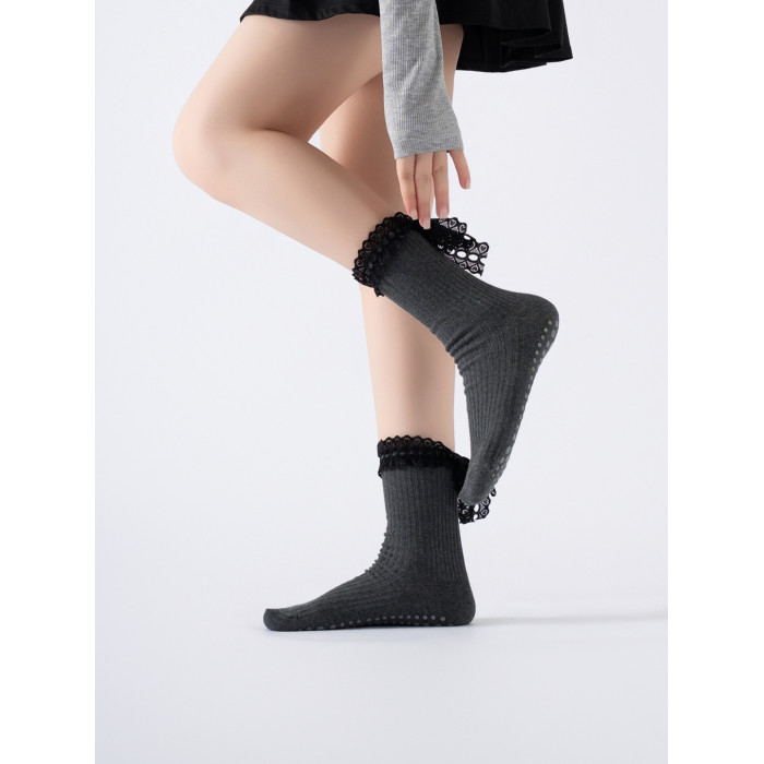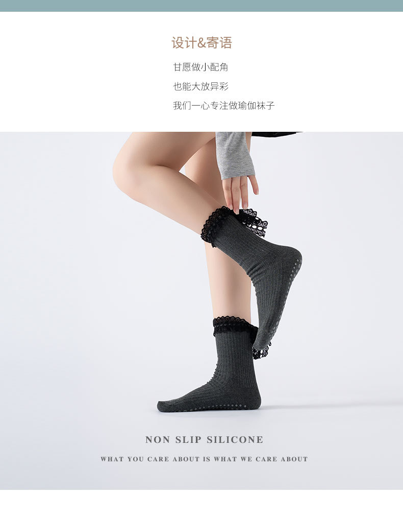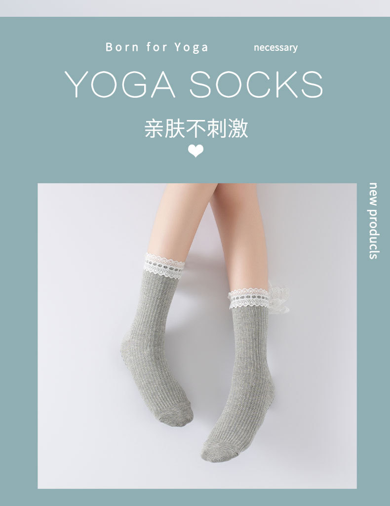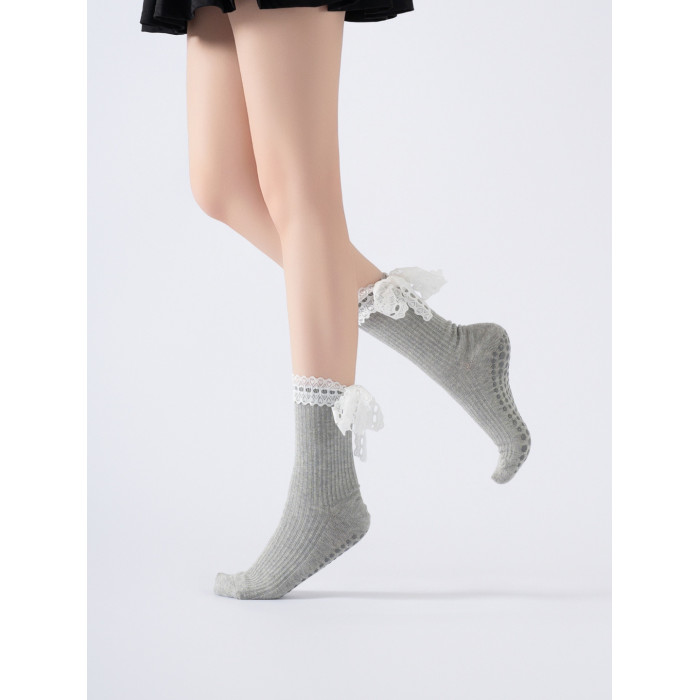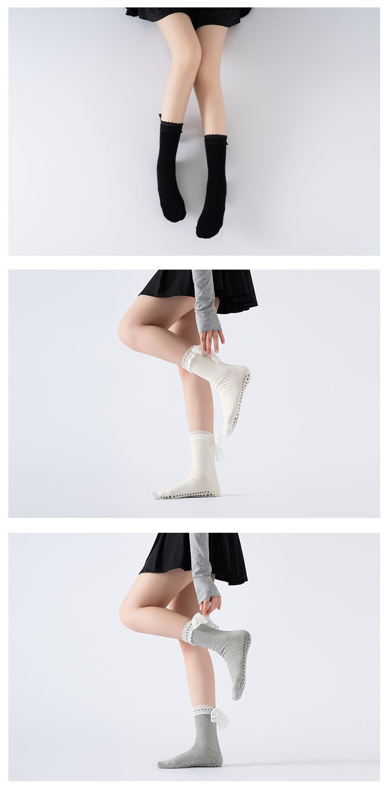 XY0859花色折釦蕾絲綁帶瑜珈襪防滑舞蹈襪百搭健身跳操蝴蝶結襪