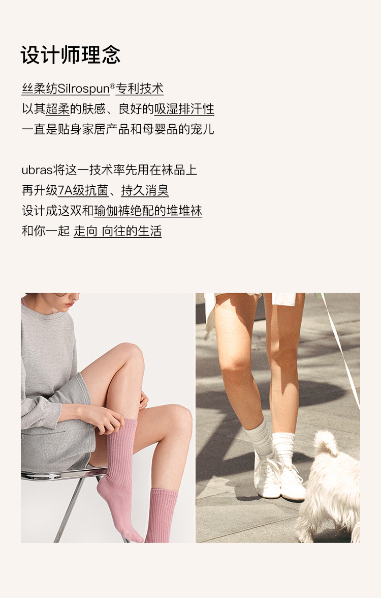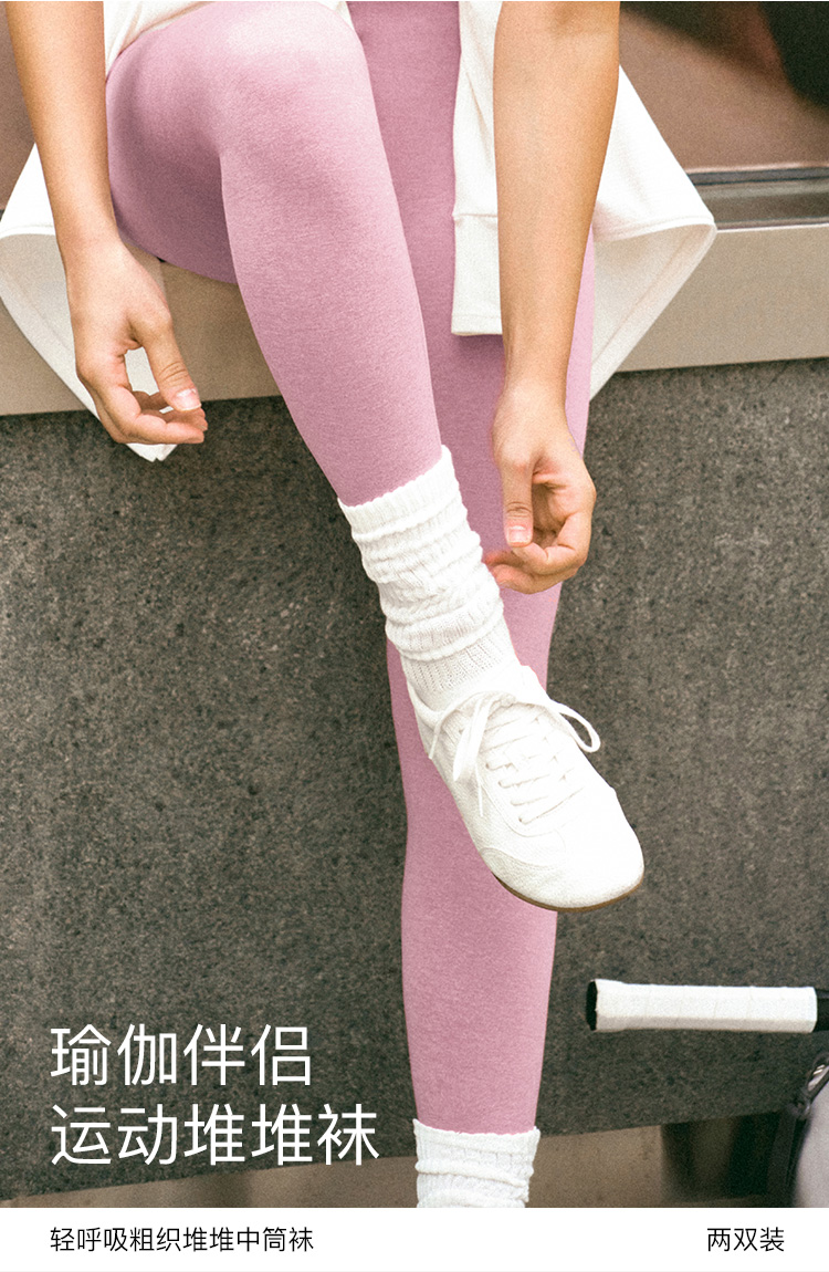 ubras輕呼吸粗織堆堆中筒襪瑜珈運動伴侶堆堆襪吸溼2雙新品