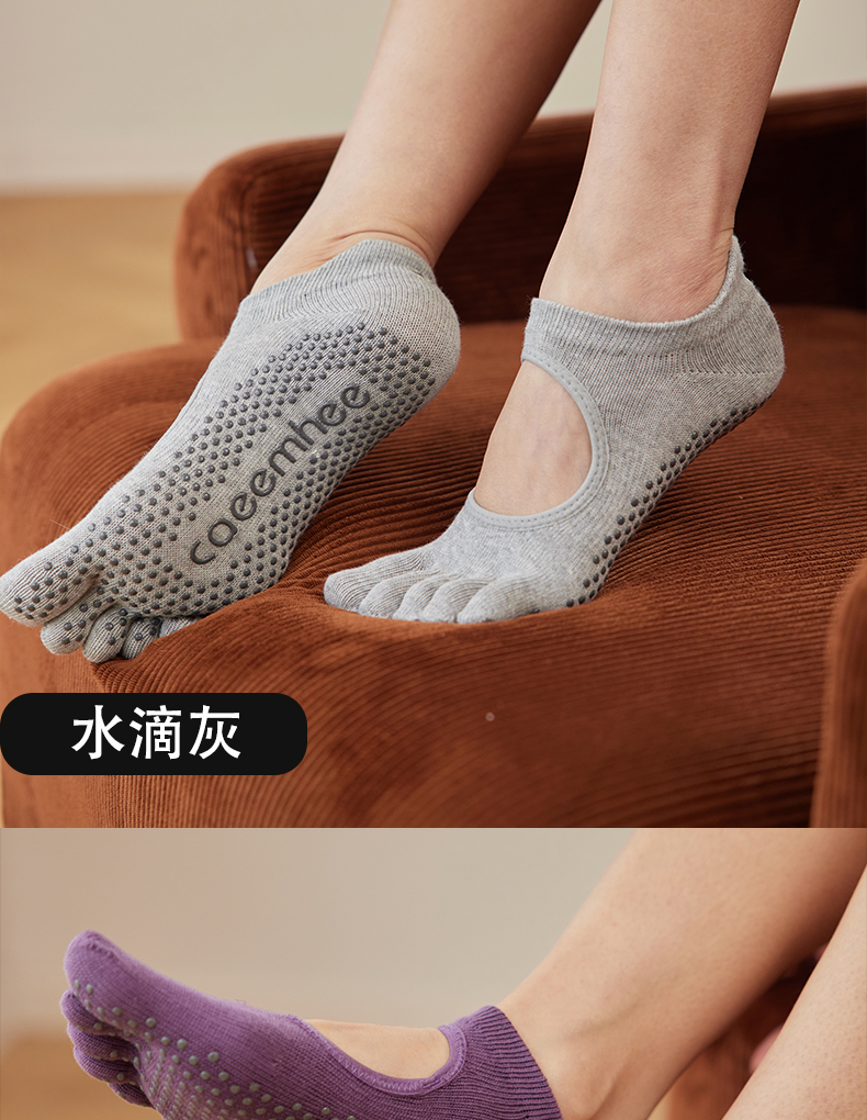 卡益專業健身五指瑜珈襪防滑女秋冬舞蹈普拉提襪子地板運動長棉襪