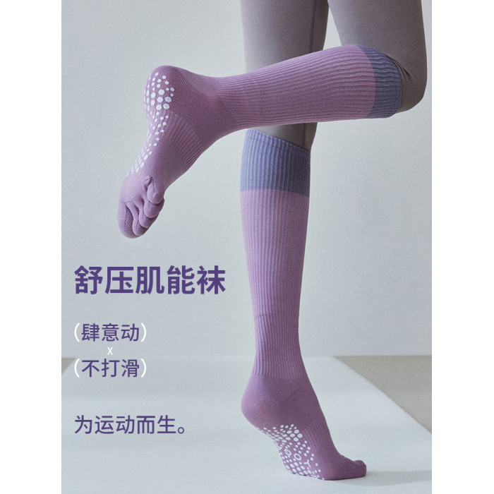 DCW瑜珈襪女防滑專業長筒五指襪健身跑步跳繩普拉提運動壓力腿襪