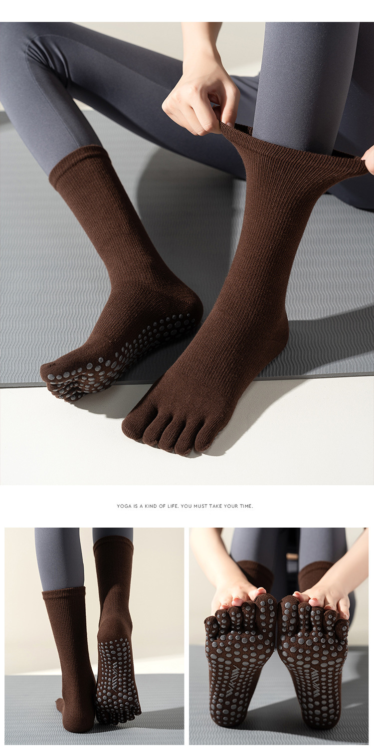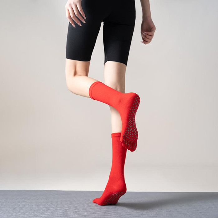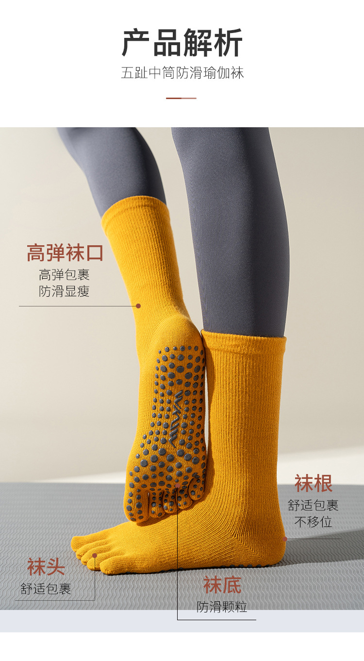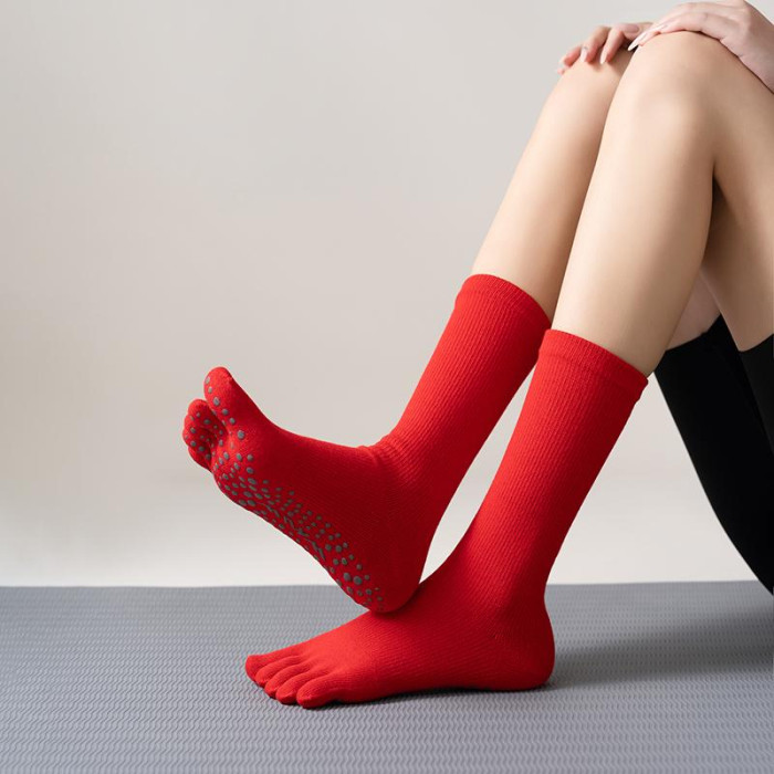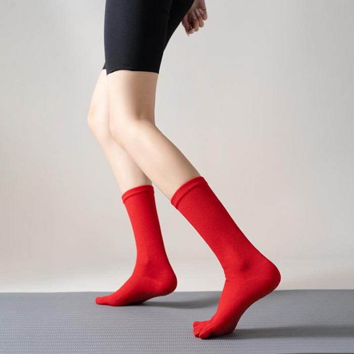 分尺碼中筒瑜珈襪子專業防滑五指襪女小腿普拉提健身房保暖舞蹈襪