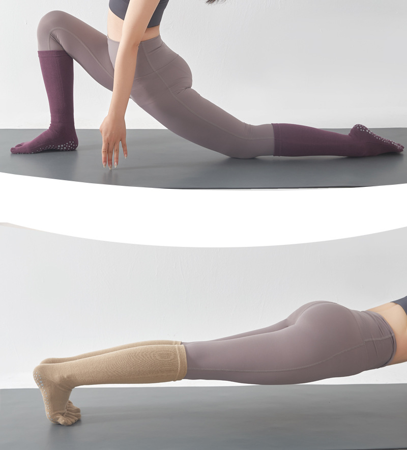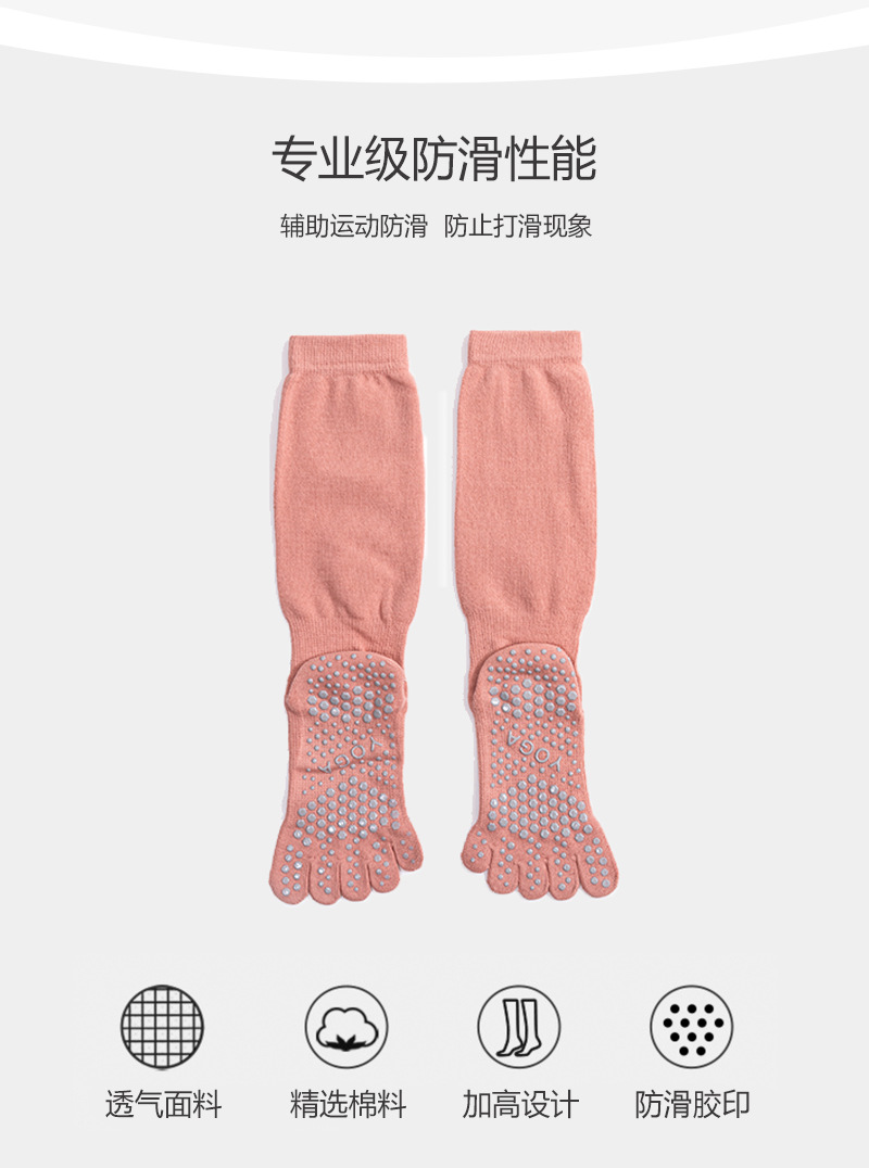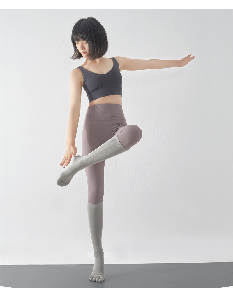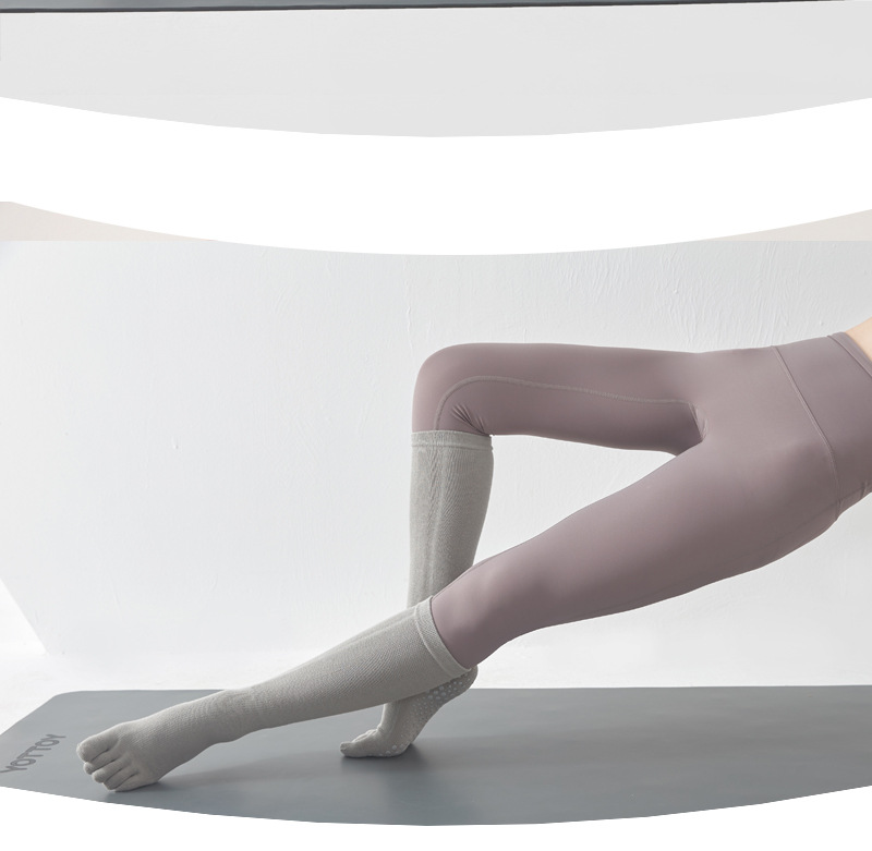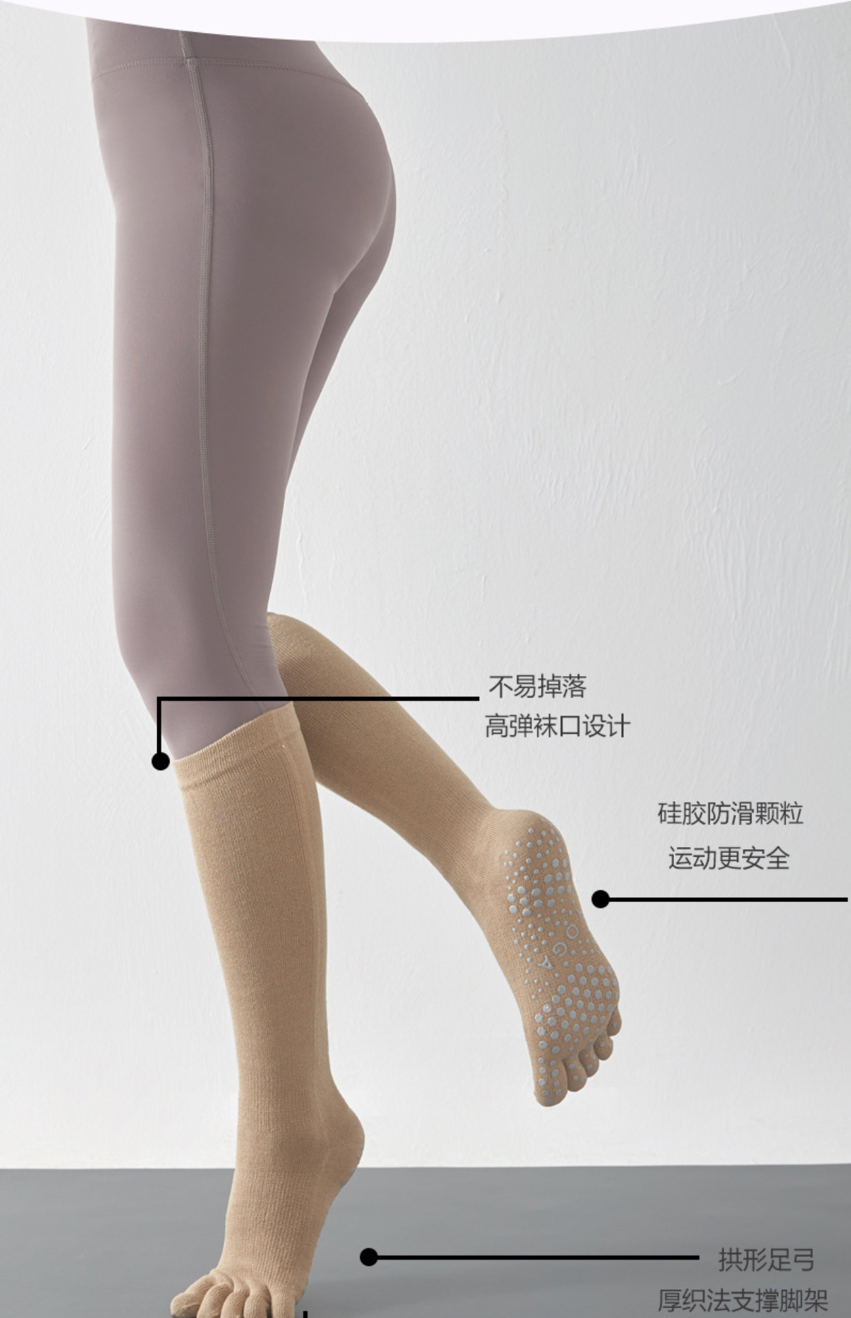 瑜珈襪子女長筒秋冬普拉提防滑點膠高檔純棉小腿膝蓋五指運動襪子