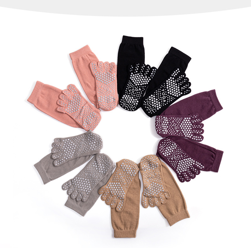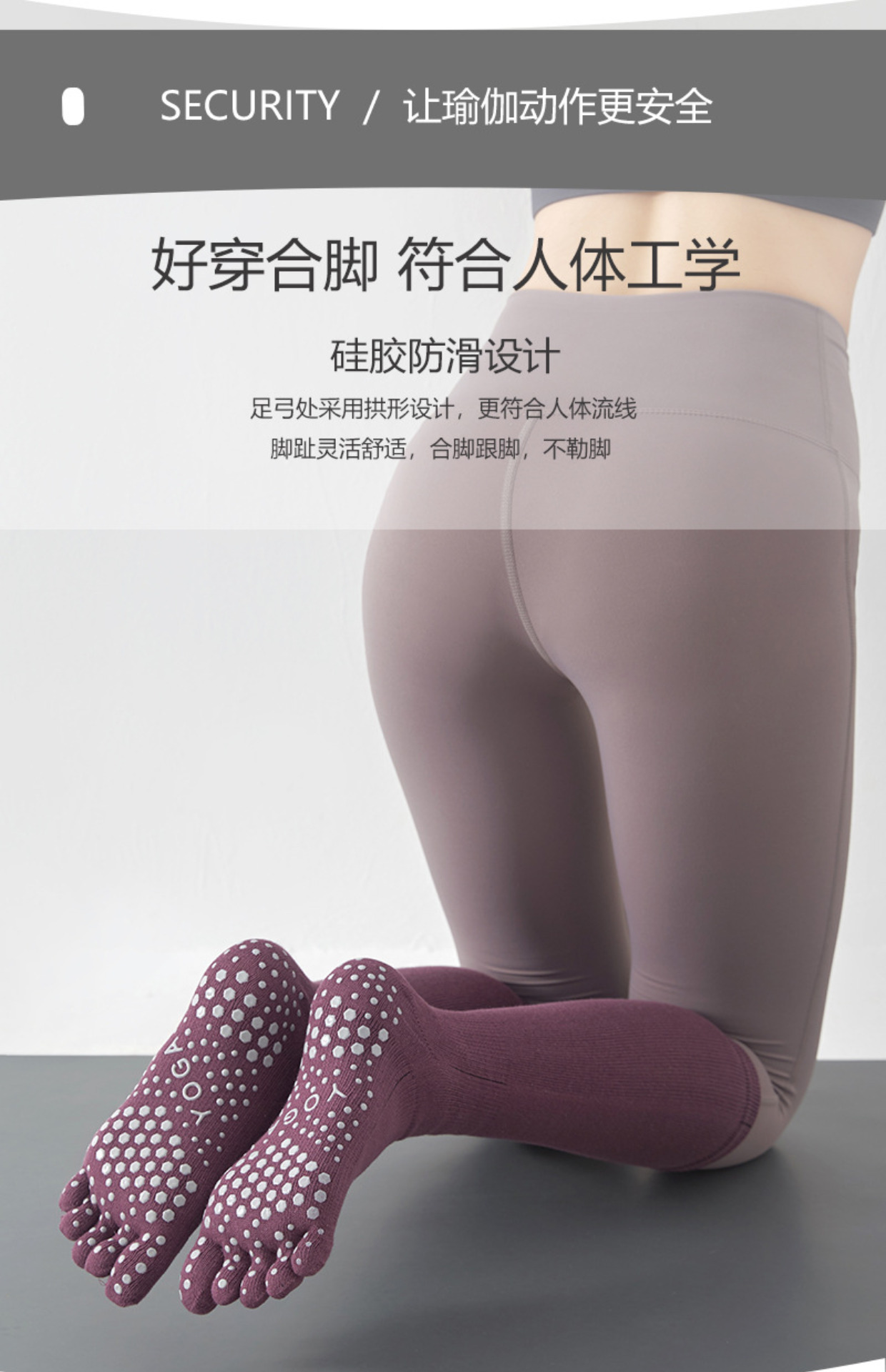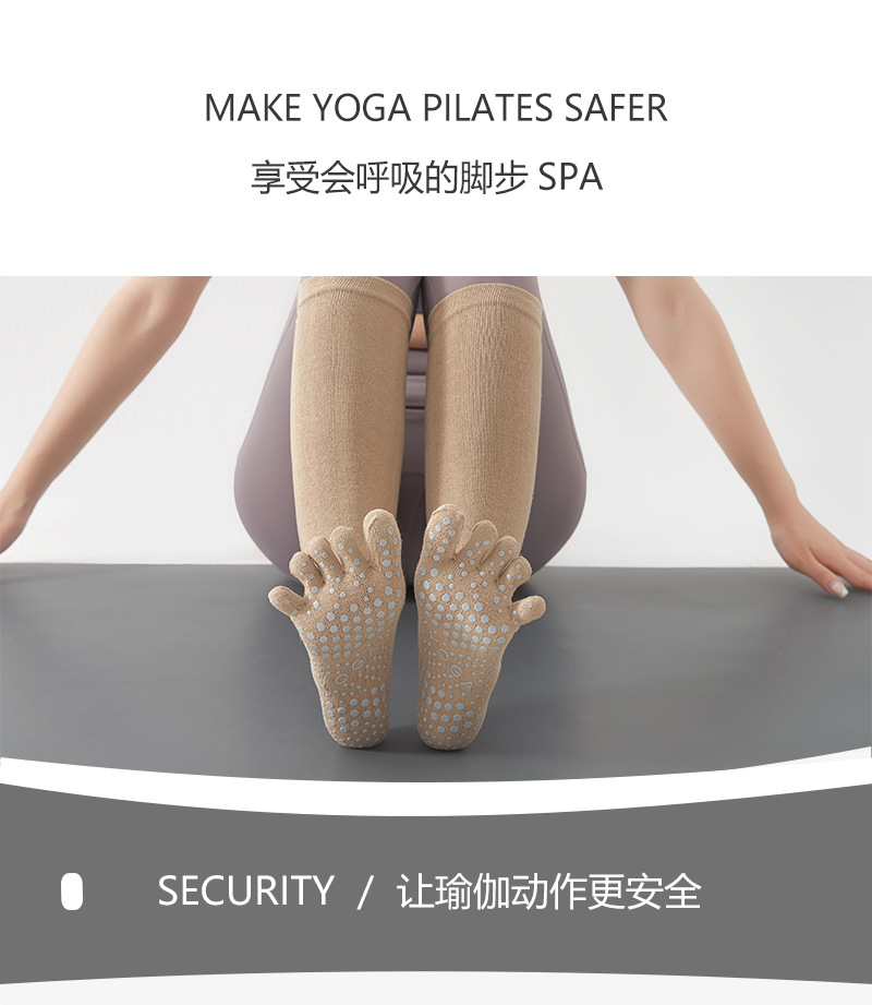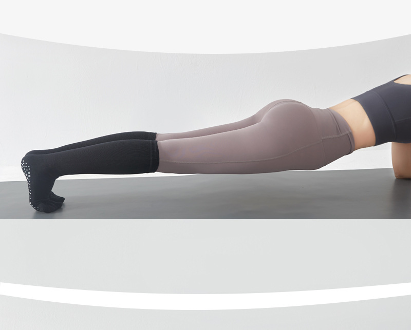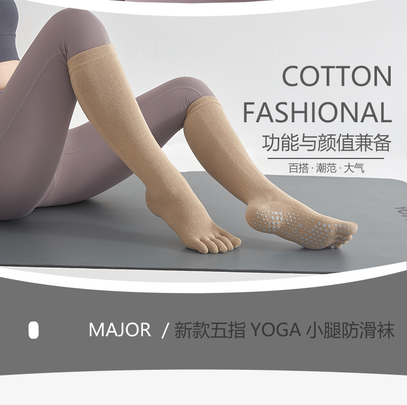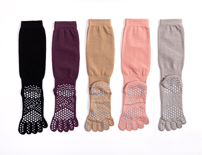瑜珈襪子女長筒秋冬普拉提防滑點膠高檔純棉小腿膝蓋五指運動襪子