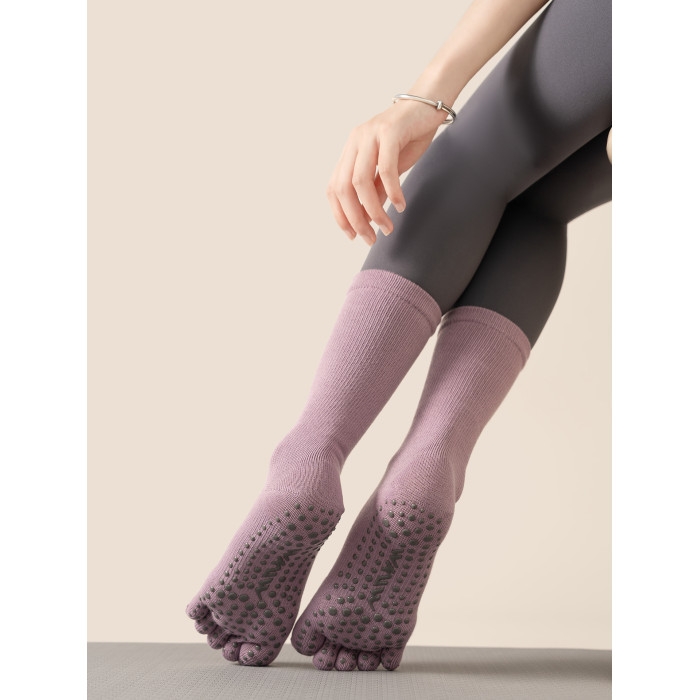 分碼精梳棉瑜珈襪子防滑專業女中筒普拉提秋冬專用健身運動五指襪