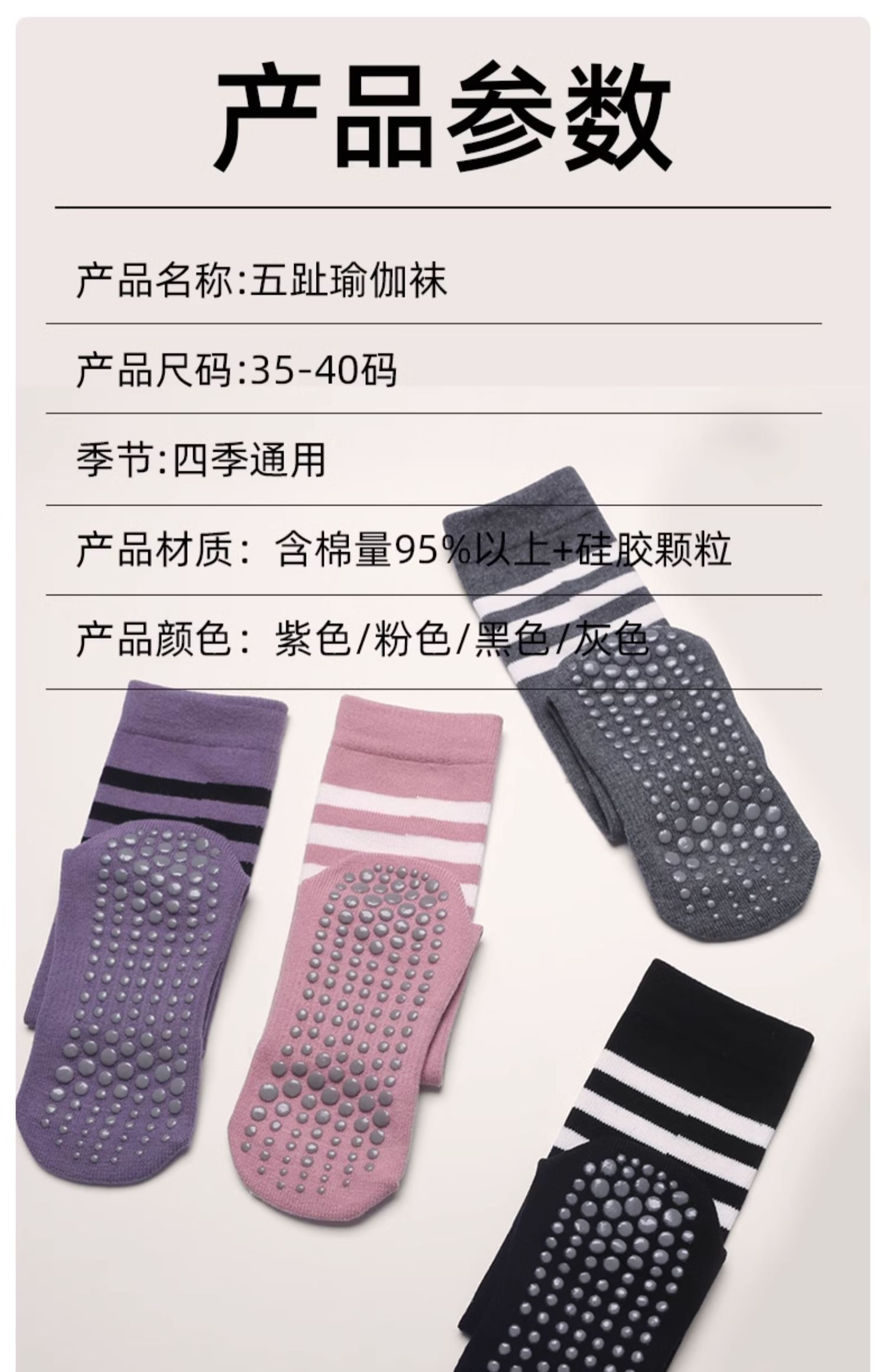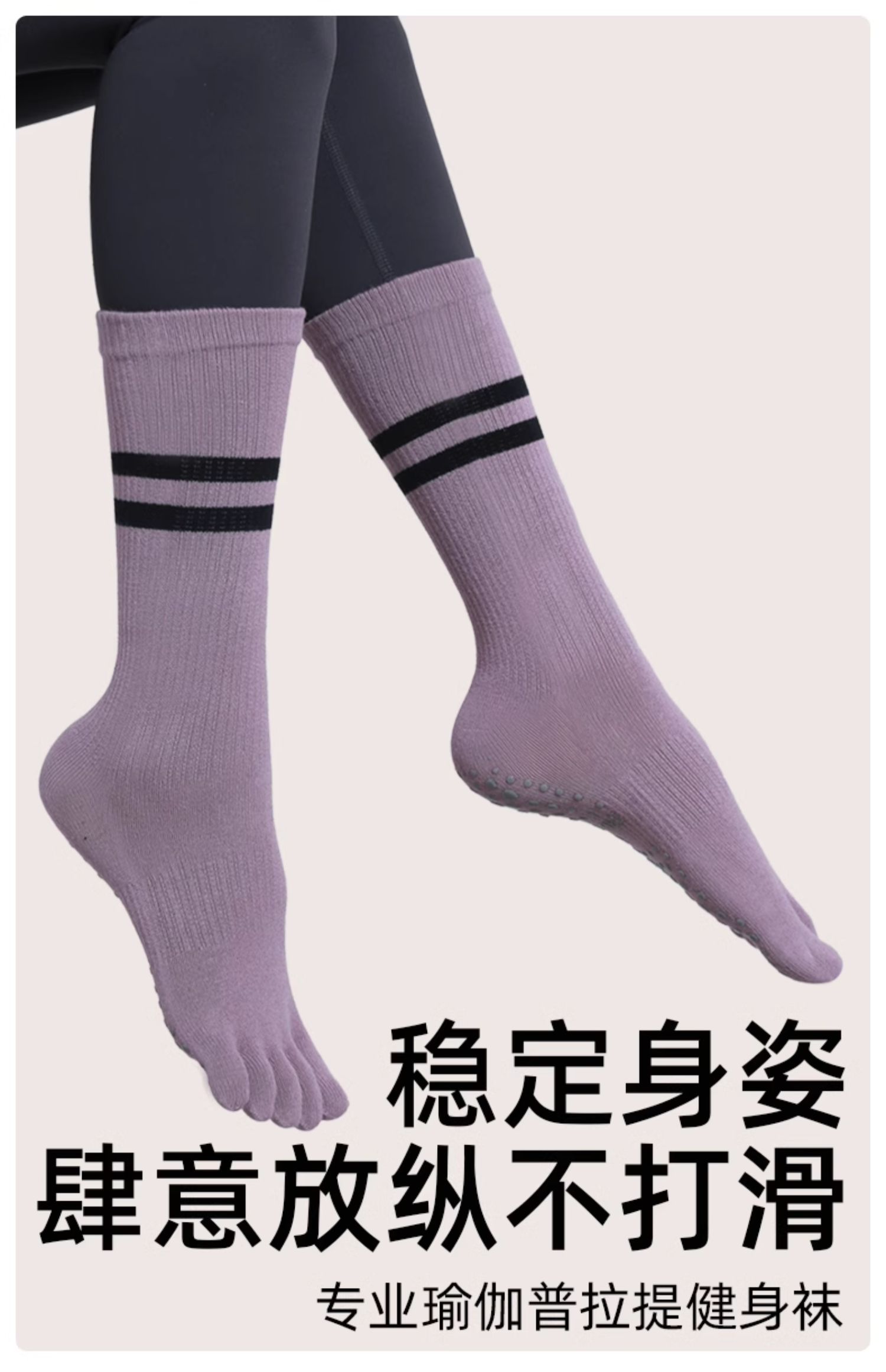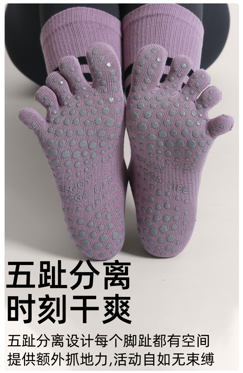 瑜珈襪子中筒普拉提五指專用鞋壓力長筒襪專業防滑女分趾跳繩純棉